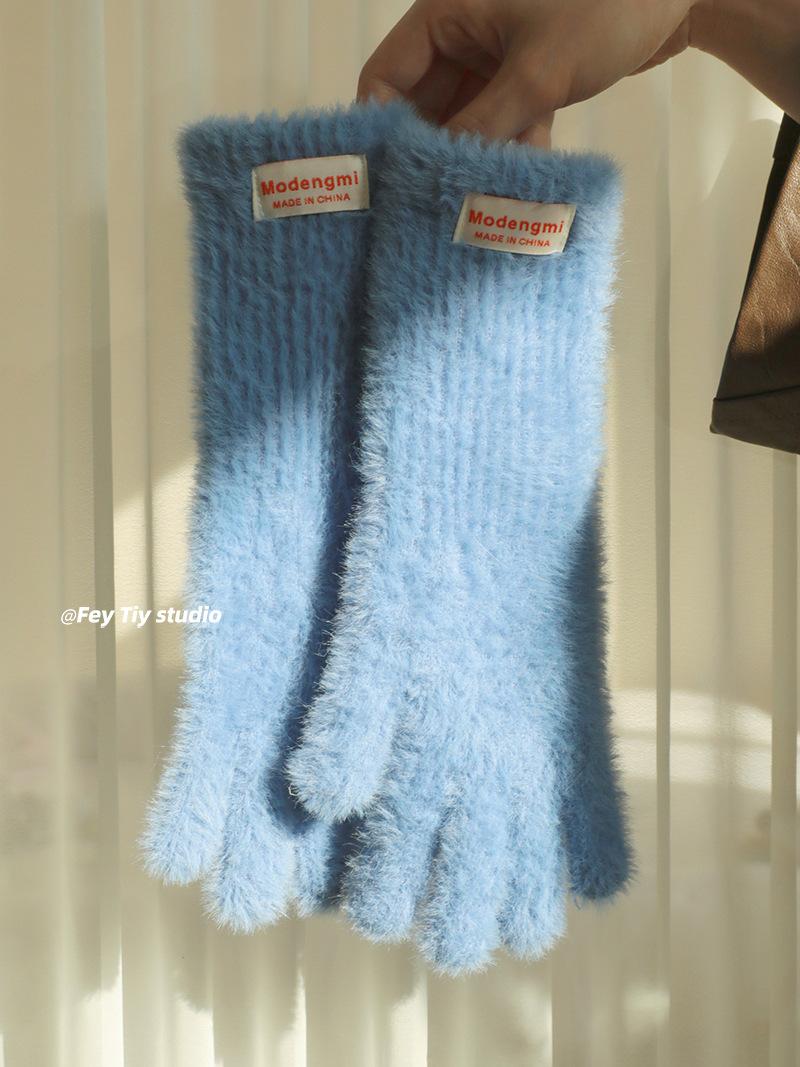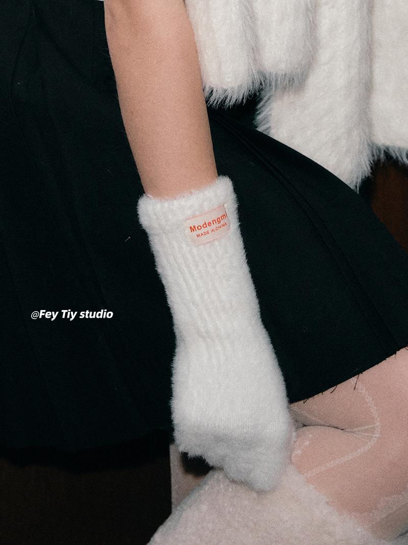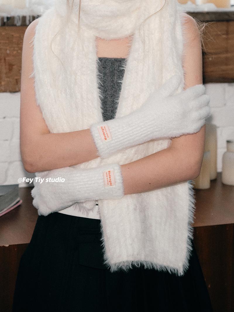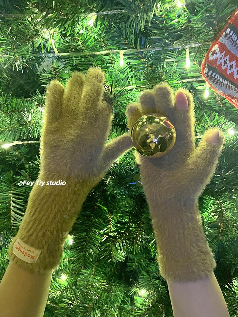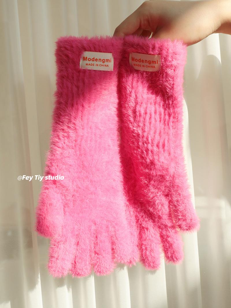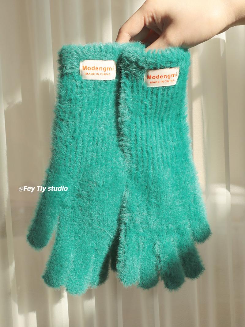 Guantes largos suaves y esponjosos para mujer, cálidos, de otoño e invierno, de color sólido, con pantalla táctil, de cinco dedos, estilo coreano, combinables con todo.