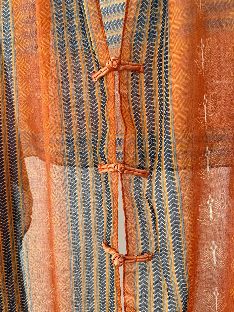 Puedes usarlo directamente abotonándolo, o puedes usarlo como una bufanda larga sin abotonarlo, lo cual es muy atmosférico.