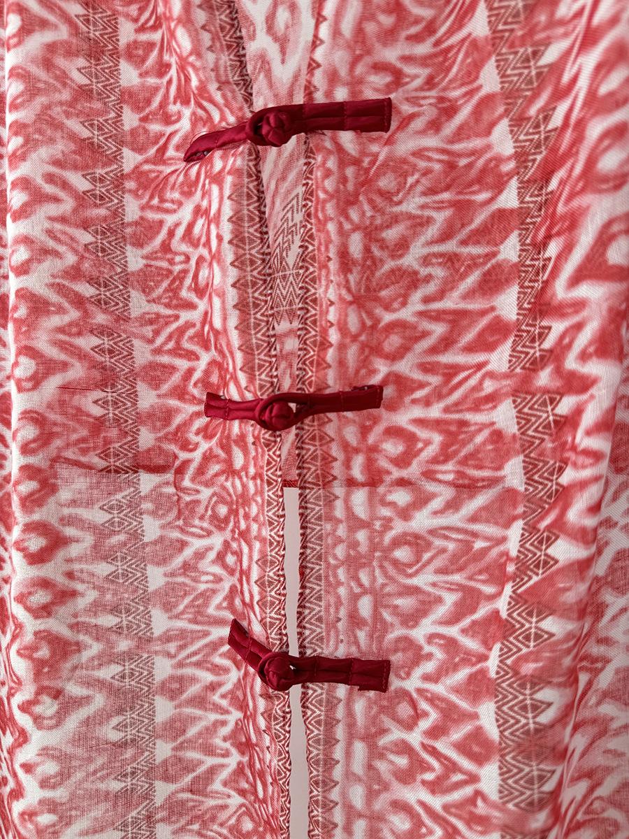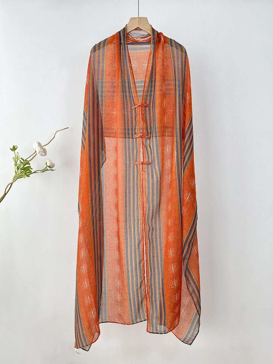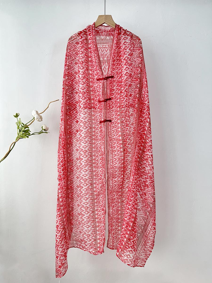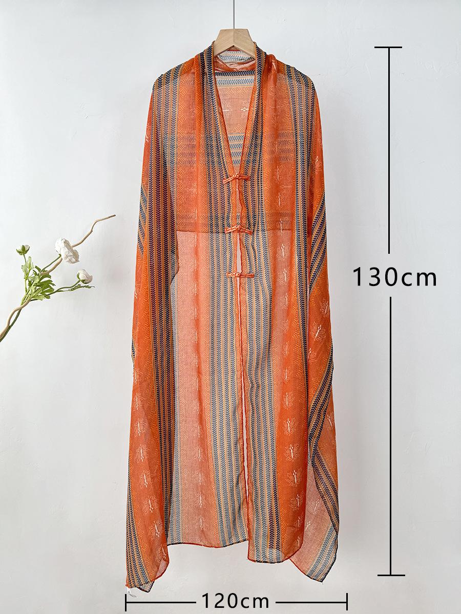 La tela es suave y amigable con la piel, y la transpirabilidad es excelente. Se ve bien cuando lo usas con cualquier cosa. Es bueno para la protección solar durante los viajes de verano, y es muy atmosférico cuando lo usas al viajar.