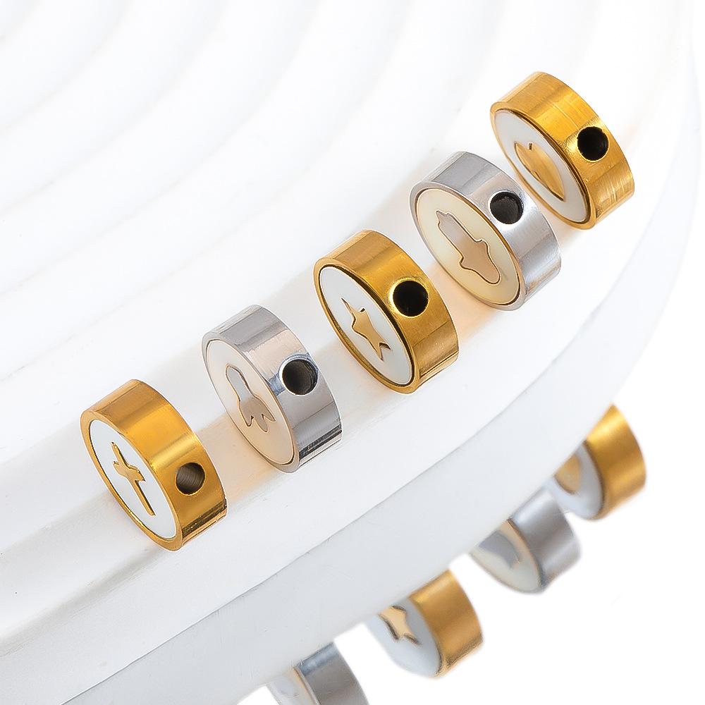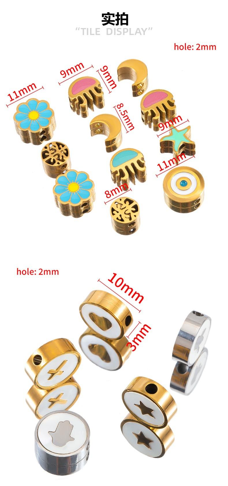 Pulsera de cuentas redondas de acero inoxidable con agujero pasante y gotas de aceite, cuentas sueltas, accesorios de joyería pequeños y frescos, cuentas al por mayor