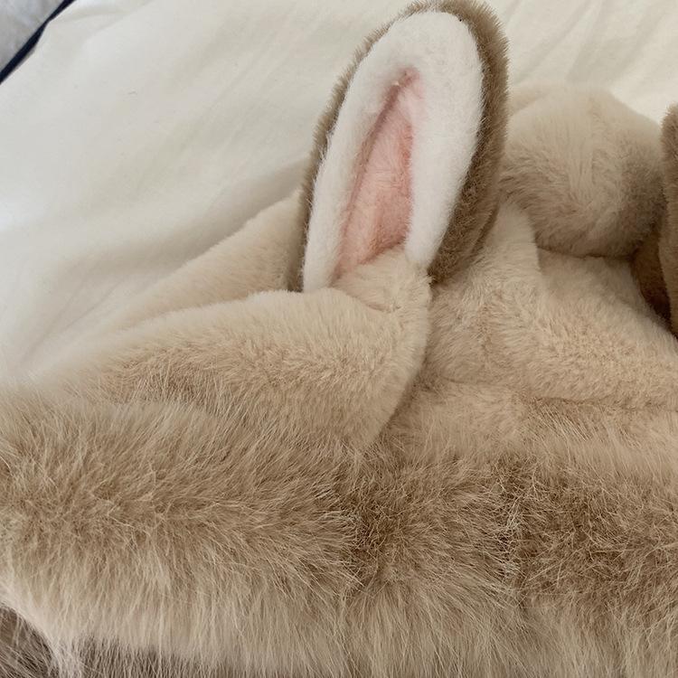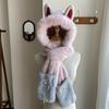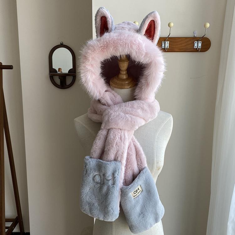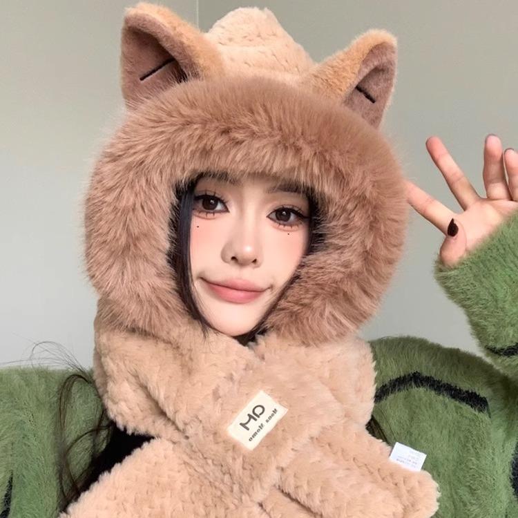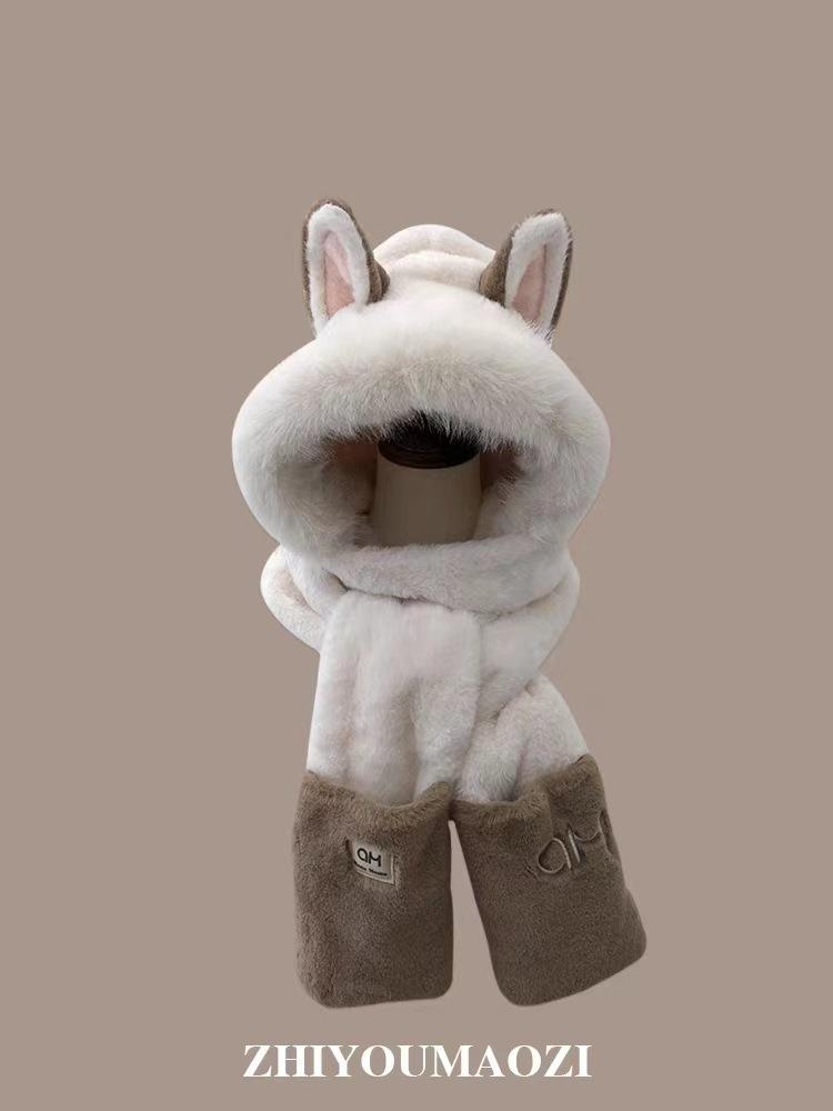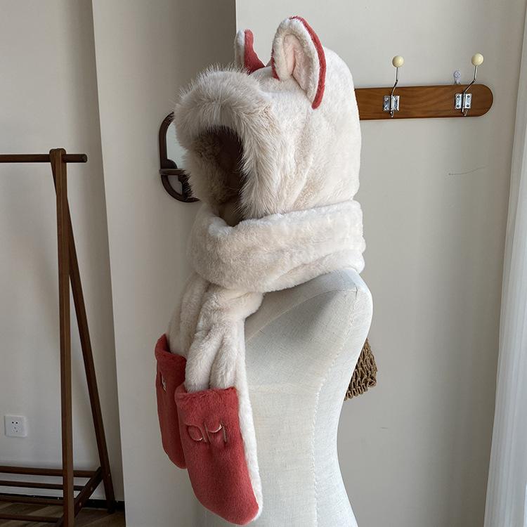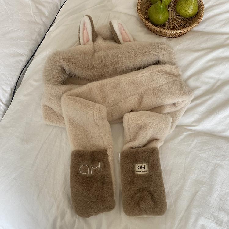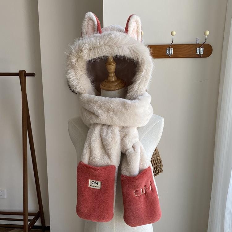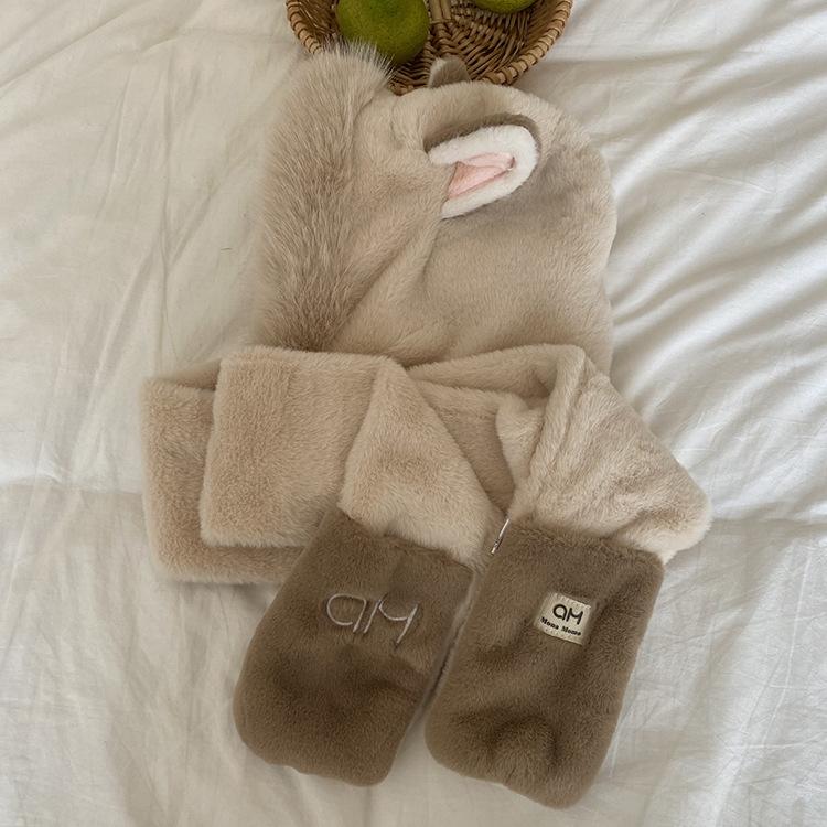 Beige hat short scarf without gloves, Coffee hat short scarf without gloves, Beige with rose red fox ear glove...