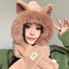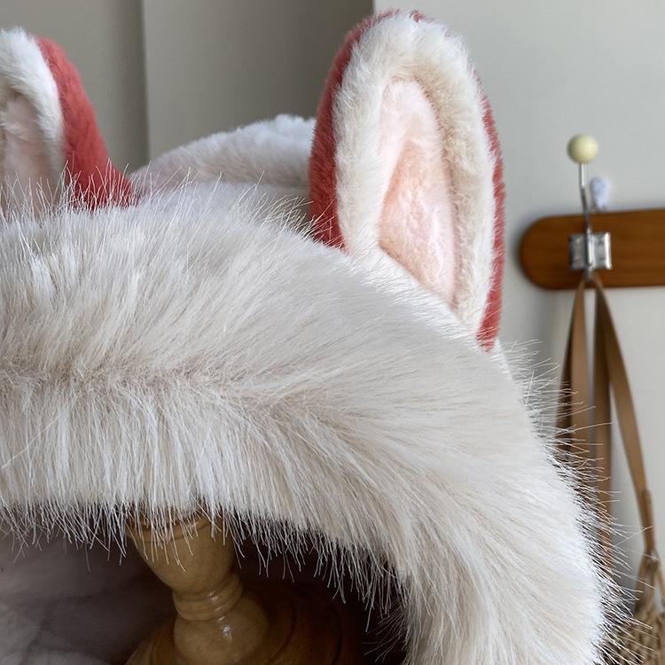 Set de Gorro de Esquí de Felpa y Bufanda para Mujer, Gorro Lei Feng de Tres Piezas con Orejeras con Elemento de Zorro para Protección de Oídos para Ciclismo a Prueba de Frío