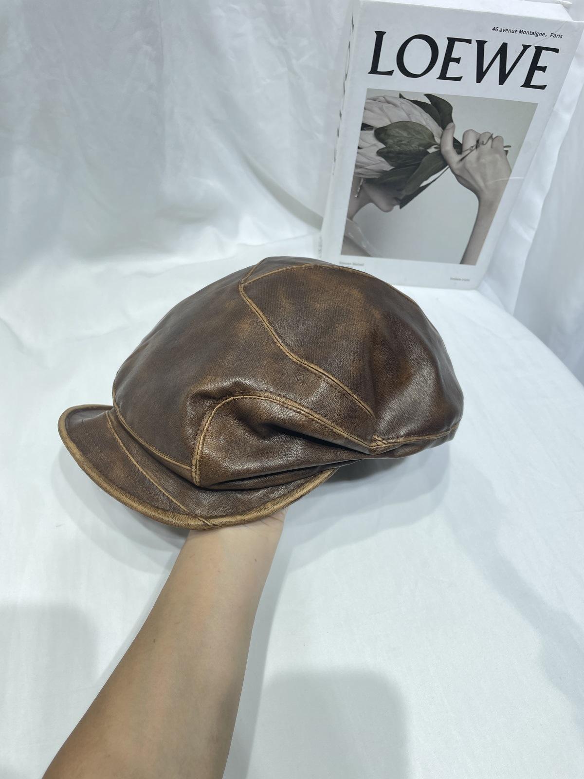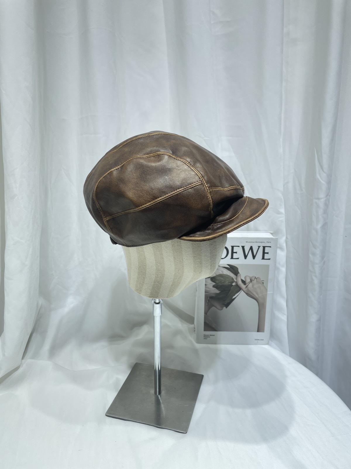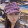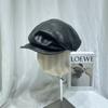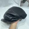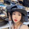 Boina de cuero sintético plisado irregular con diseño de nicho para niños, gorra de vendedor de periódicos vintage coreana, gorra octogonal con lengüeta de pato, otoño e invierno