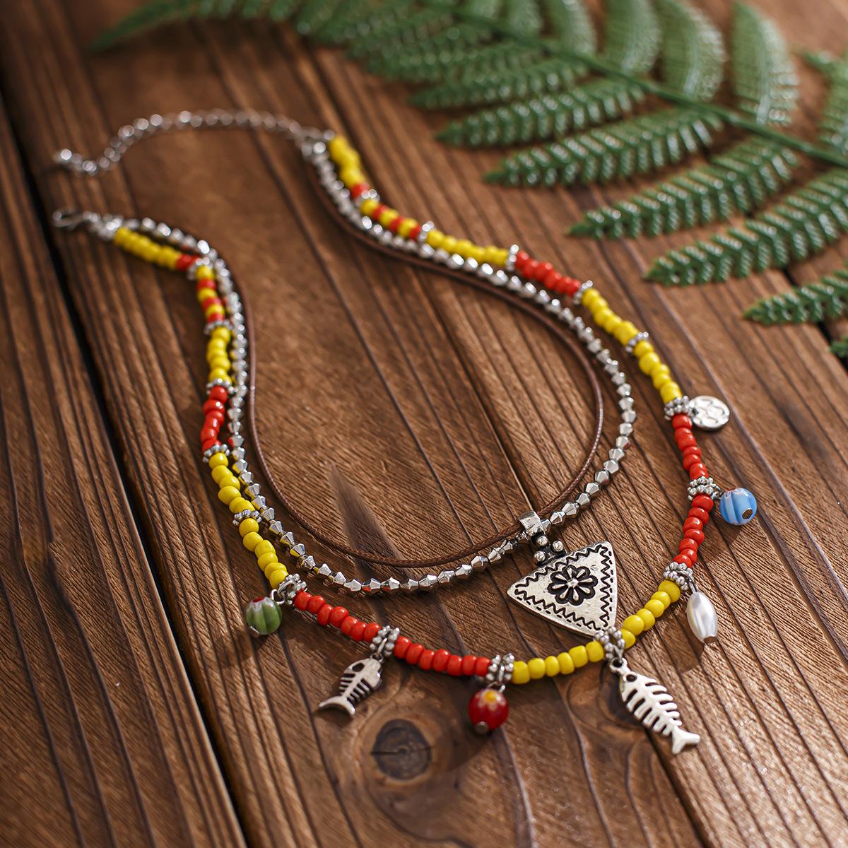 Material del producto: Cuentas de arroz + CCB + hilo de cera de cuero + aleación / Cuentas de arroz + CCB + hilo de cera de cuero + aleación