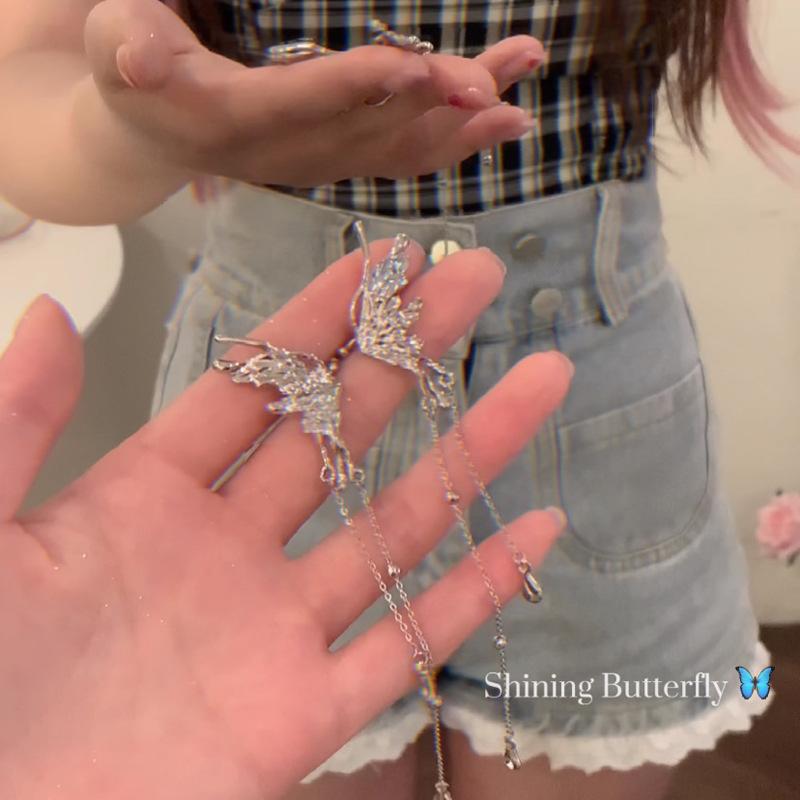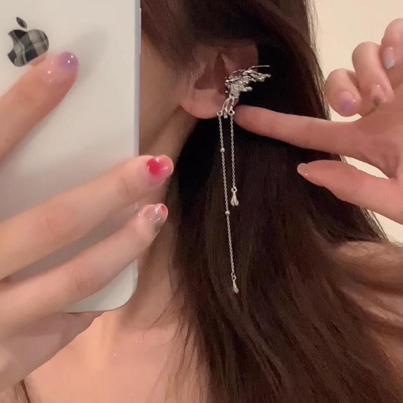 Pendientes de borla de mariposa para mujer, de verano, de alta calidad, con clip para la oreja, sin perforación, con clip para el hueso de la oreja.