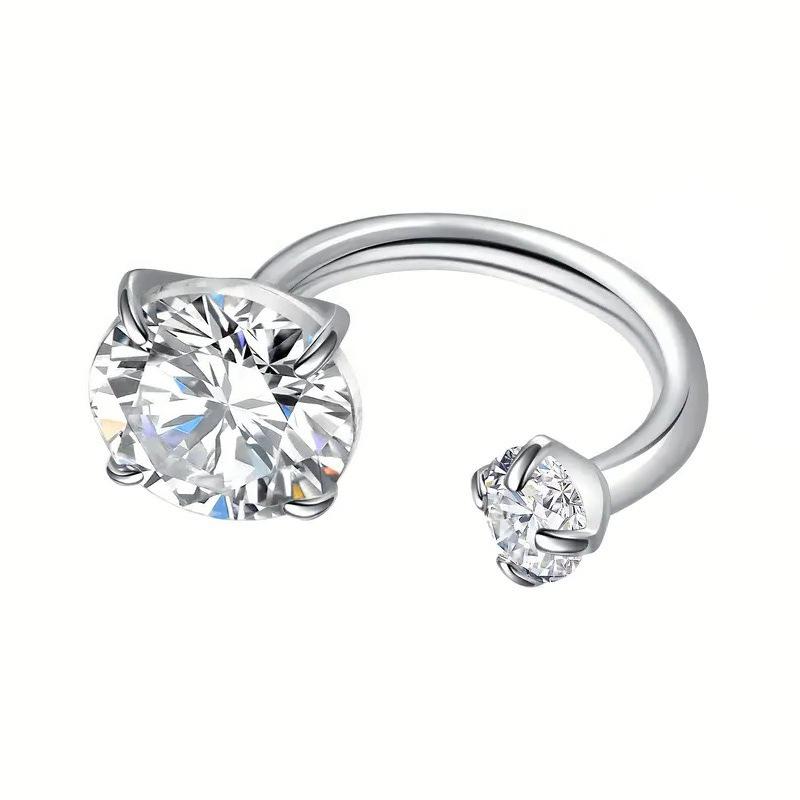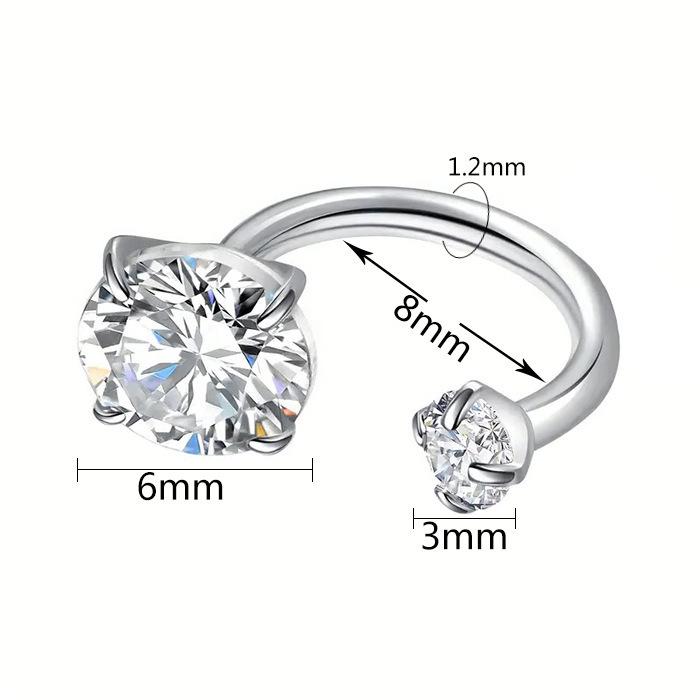 Pendientes altos de moda transfronteriza con forma de oreja, clavo de hueso de oreja, rosca interna, anillo de herradura de circonita redonda de doble cabeza, joyería de perforación