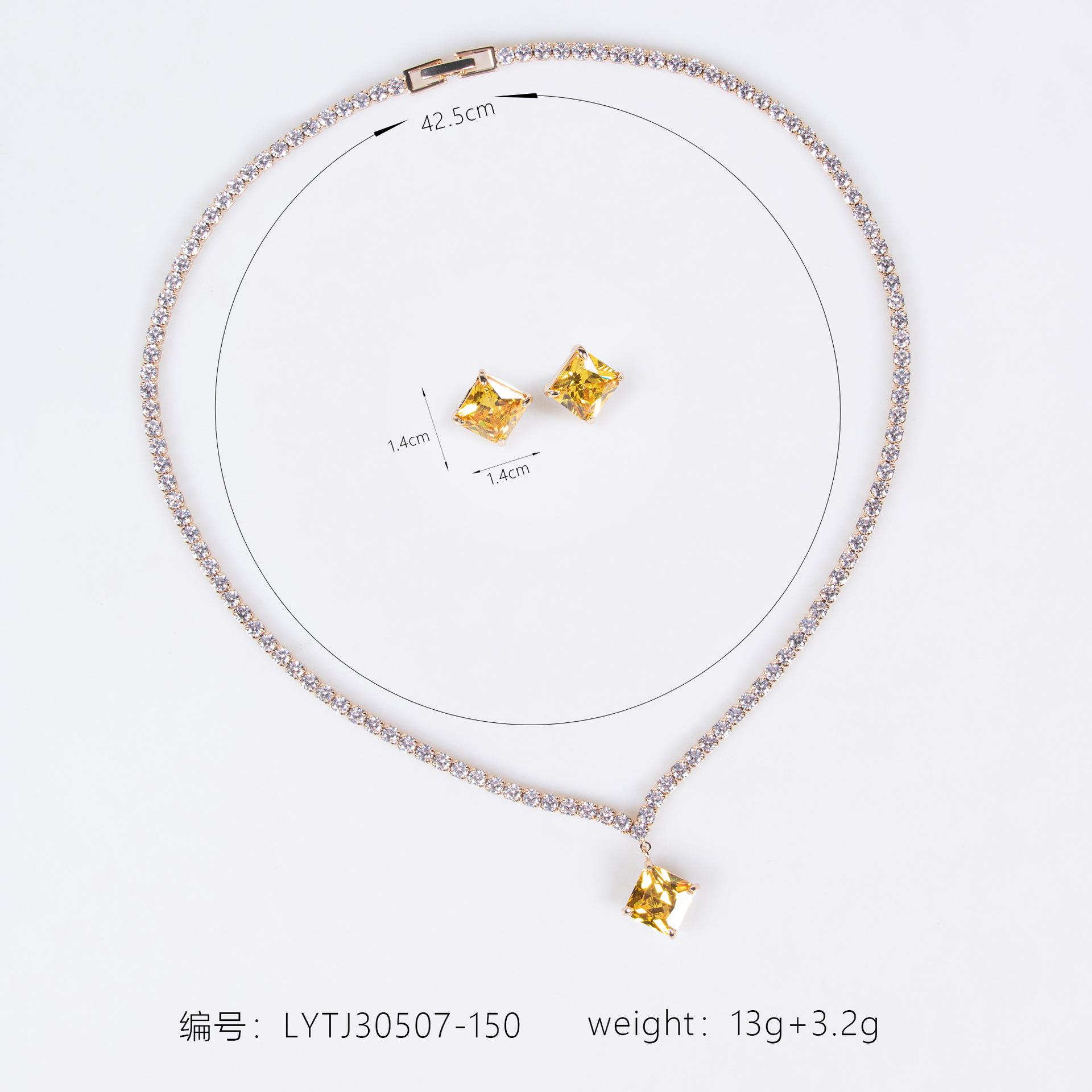 Estilo Ins Europeo y Americano Lujo Ligero Nicho Diamante Zircón Collar Aretes Juego de Joyería Artesanía Micro Incrustada Cobre Chapado Oro Verdadero de 18K