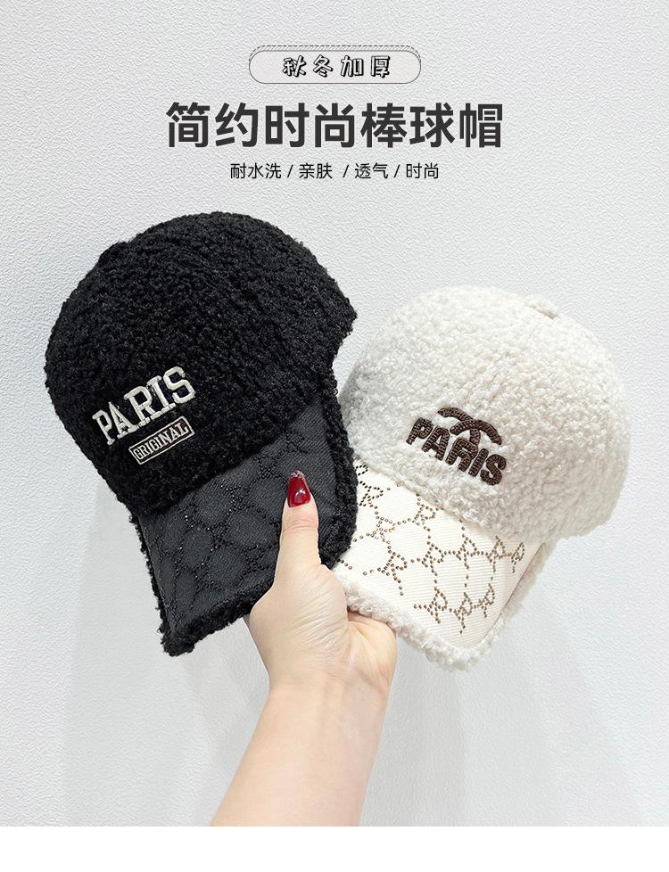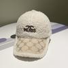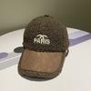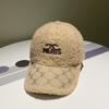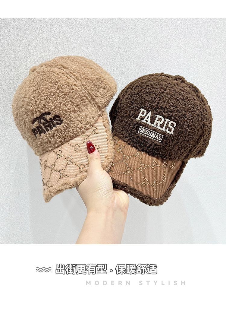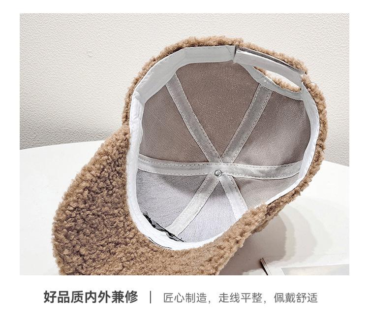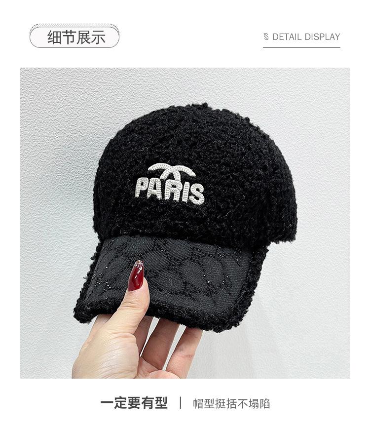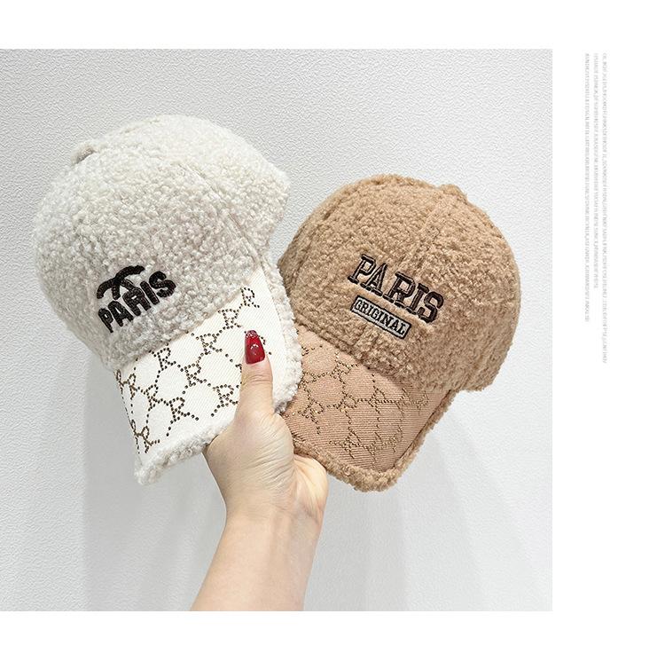 Gorra de Béisbol con Letras Bordadas de Moda Coreana para Mujer Invierno Cálida Combinable Muestra el Rostro Pequeños Diamantes de Imitación Gorra de Lana de Cordero
