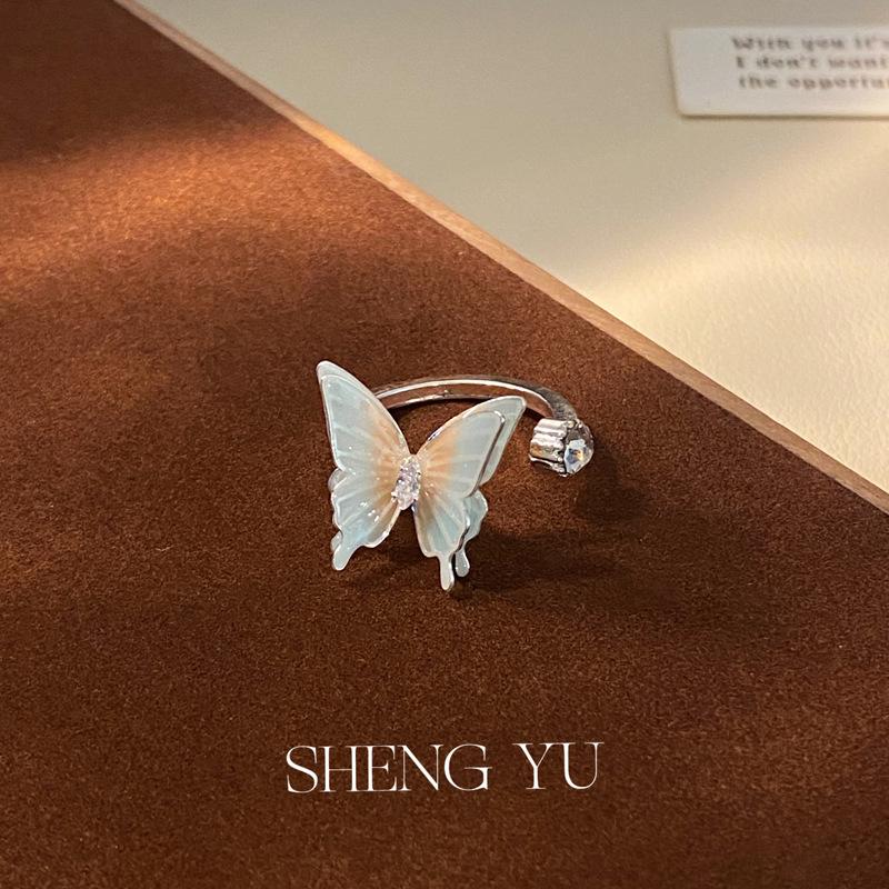 Anillo Abierto de Mariposa Tridimensional Francés Super Hada Dulce Nicho Verano Nuevo de Alto Nivel Personalizado para Mujer
