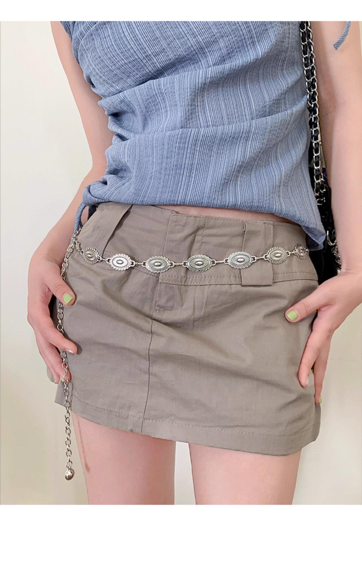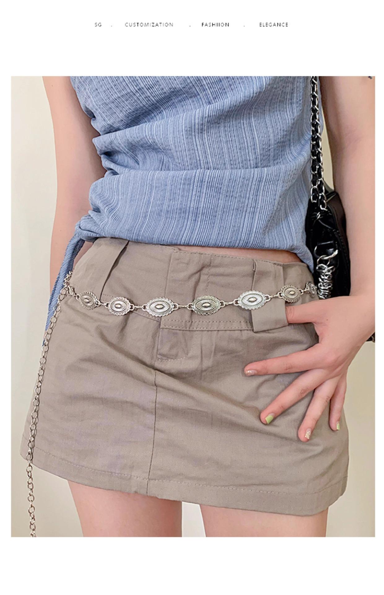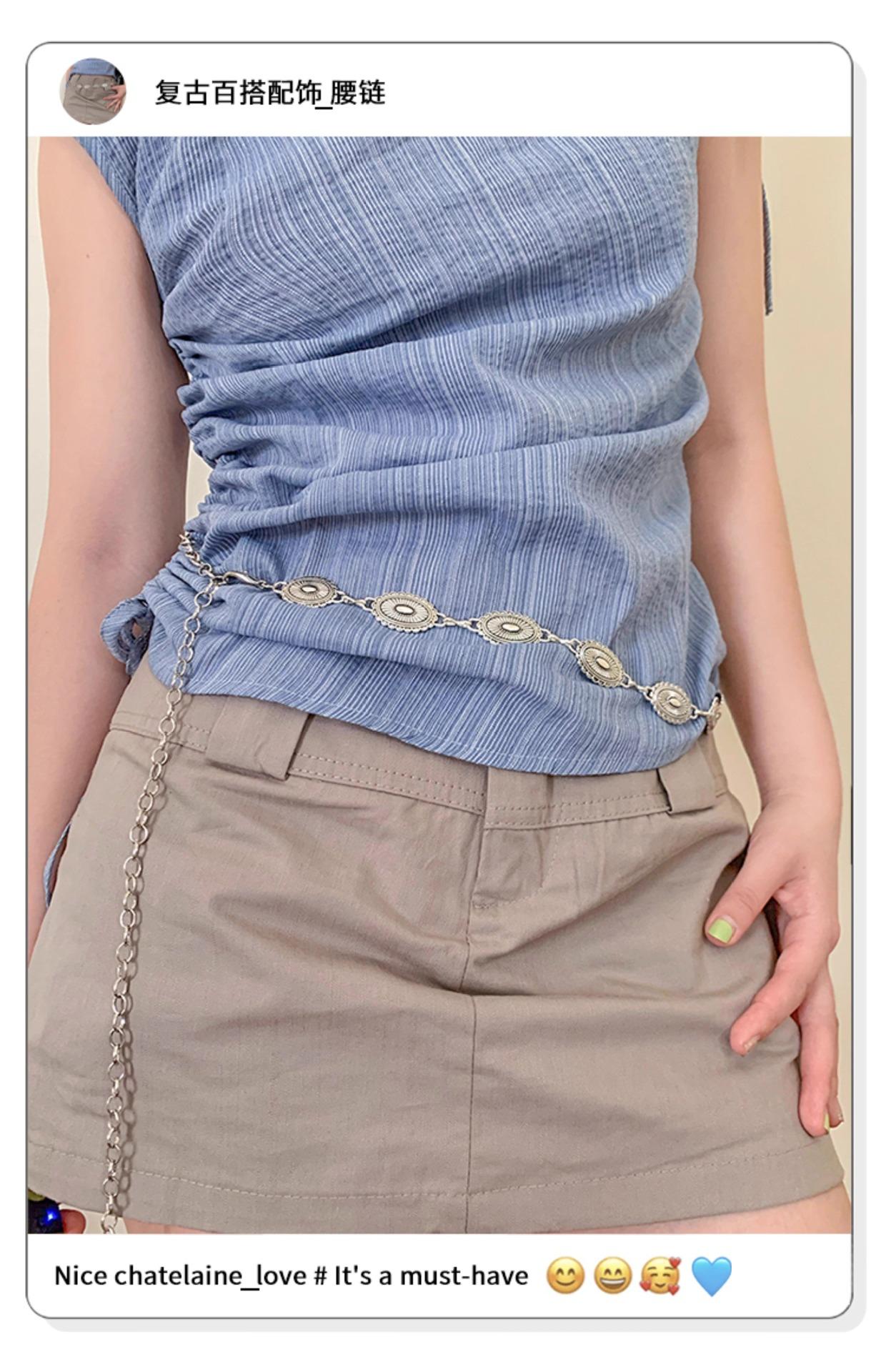 Cinturón de cintura de metal plateado con diseño de nicho para mujer, estilo étnico retro, a juego.