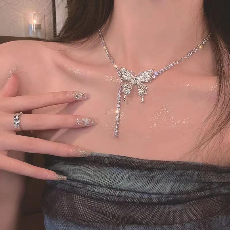 Collar de mariposa con cadena de garra de diamante de alta calidad, ligero y de lujo, combina con todo, para mujer, estilo coreano, personalizado, de nicho, con temperamento, genial y atractivo para chicas.