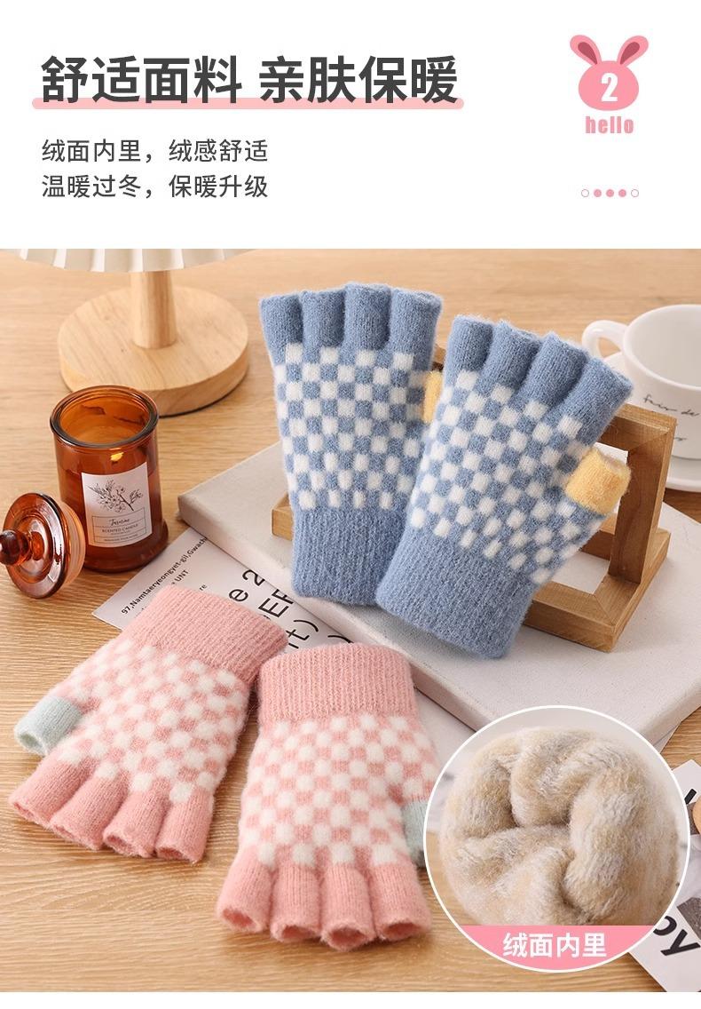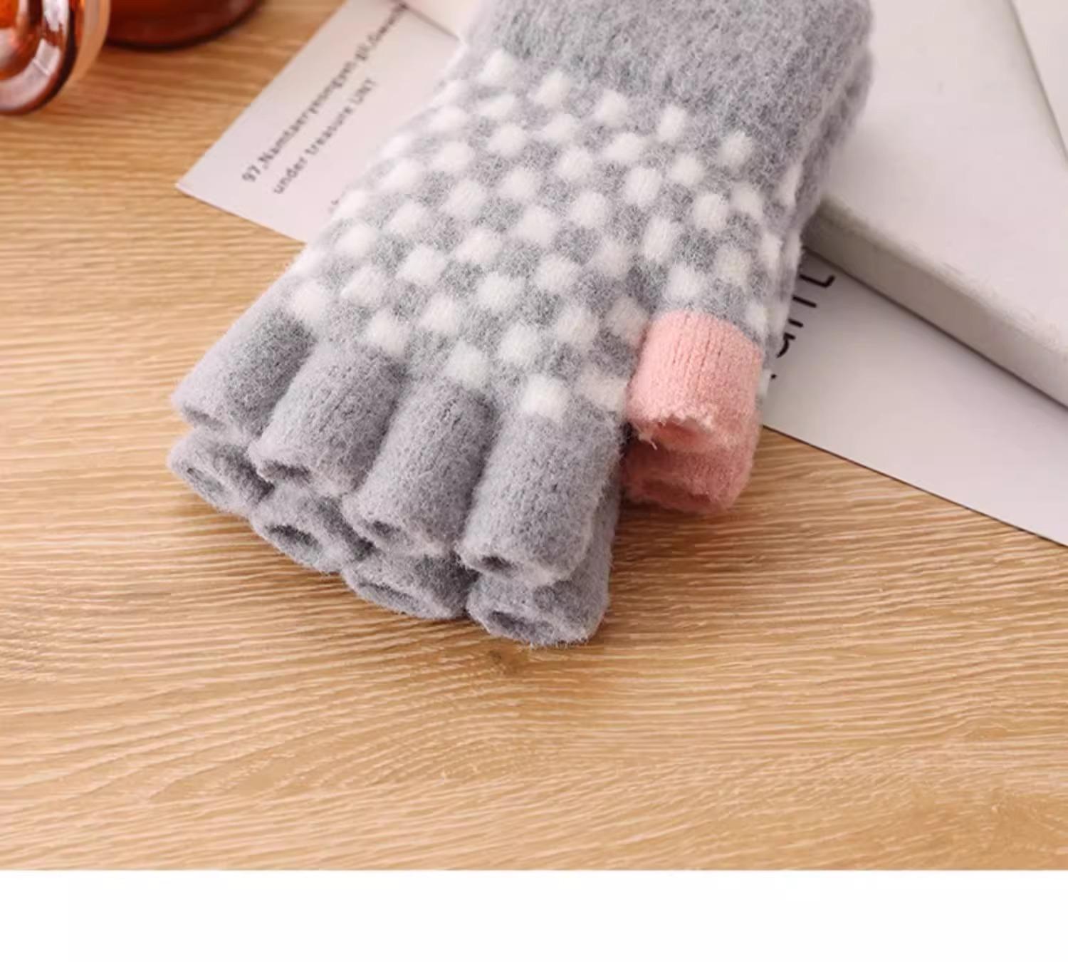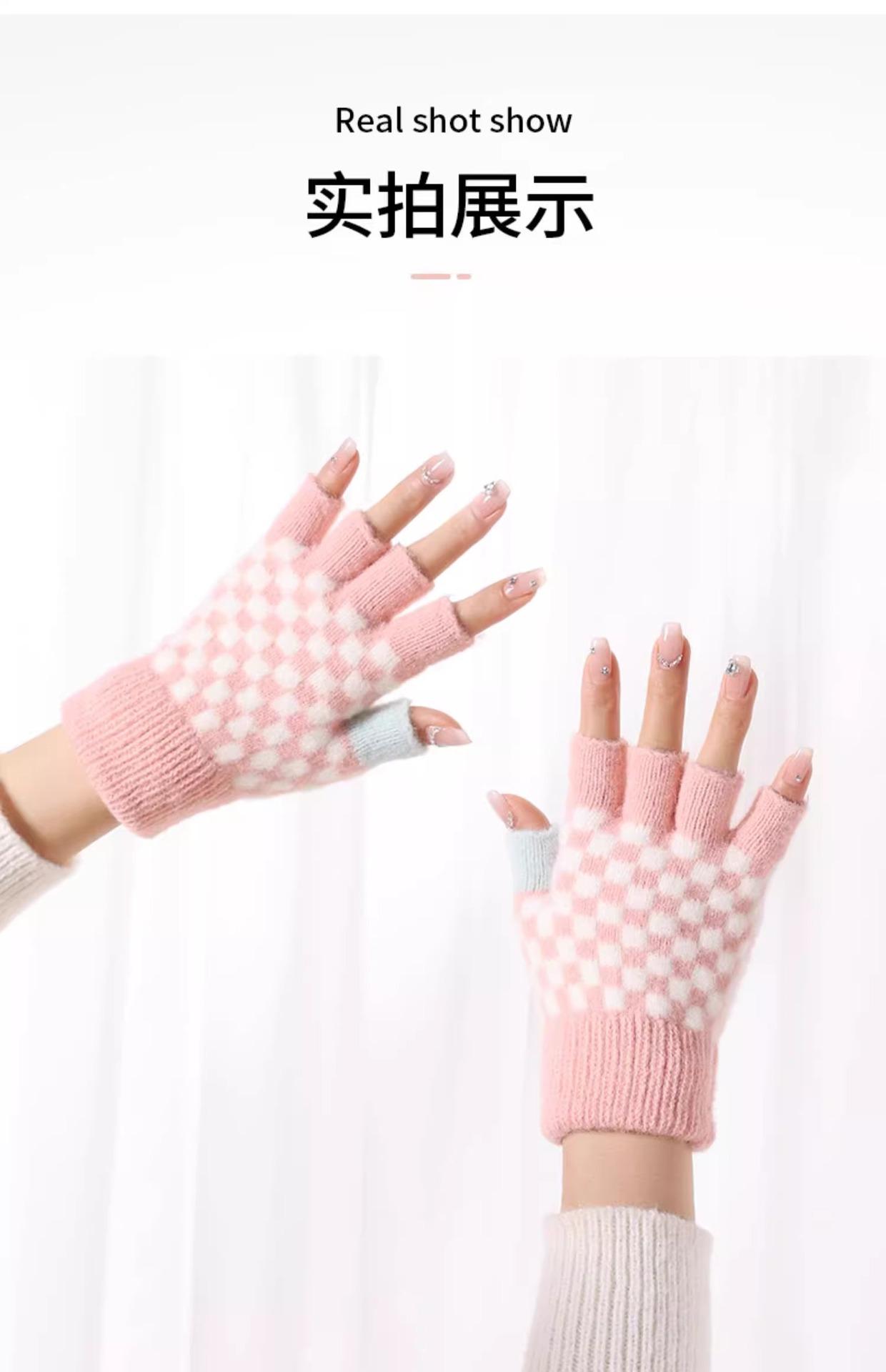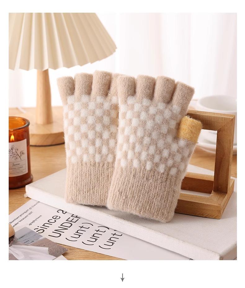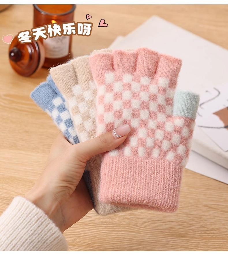 Guantes de punto de medio dedo para mujer, de invierno, gruesos, cálidos, bonitos, a cuadros, con dedos extra, para pantalla táctil, para ciclismo de invierno, resistentes al frío.