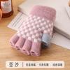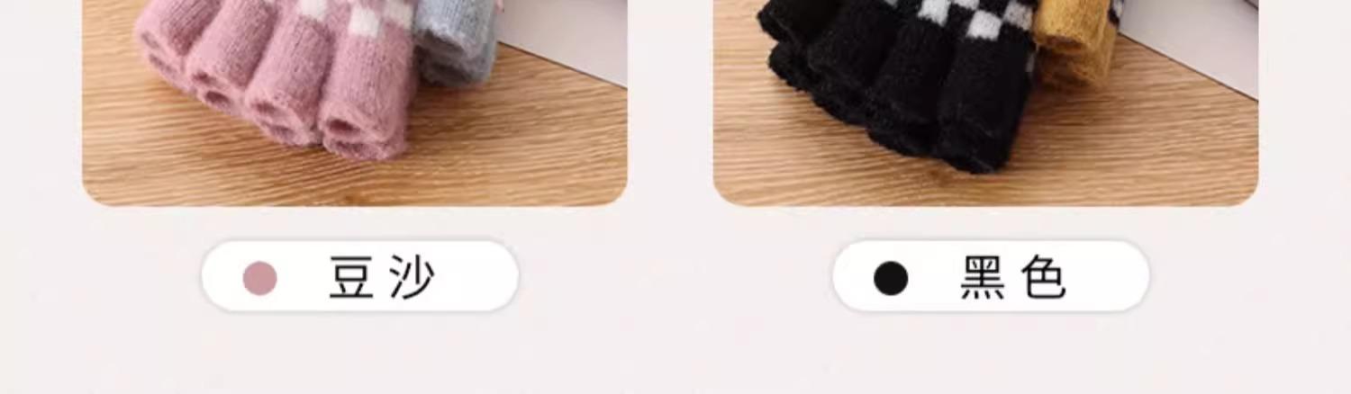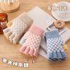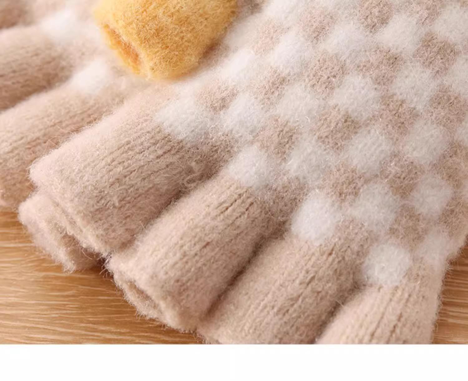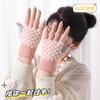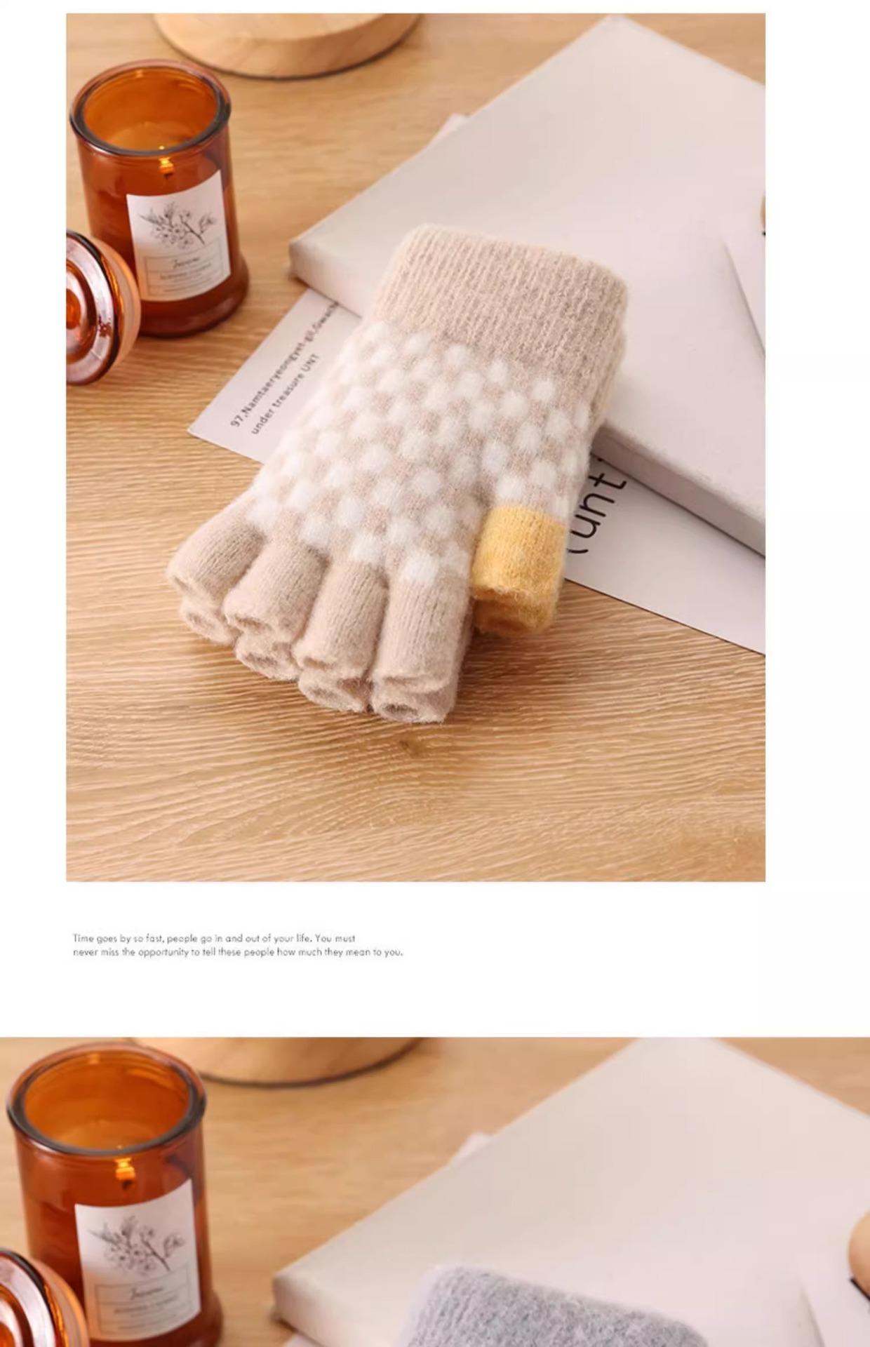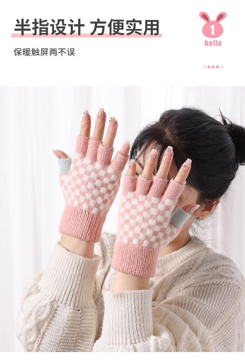 Guantes de punto de medio dedo para mujer, de invierno, gruesos, cálidos, bonitos, a cuadros, con dedos extra, para pantalla táctil, para ciclismo de invierno, resistentes al frío.