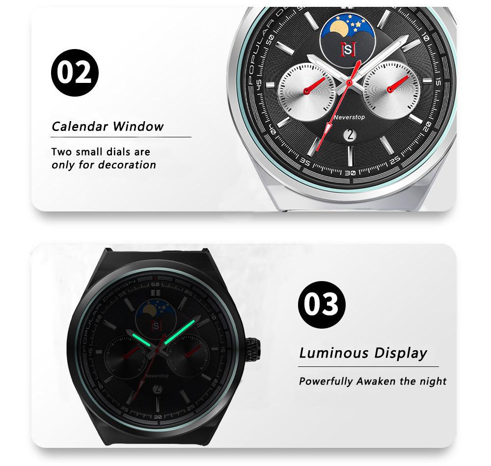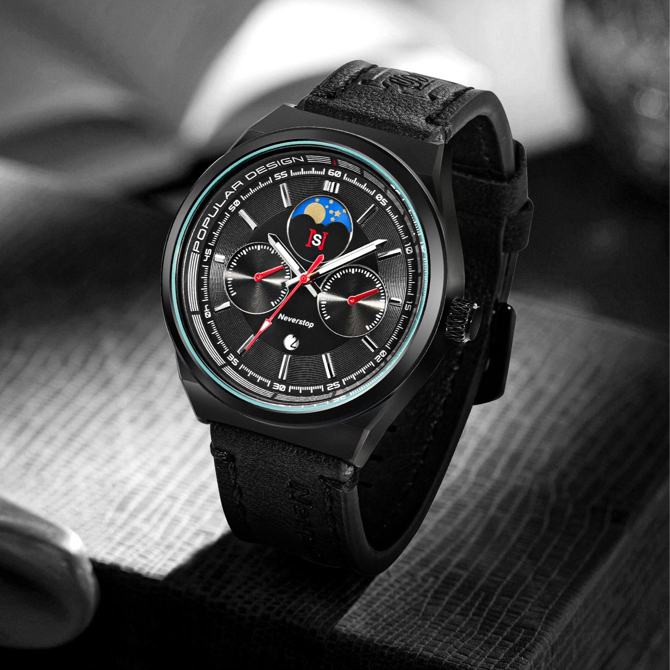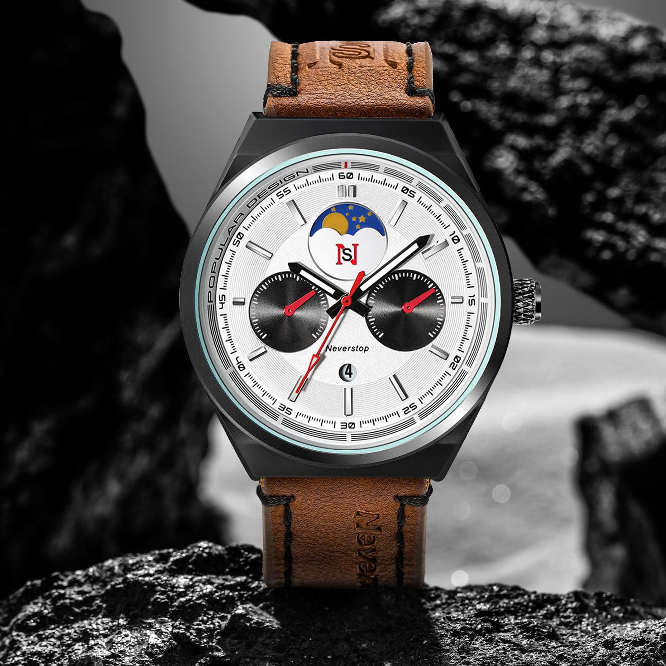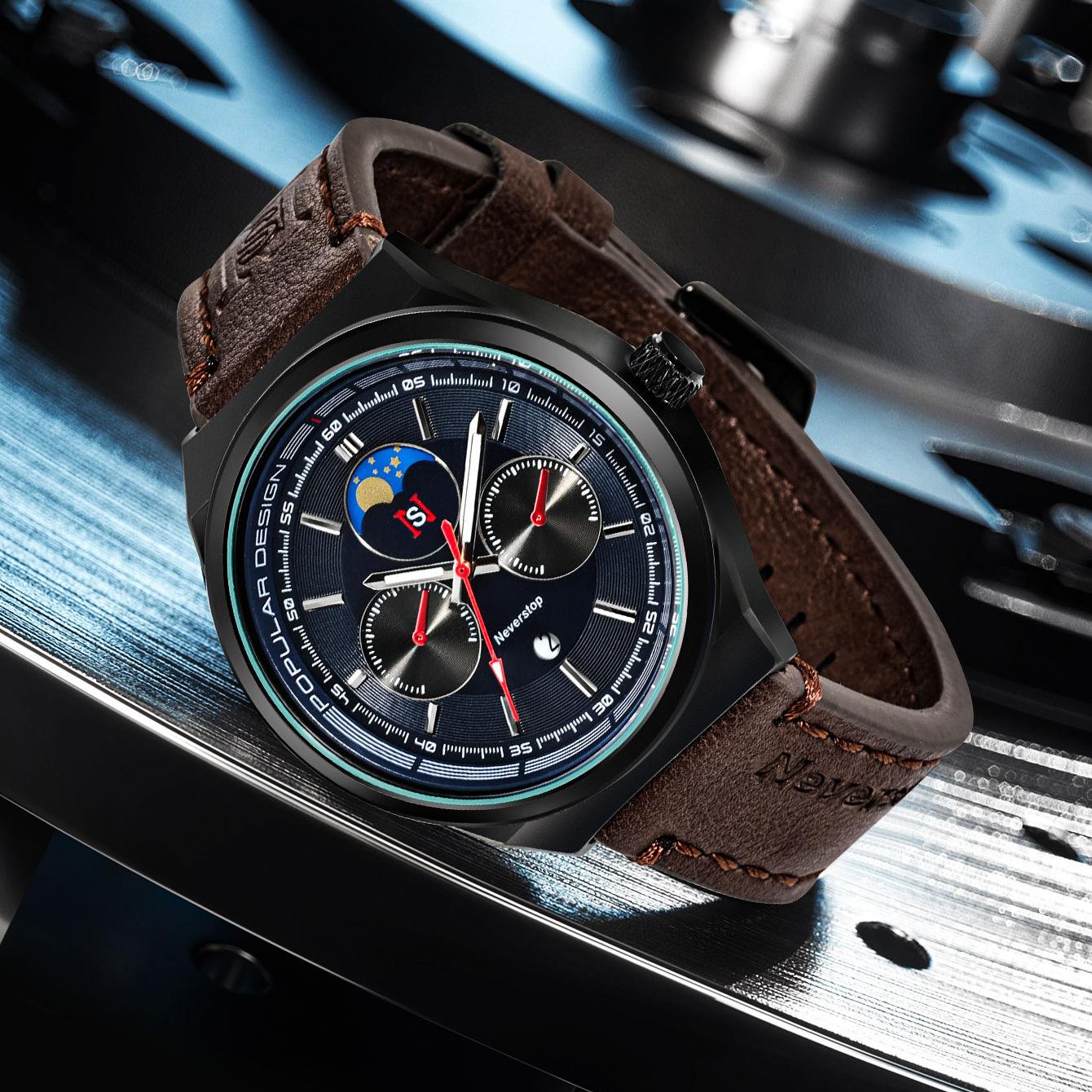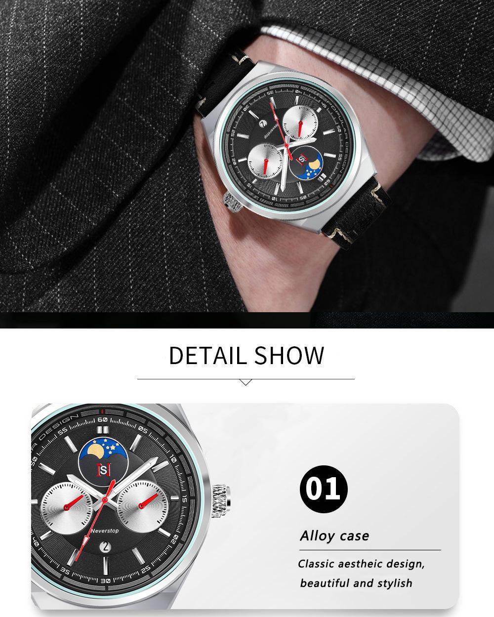 Reloj transfronterizo de imitación mecánico para hombre, pequeño reloj de cuarzo luminoso con calendario de dos pines y correa de PU N923