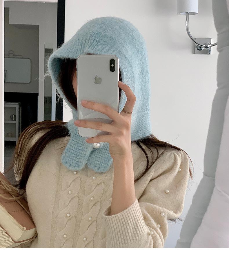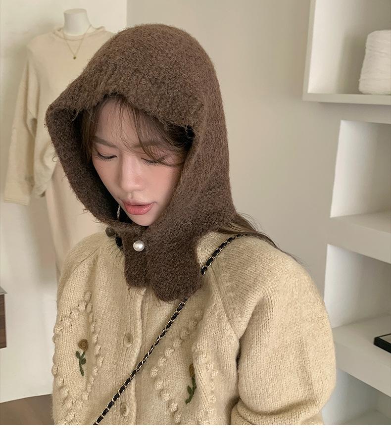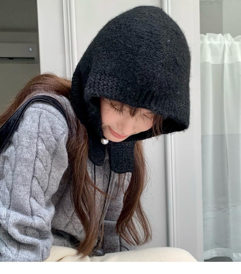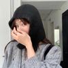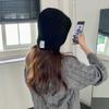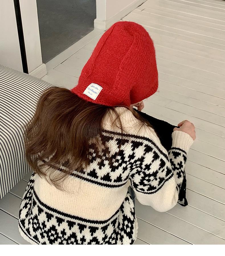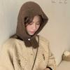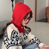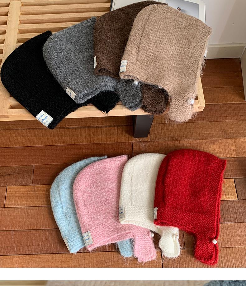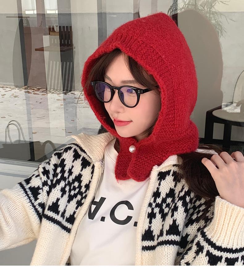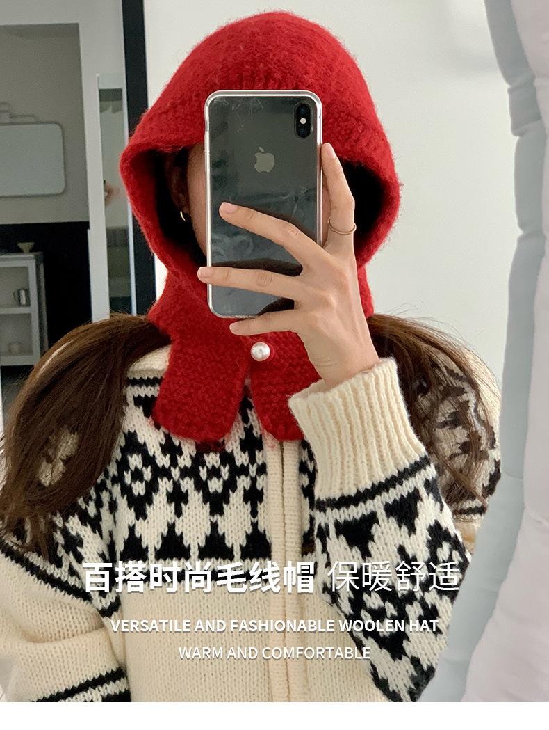 Gorro de estilo coreano para mujer, de otoño e invierno, de lana a juego, tejido, cálido, rojo, liso, con protección para el cuello y las orejas.