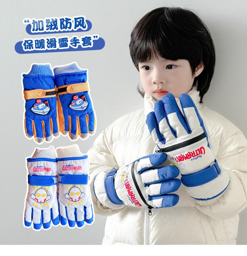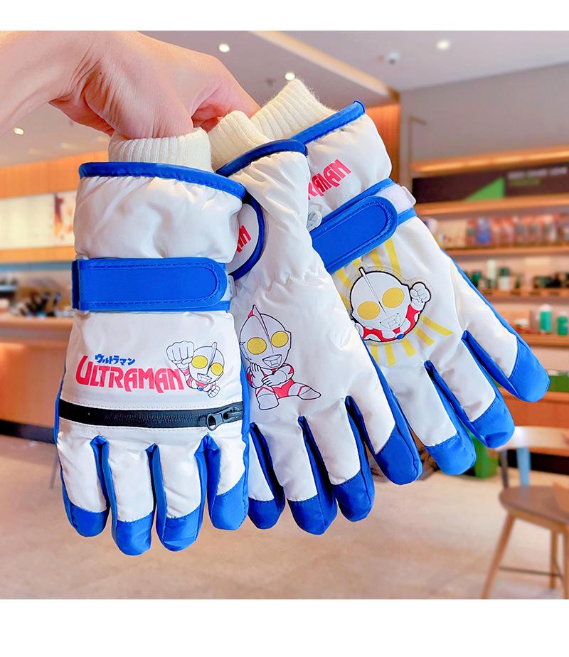 Guantes de esquí para niños Ultraman de invierno para niños y niñas con forro polar grueso para estudiantes, escuela de equitación, niños al aire libre, nieve