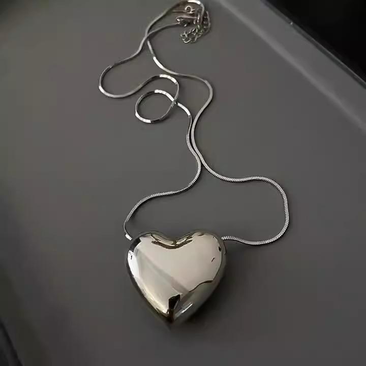 Collar de empalme de acero de titanio con cadena de corazón de plata estilo hip-hop para mujer, accesorios de diseño de nicho de verano, cadena de clavícula sexy, dulce y genial.
