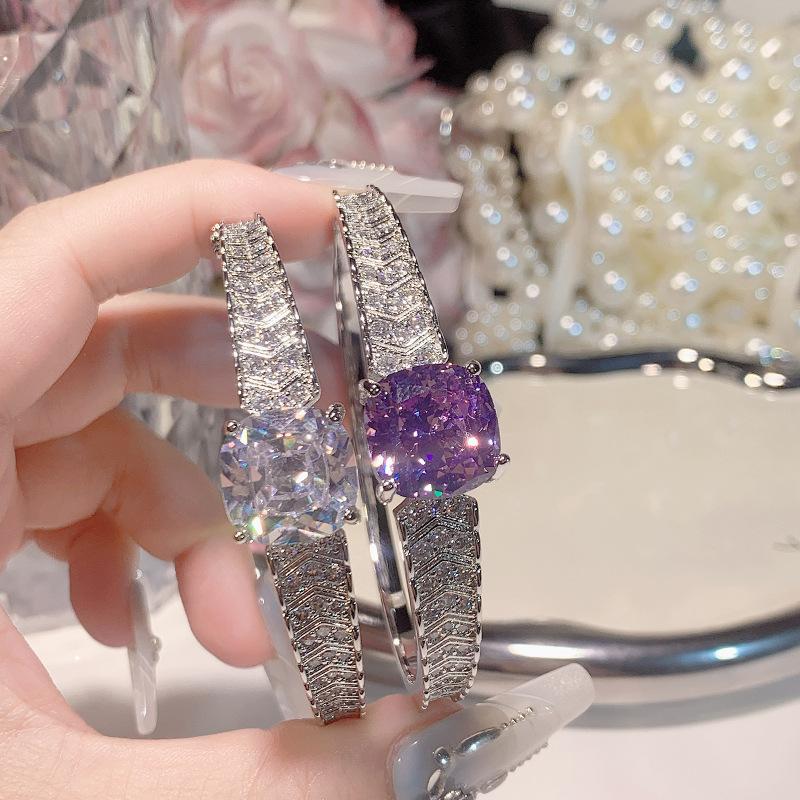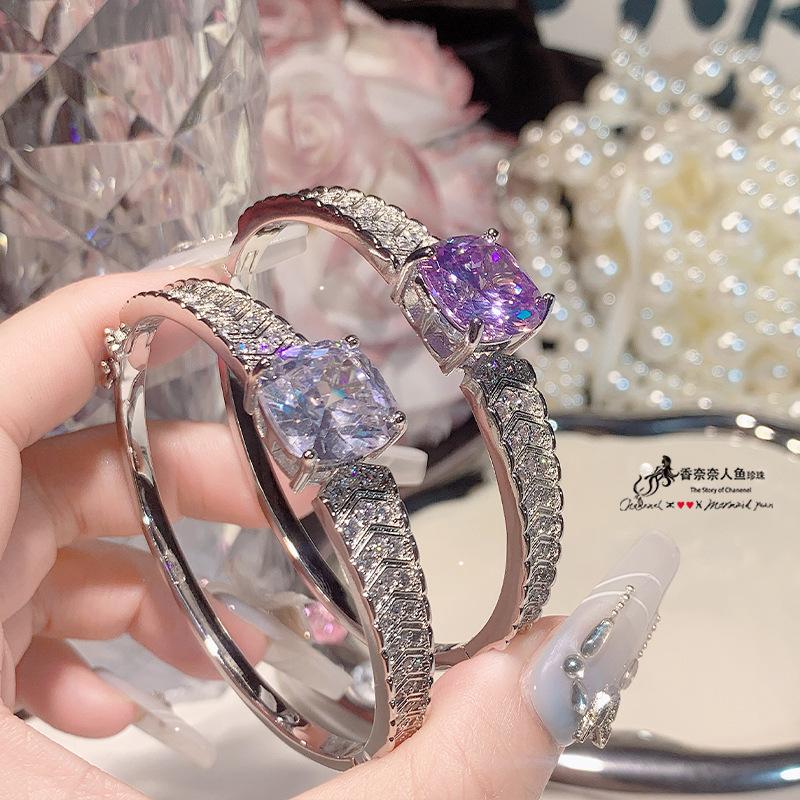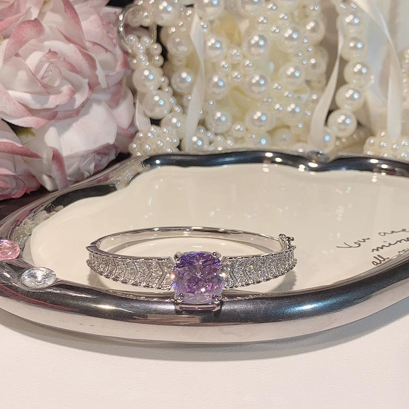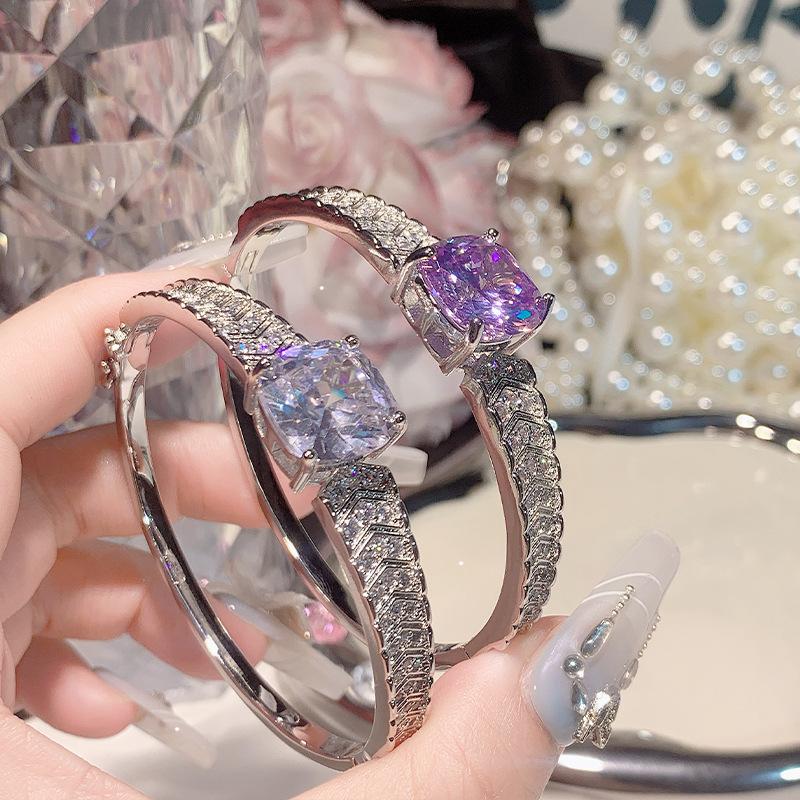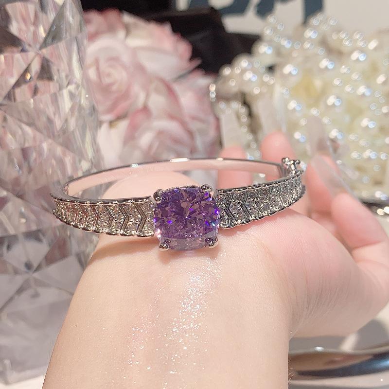 Pulsera Cene Fashion Light de lujo con corte de flor de hielo y diamantes de colores a juego, con incrustaciones de diamantes de alto carbono, pulsera de diamantes morados, elegante y sencilla.