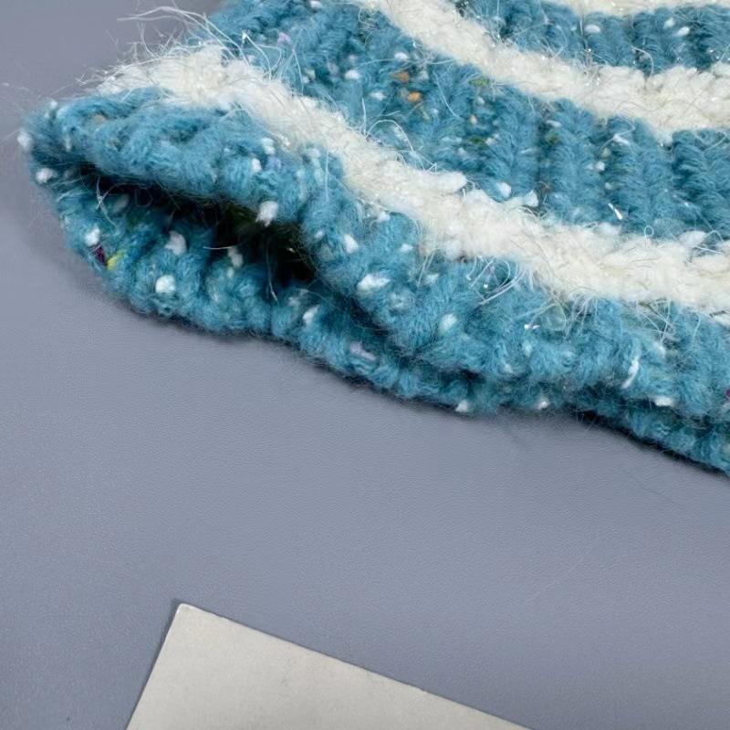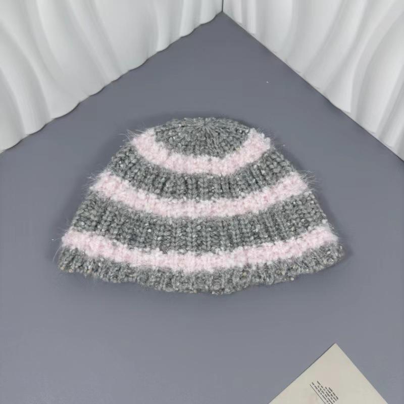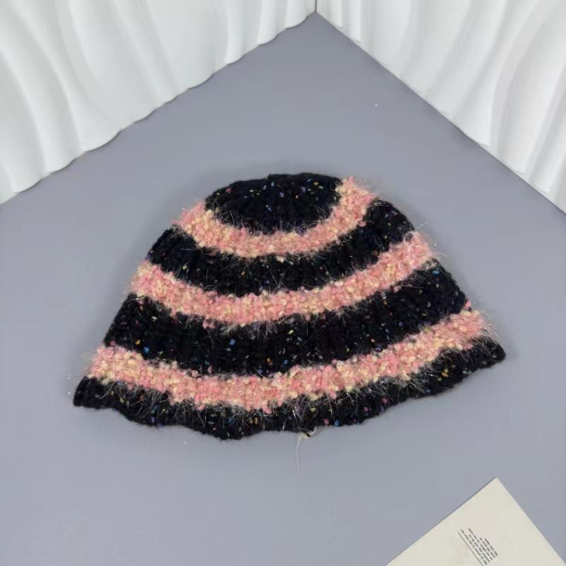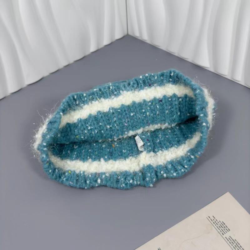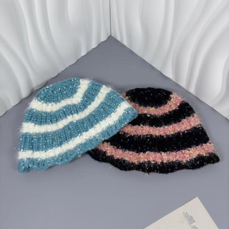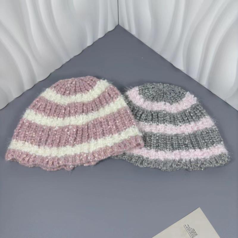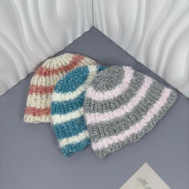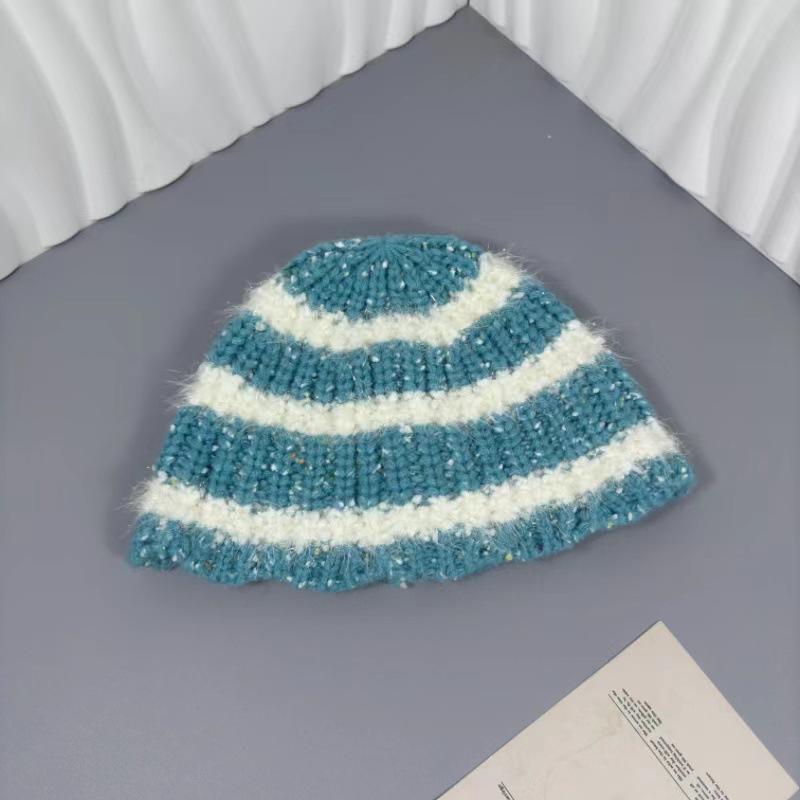 Nuevo gorro de pescador a rayas para mujer, de otoño e invierno, cálido, con protección para las orejas, tejido de felpa, estilo coreano, de lana combinable.