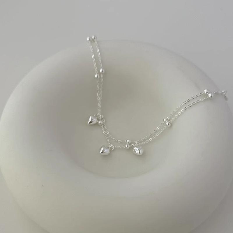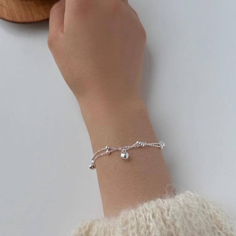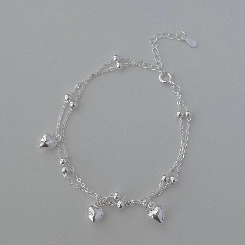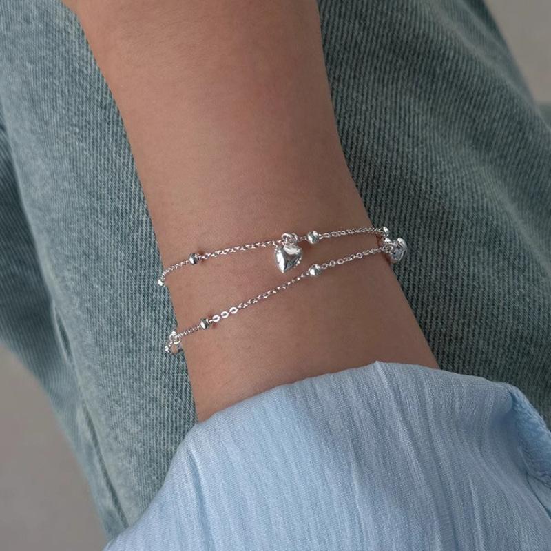 Pulsera Apilada de Doble Capa con Corazón Tridimensional Estilo Coreano para Mujer, Moderna y Exquisita, Nicho Blanqueador, Versátil y Accesorios de Mano de Alta Gama