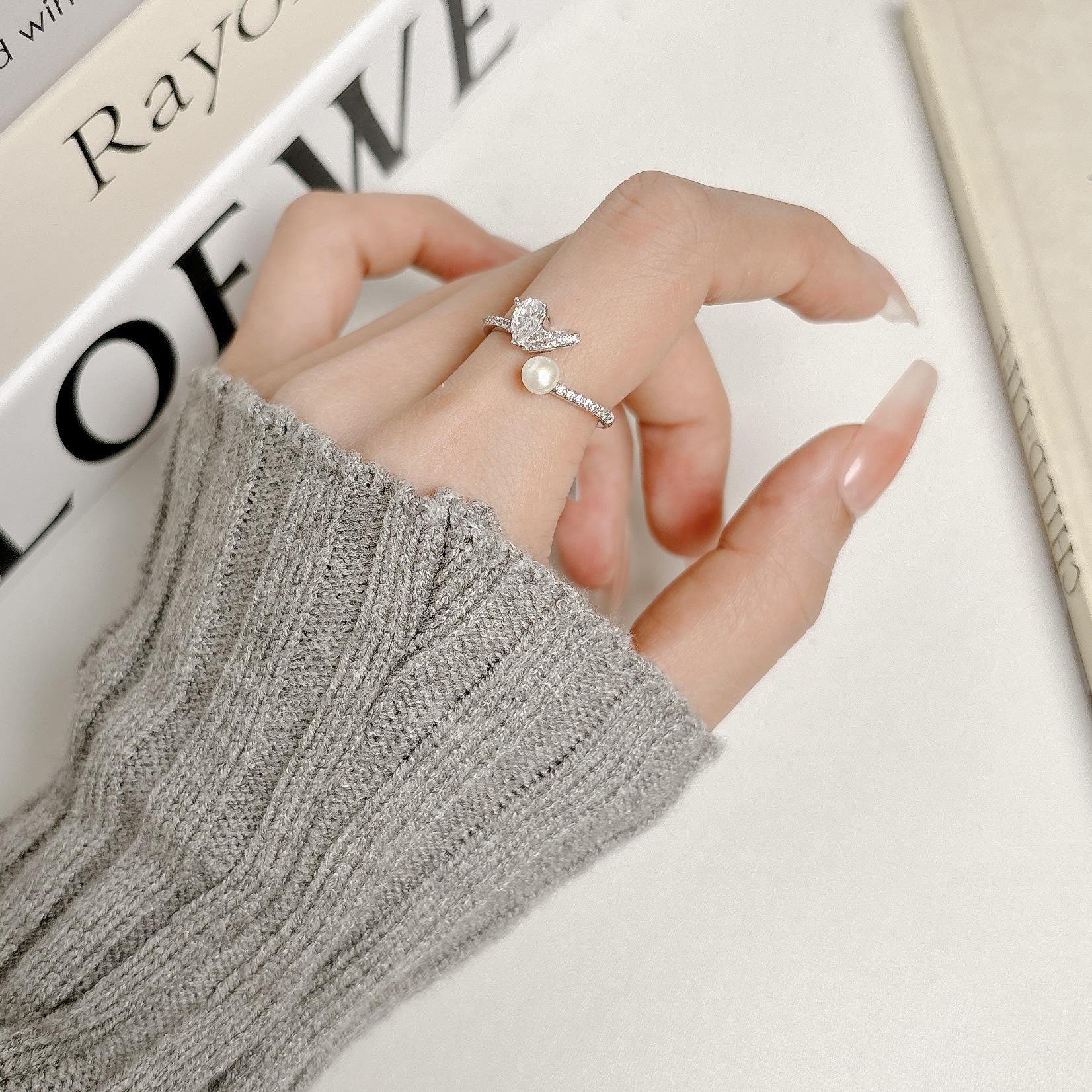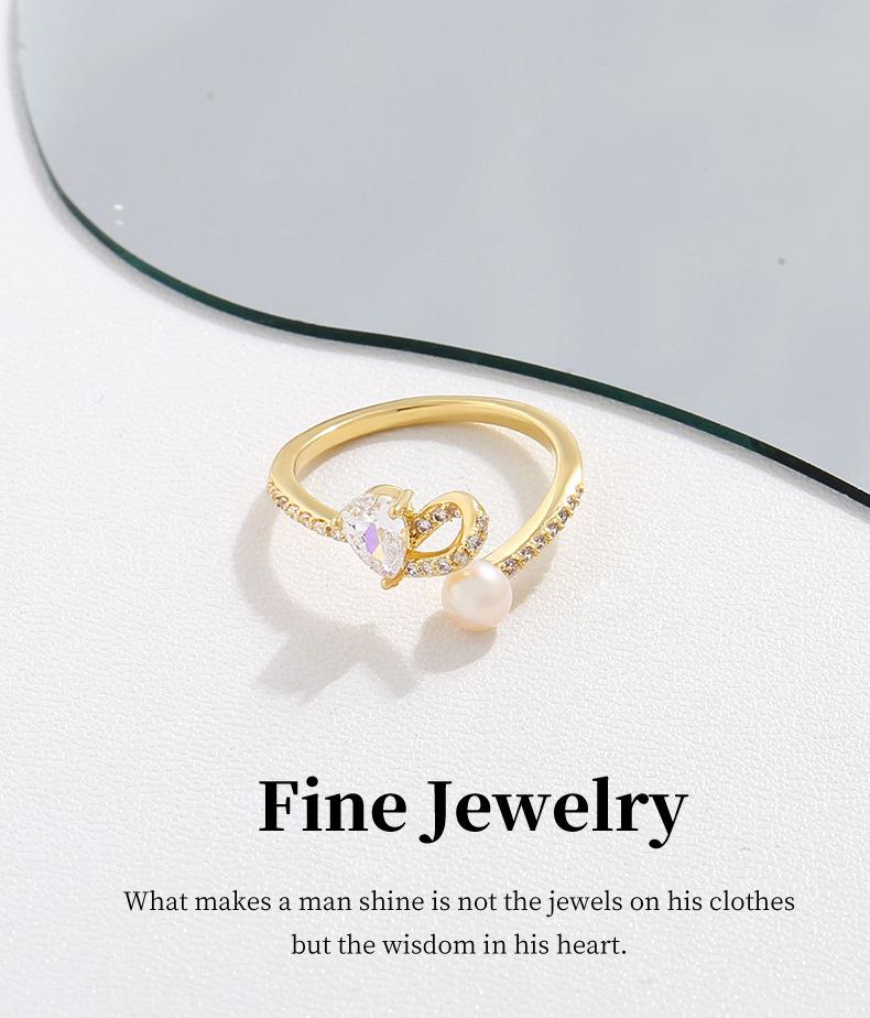 Compra Anillo Abierto de Corazón Asimétrico de Perla Natural y Zircón Anillo Elegante Nicho de Gama Alta Lujo Accesible Anillo para el Dedo Índice de Mujer al por mayor en Joom.pro