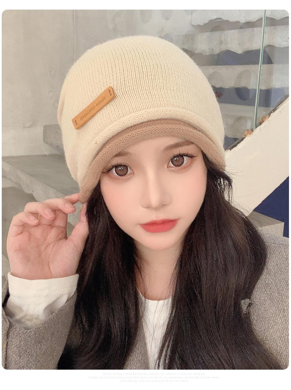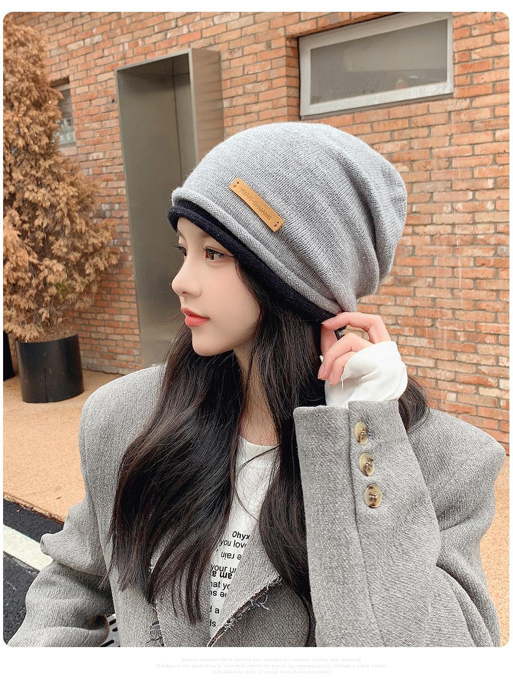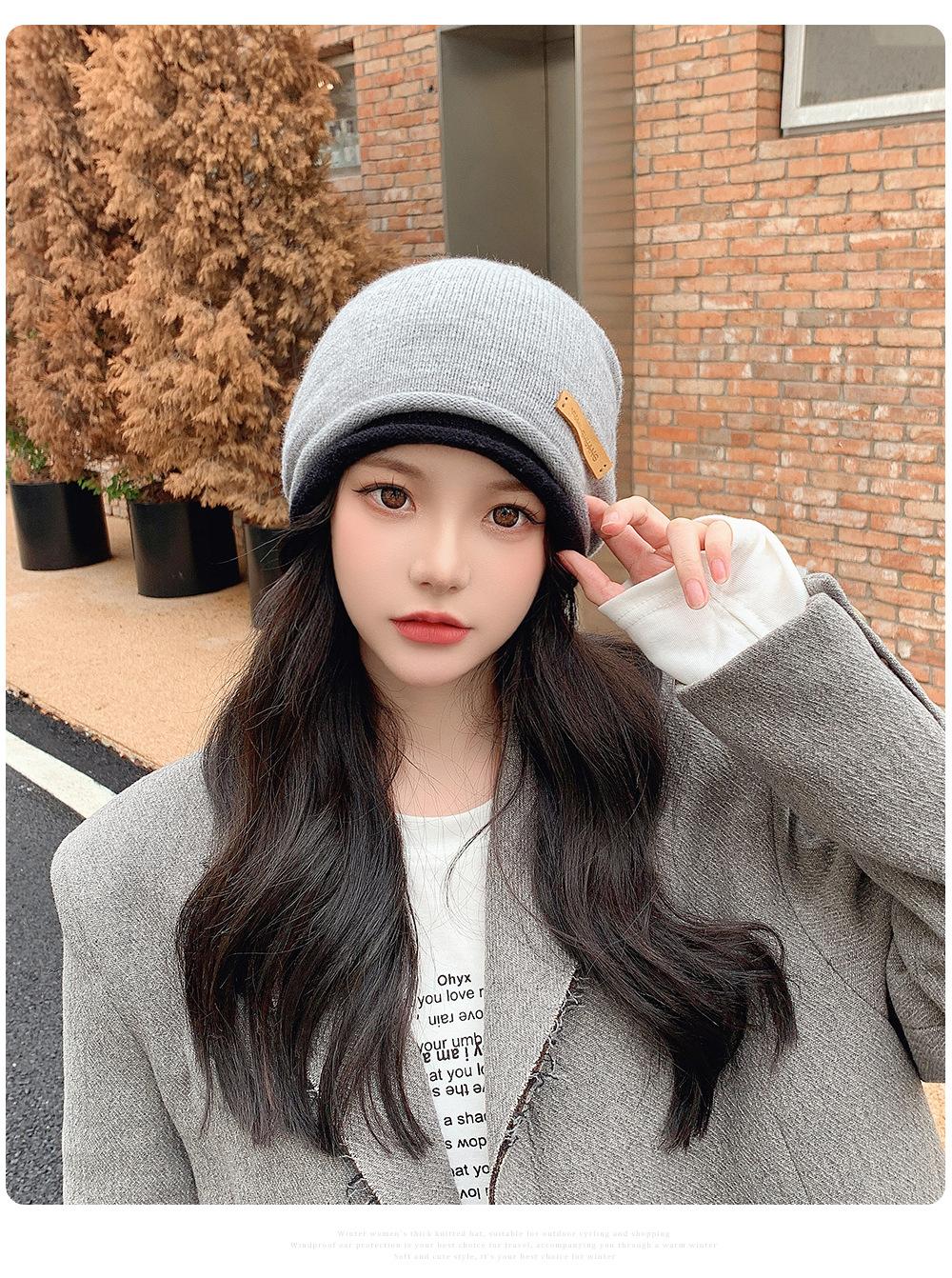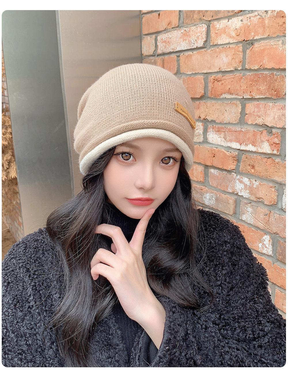 Gorro de lana para mujer, de otoño e invierno, con gran circunferencia de la cabeza, estilo K, versátil, de punto, Baotou, para el frío, con protección auditiva y confinamiento.