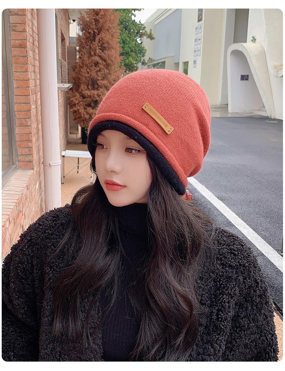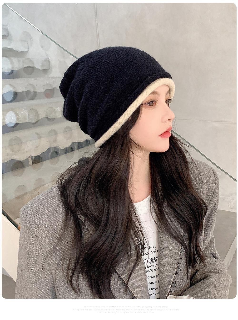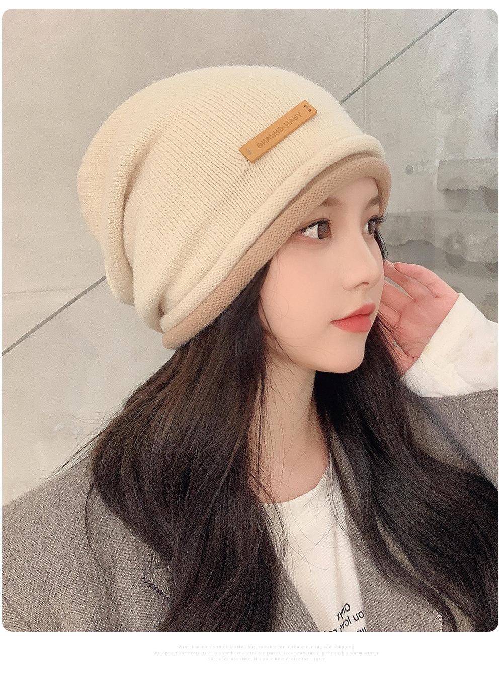 Gorro de lana para mujer, de otoño e invierno, con gran circunferencia de la cabeza, estilo K, versátil, de punto, Baotou, para el frío, con protección auditiva y confinamiento.
