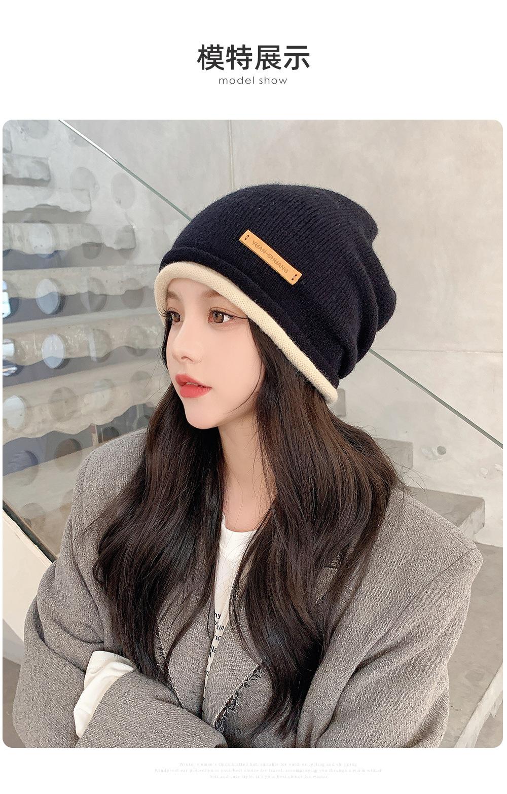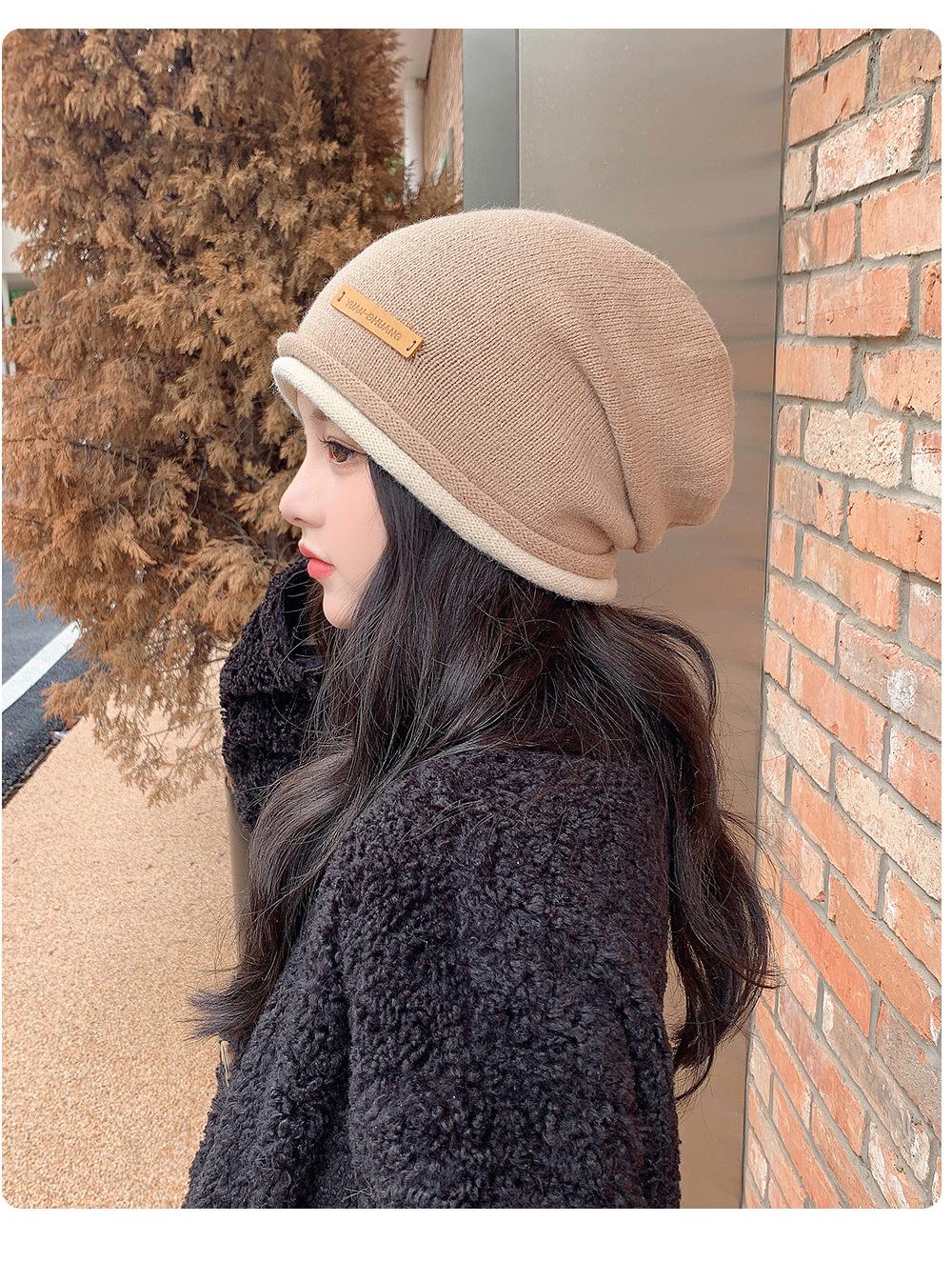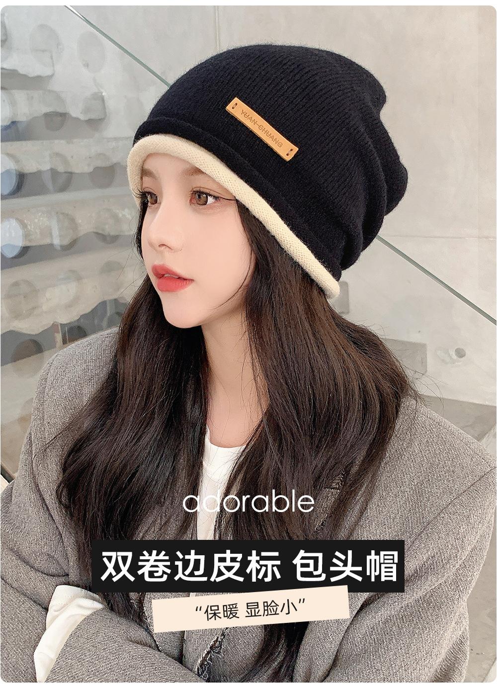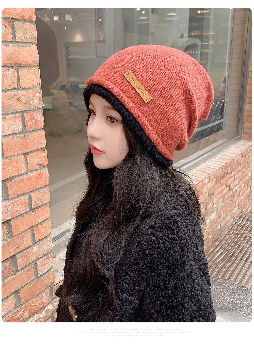 Gorro de lana para mujer, de otoño e invierno, con gran circunferencia de la cabeza, estilo K, versátil, de punto, Baotou, para el frío, con protección auditiva y confinamiento.