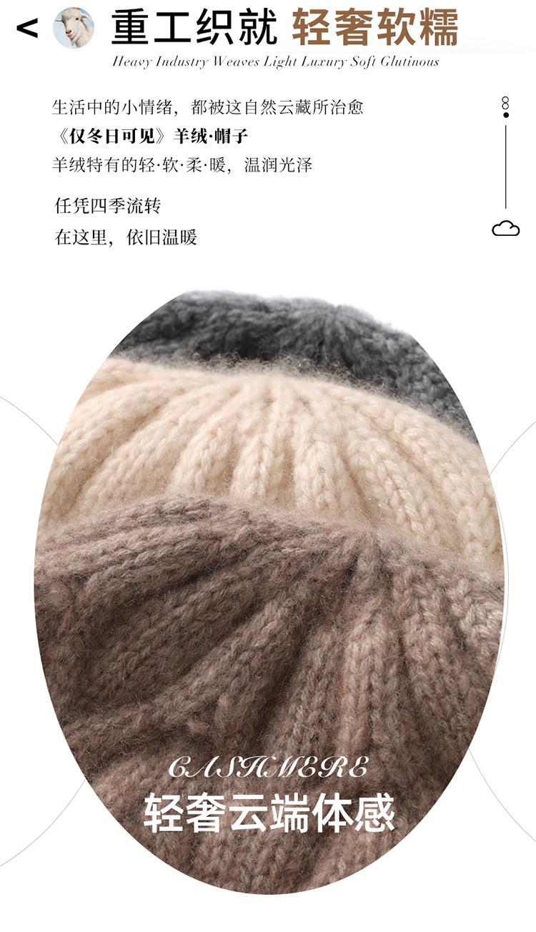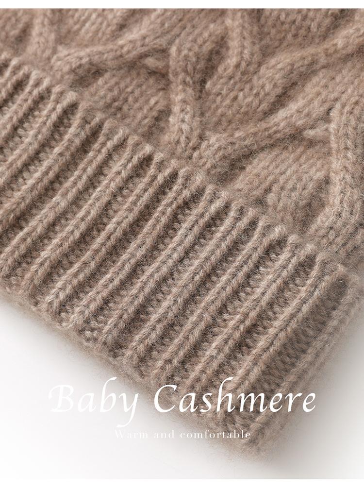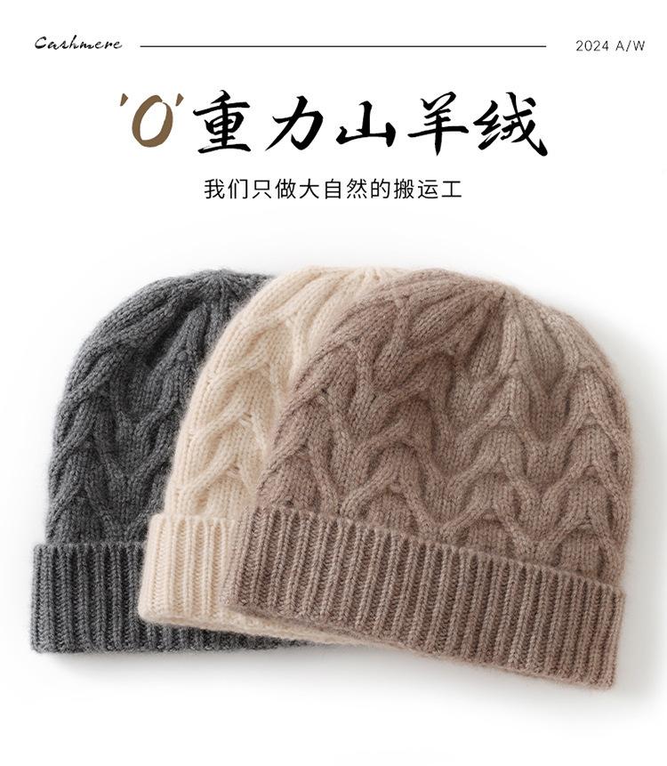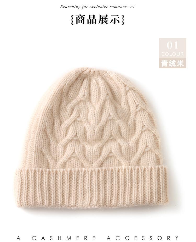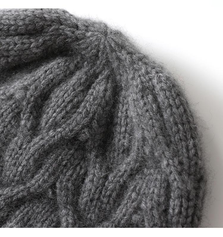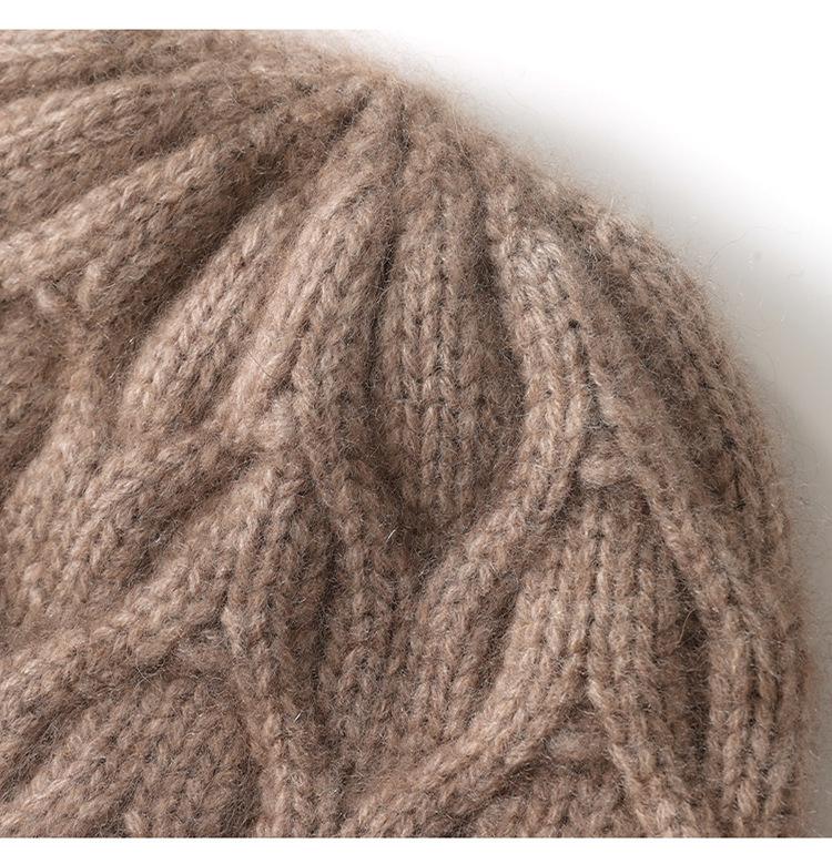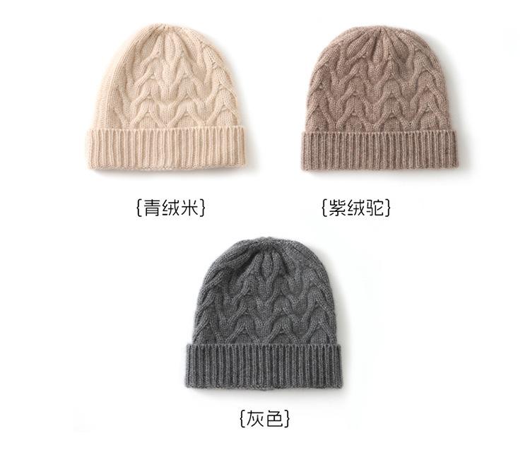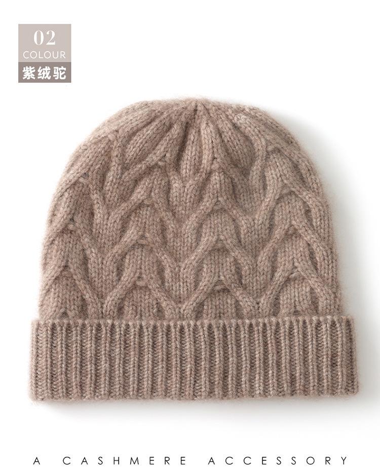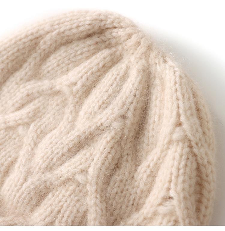 Cachemira 2025 Otoño/Invierno Nuevo Sombrero Casual de Punto de Color Sólido de Alta Gama para Mujer, Cálido y a Prueba de Frío, Moderno con Puño Trenzado