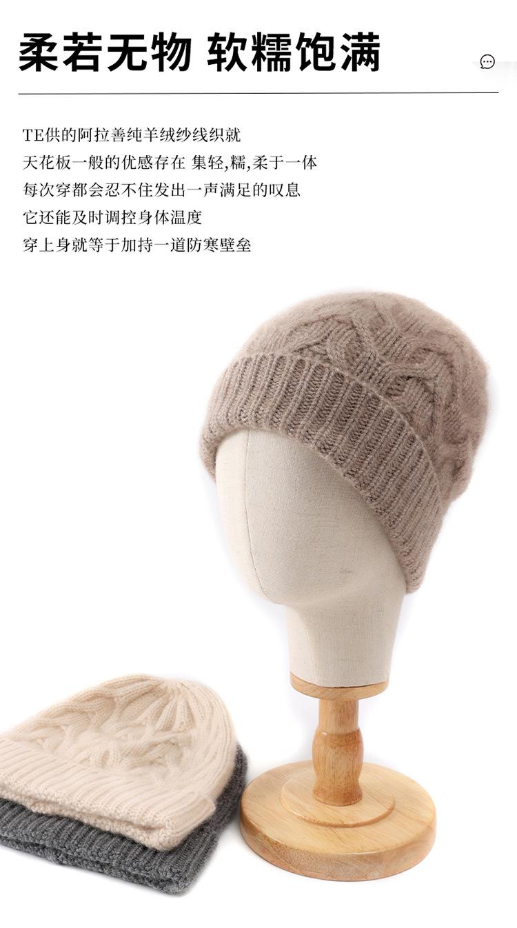 Cachemira 2024 otoño e invierno nuevo para mujer de alta gama color sólido tejido cálido a prueba de frío moderno puño de flor trenzada sombrero casual