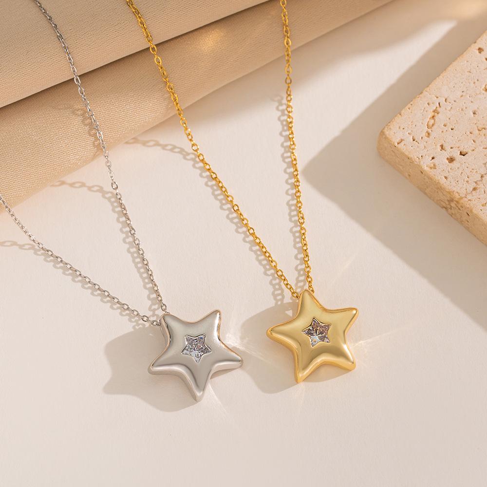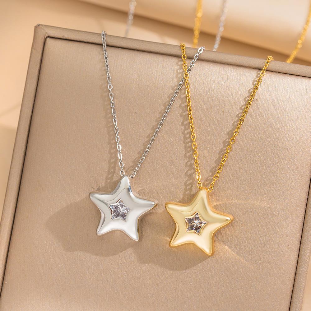 426 gold five-pointed star necklace, 426 steel color five-pointed star necklace