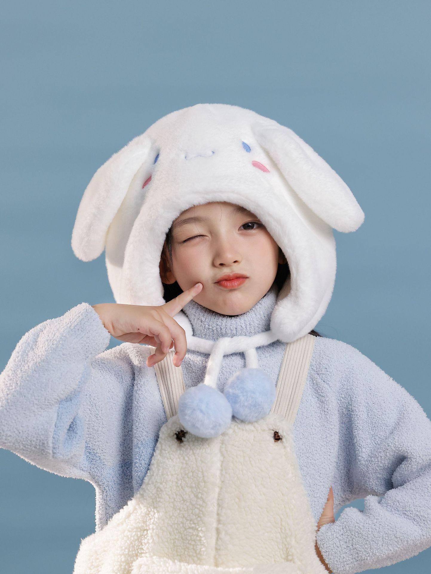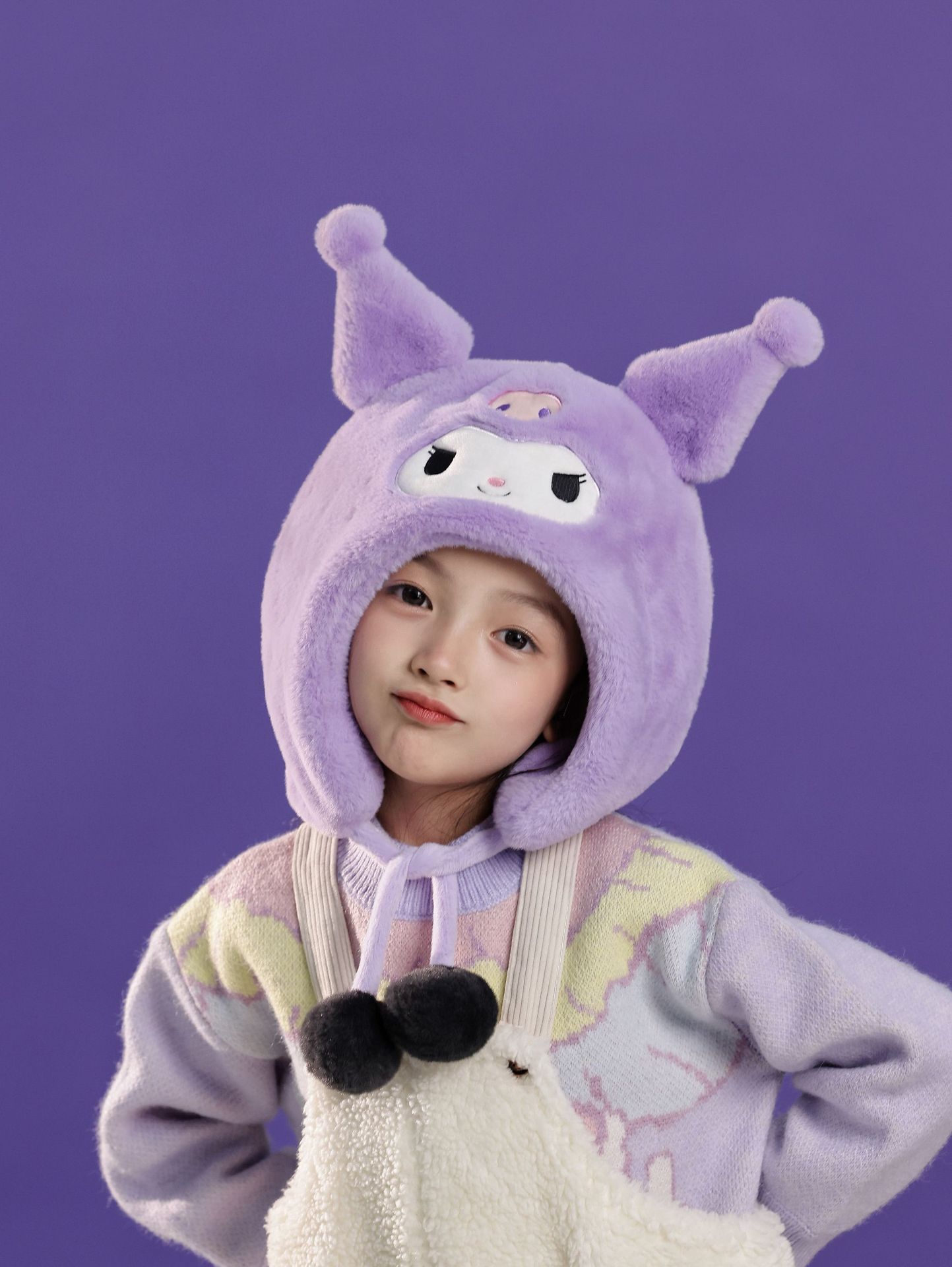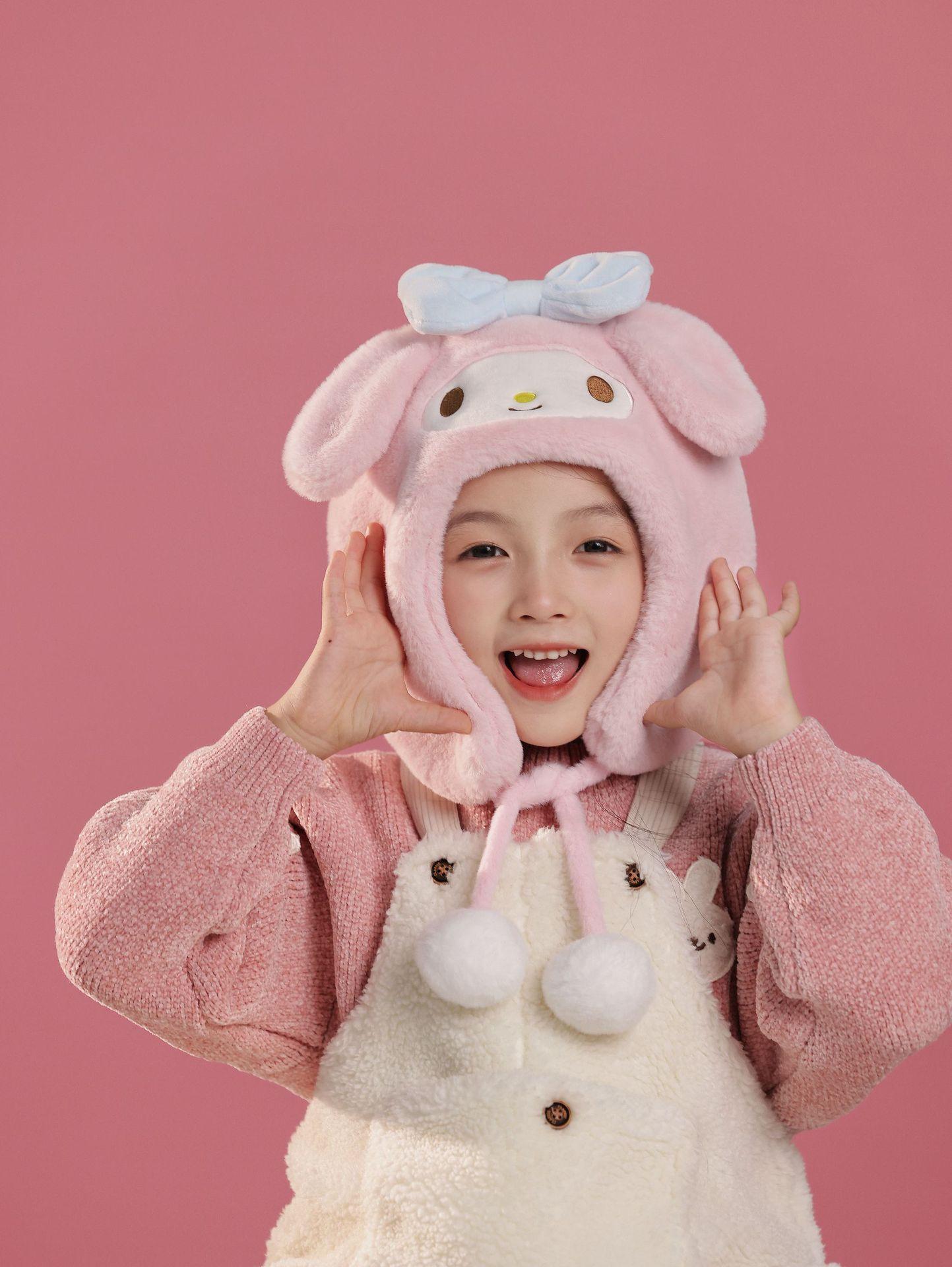 Gorro infantil Sanrio de otoño e invierno para niños y niñas de 3 a 10 años, gorro cálido de dibujos animados, gorro con protección para las orejas para niños, gorro colgante con bola