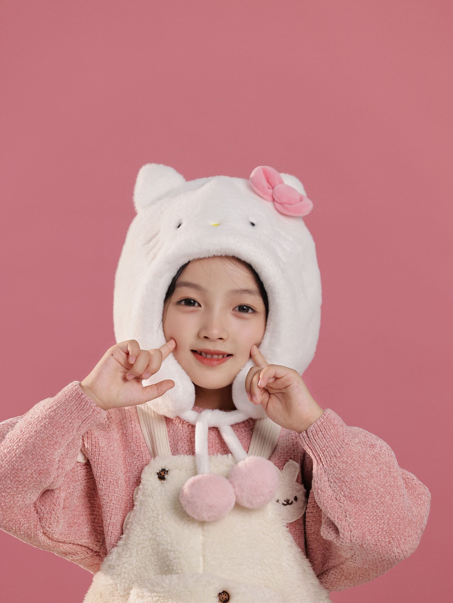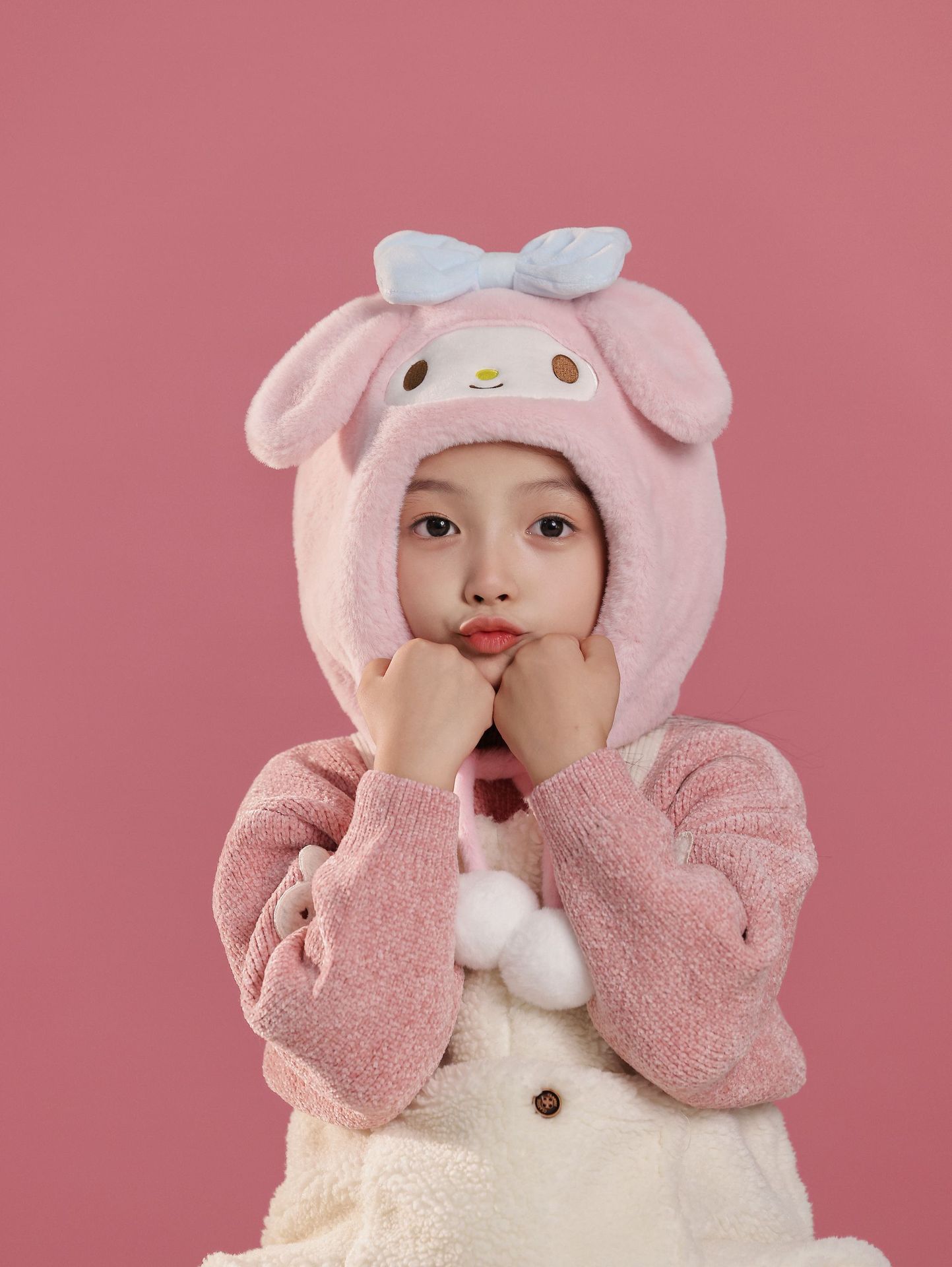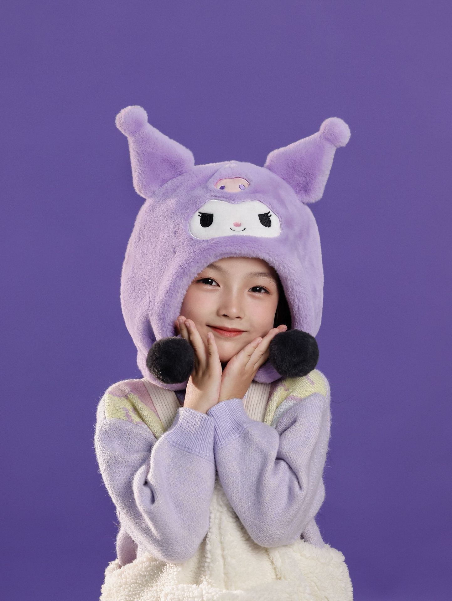 Gorro infantil Sanrio de otoño e invierno para niños y niñas de 3 a 10 años, gorro cálido de dibujos animados, gorro con protección para las orejas para niños, gorro colgante con bola