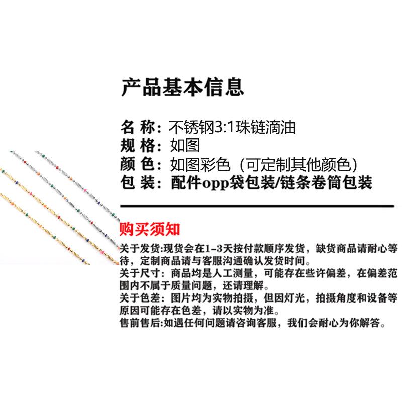 Cadena de bolas de colores con gotas de aceite de esmalte que retiene el color, collar de frijol de color DIY, cadena de clavícula de acero de titanio, cadena a juego con puntos