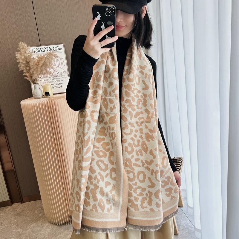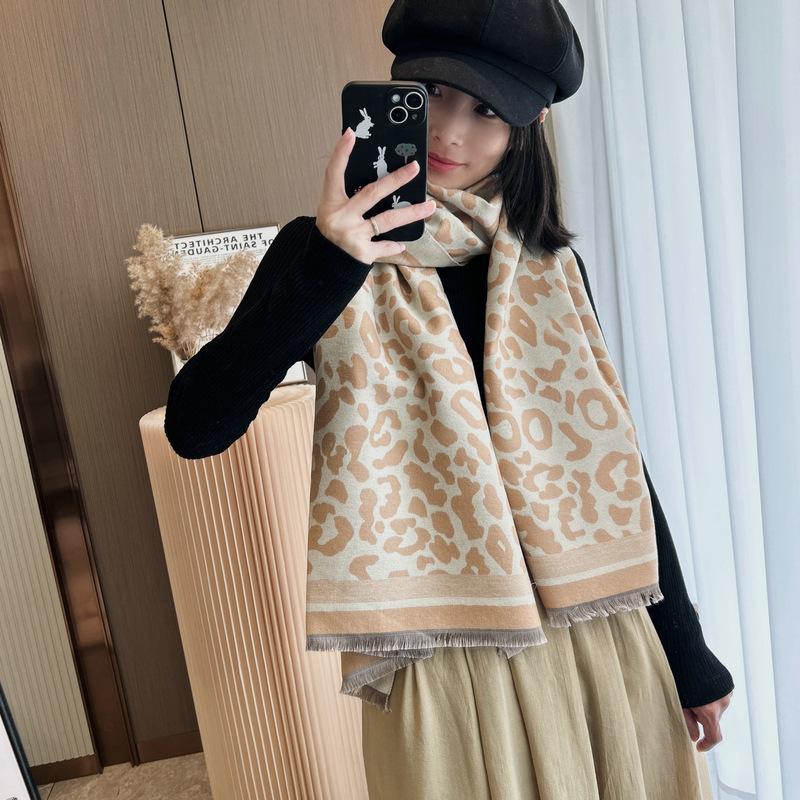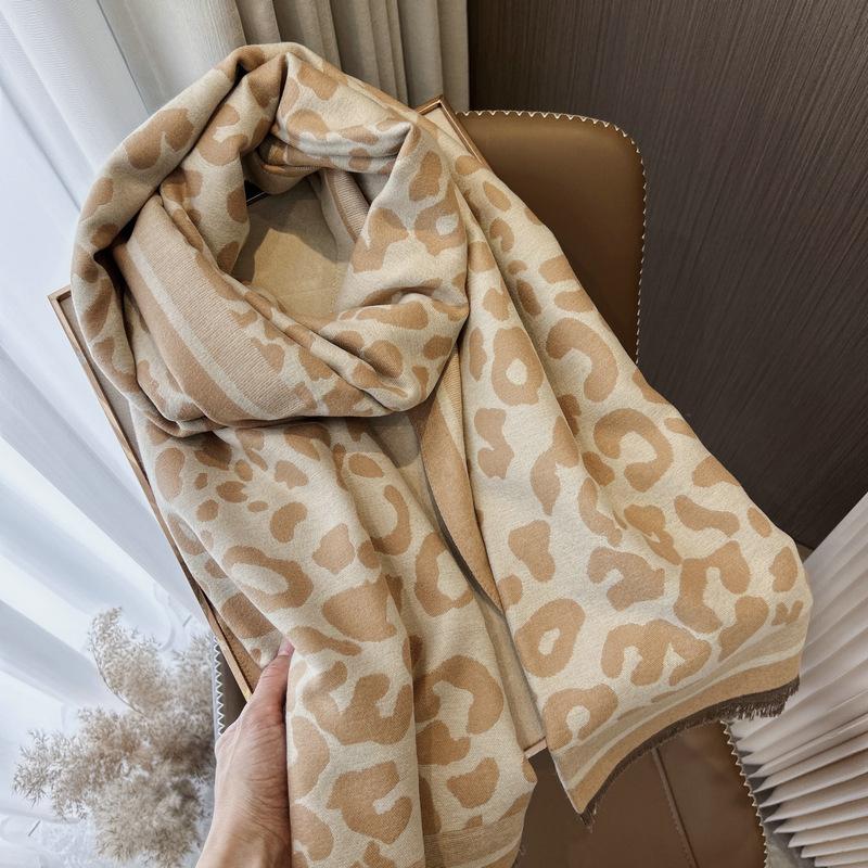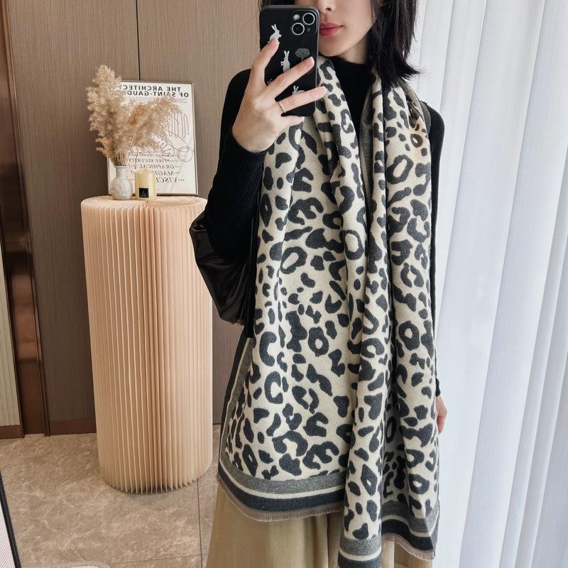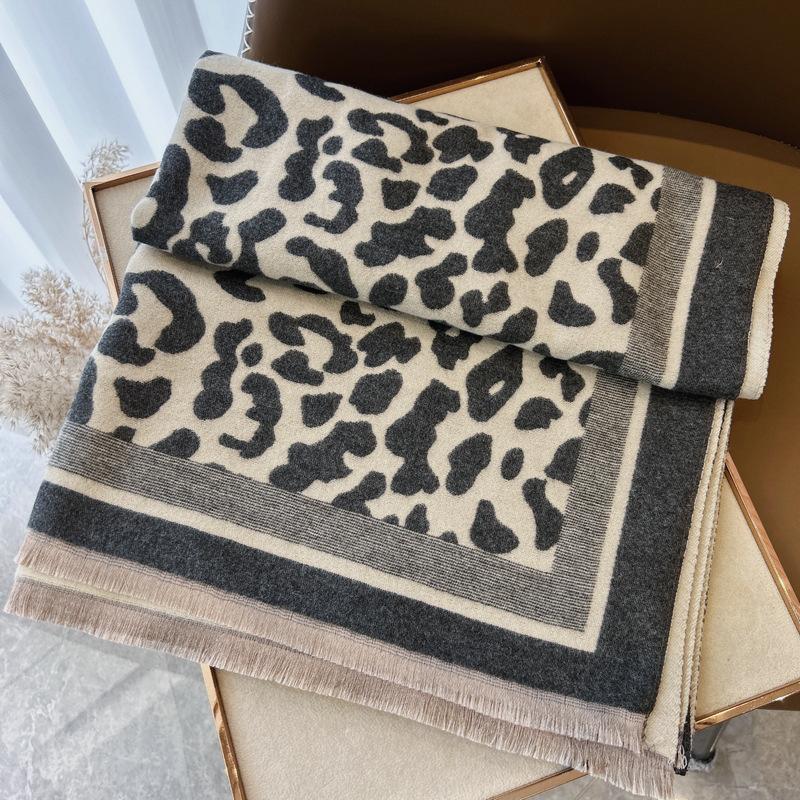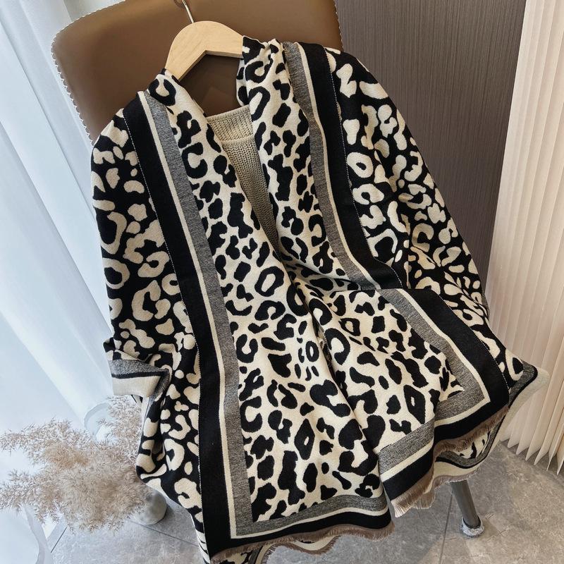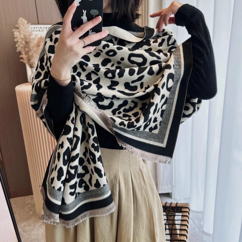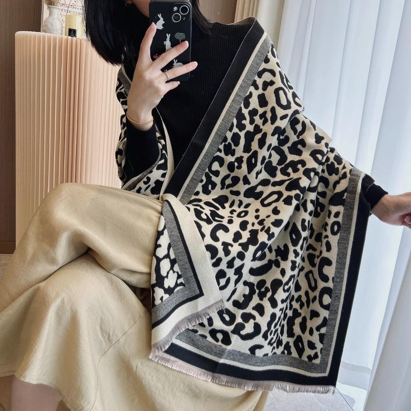 Bufanda con estampado de leopardo para mujer, estilo coreano, invierno, nueva, de alta gama, versátil, retro, imitación de cachemira, chal, bufanda cálida, doble uso
