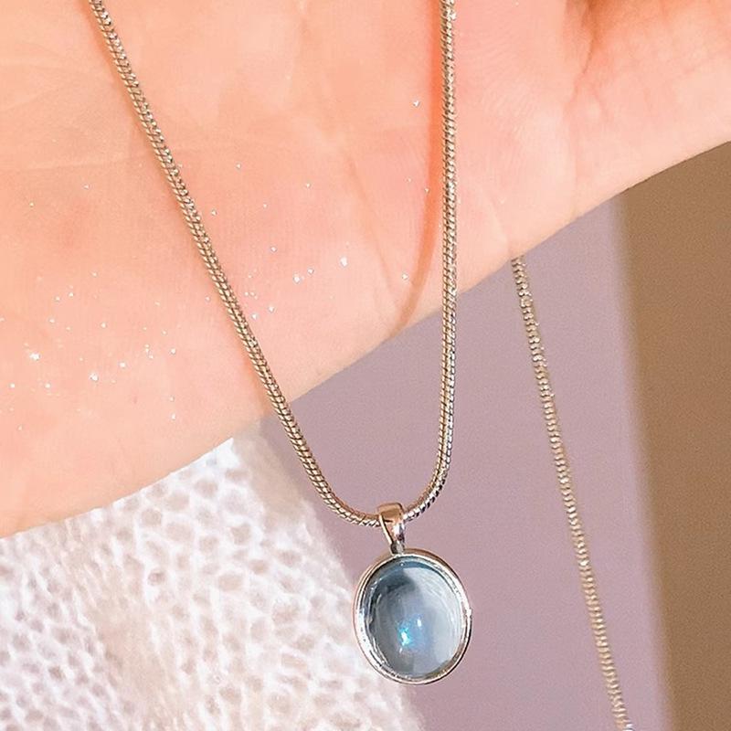 Collar de aguamarina y piedra lunar para mujer, ligero, de lujo, de diseño nicho, cadena de clavícula de alta calidad, cadena de hueso de serpiente, estilo dulce.