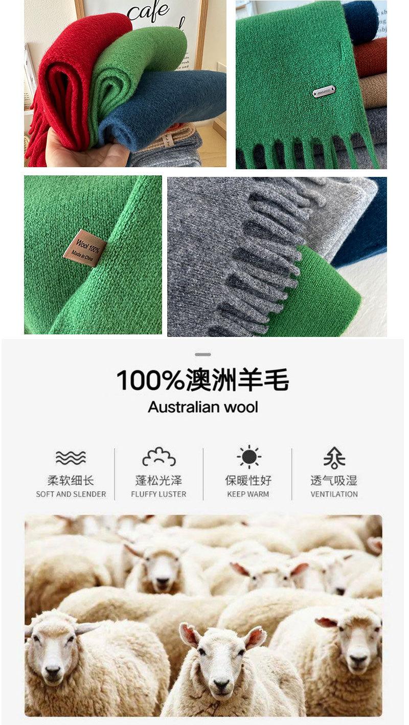 Bufanda de lana 100 % de Australia, con borlas de alta calidad, cálida y corta, de pura lana, para hombre.