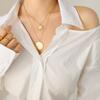 Nuevo collar de clavícula con hebilla de doble círculo hueco de acero de titanio japonés, coreano, europeo y americano de moda, collar corto para mujer