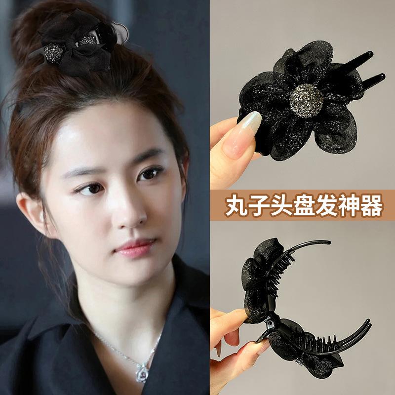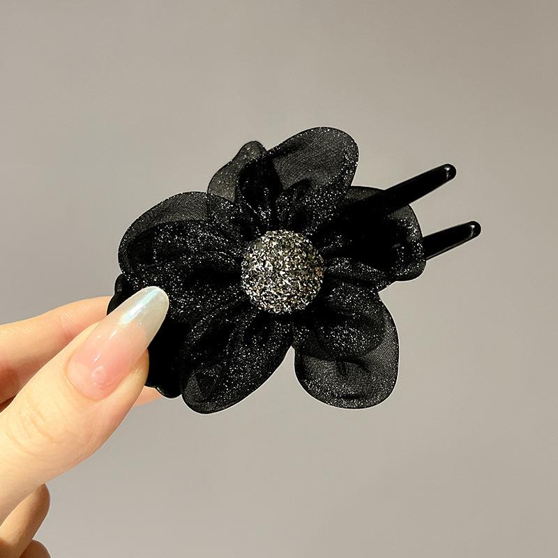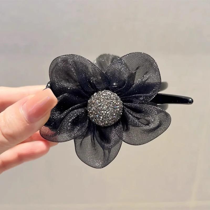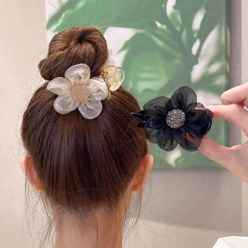 Pinza de Agarre para Cabeza de Bola de Flor de Malla para Mujer Pinza de Tiburón de Alto Nivel Artefacto para el Cabello de la Parte Posterior de la Cabeza Semirrecogido Horquilla Adorno para la Cabeza