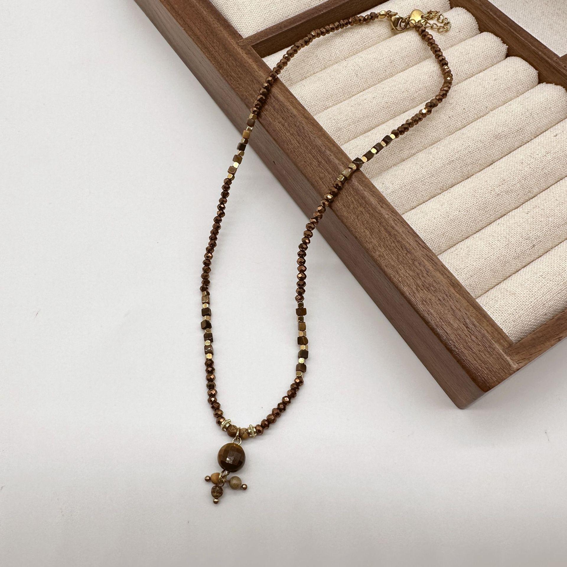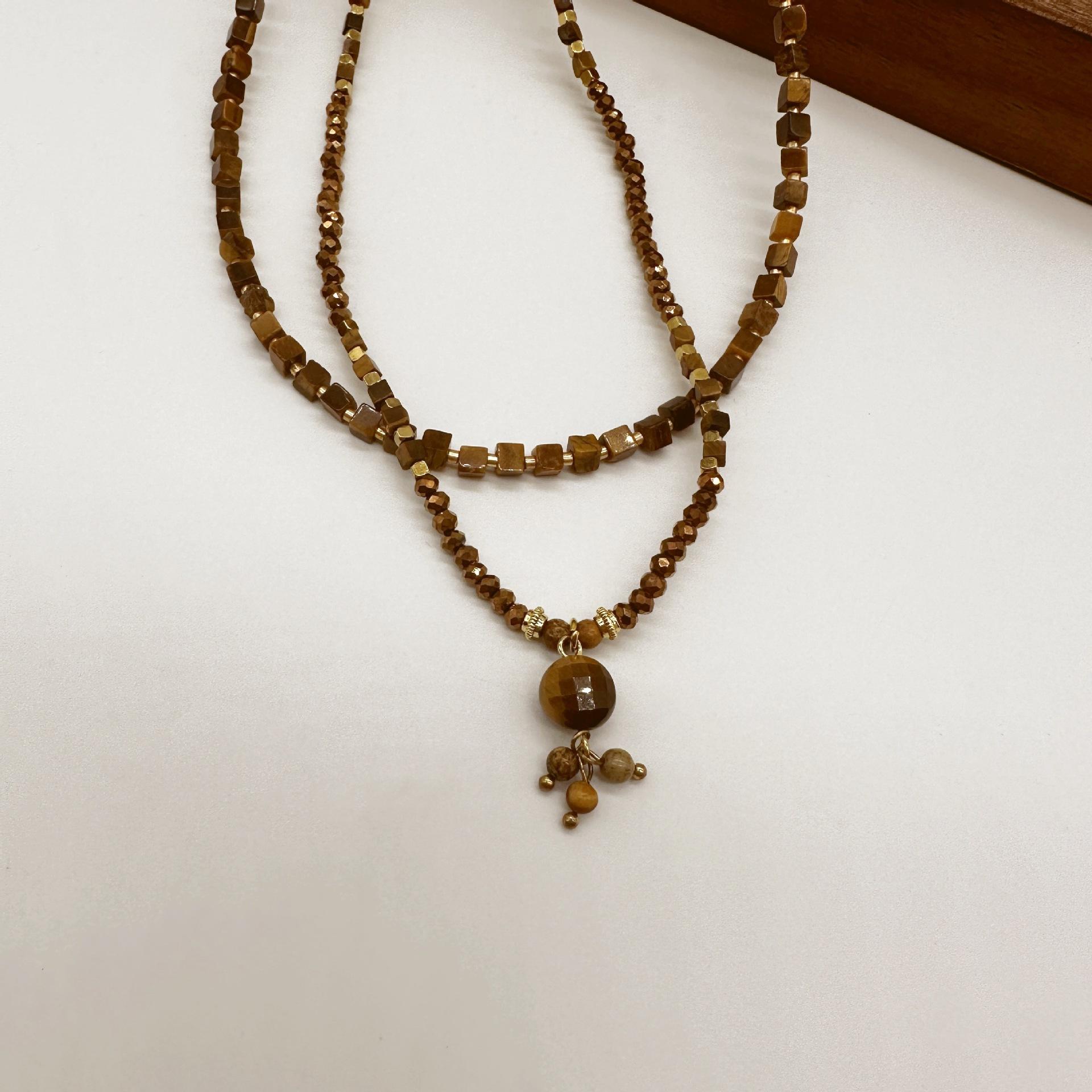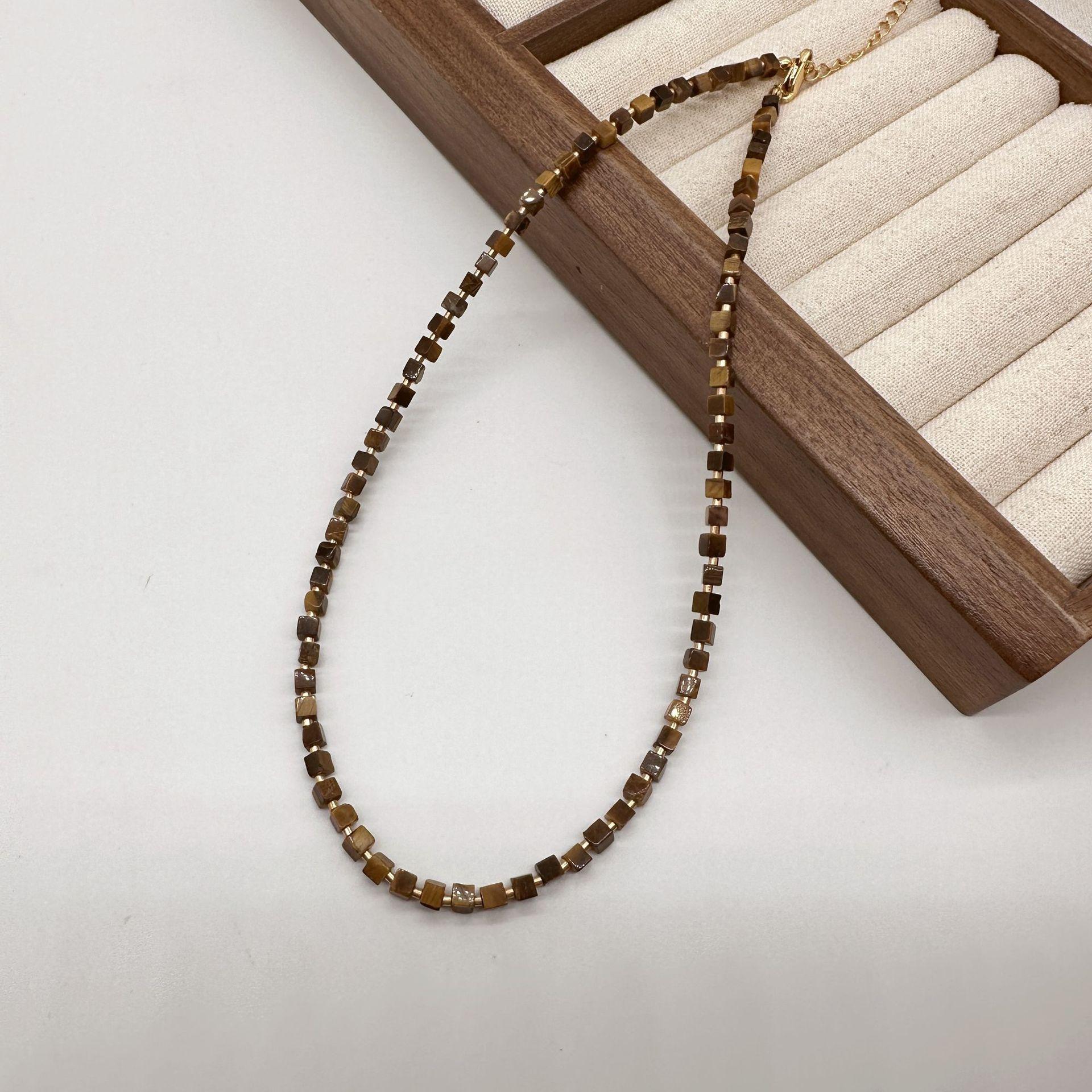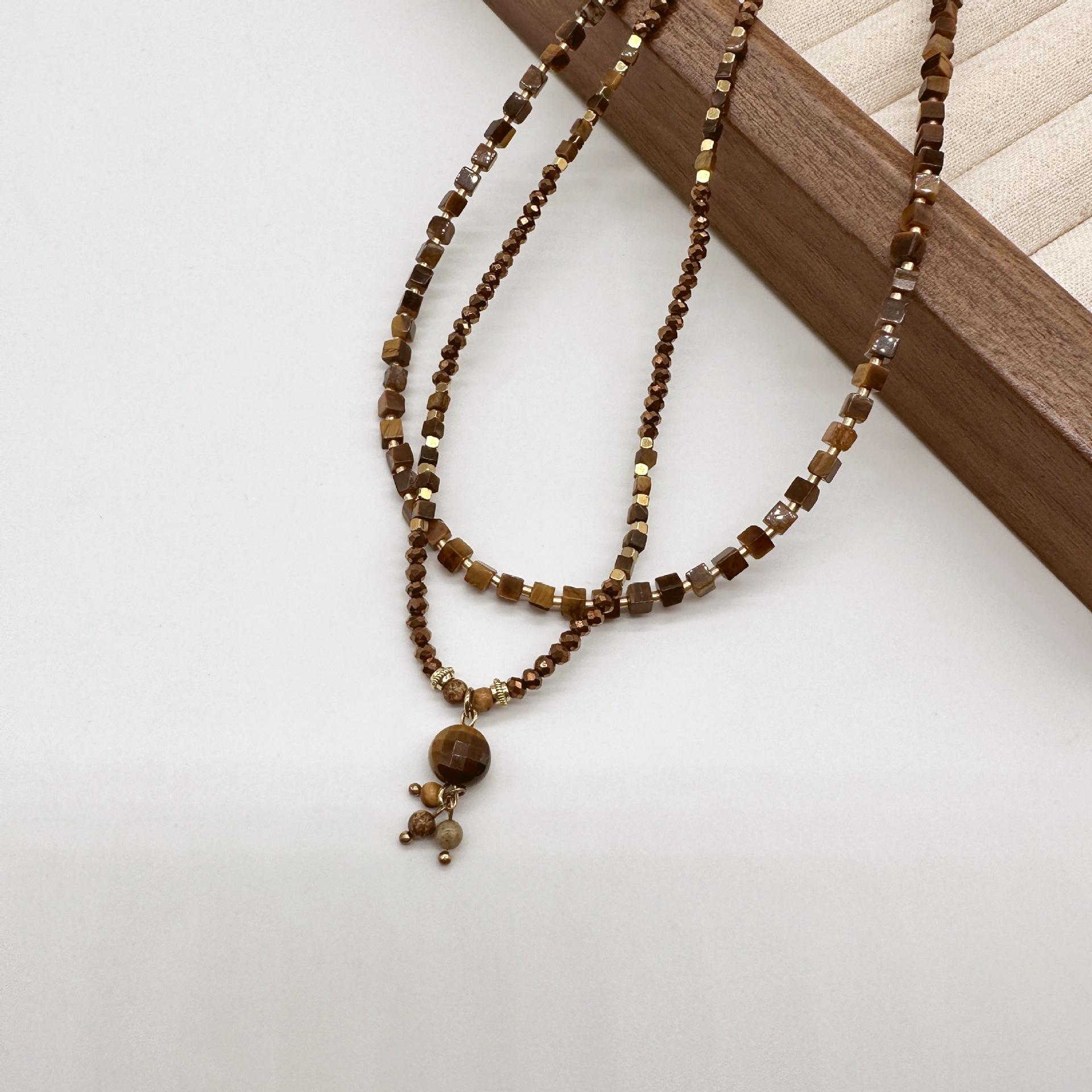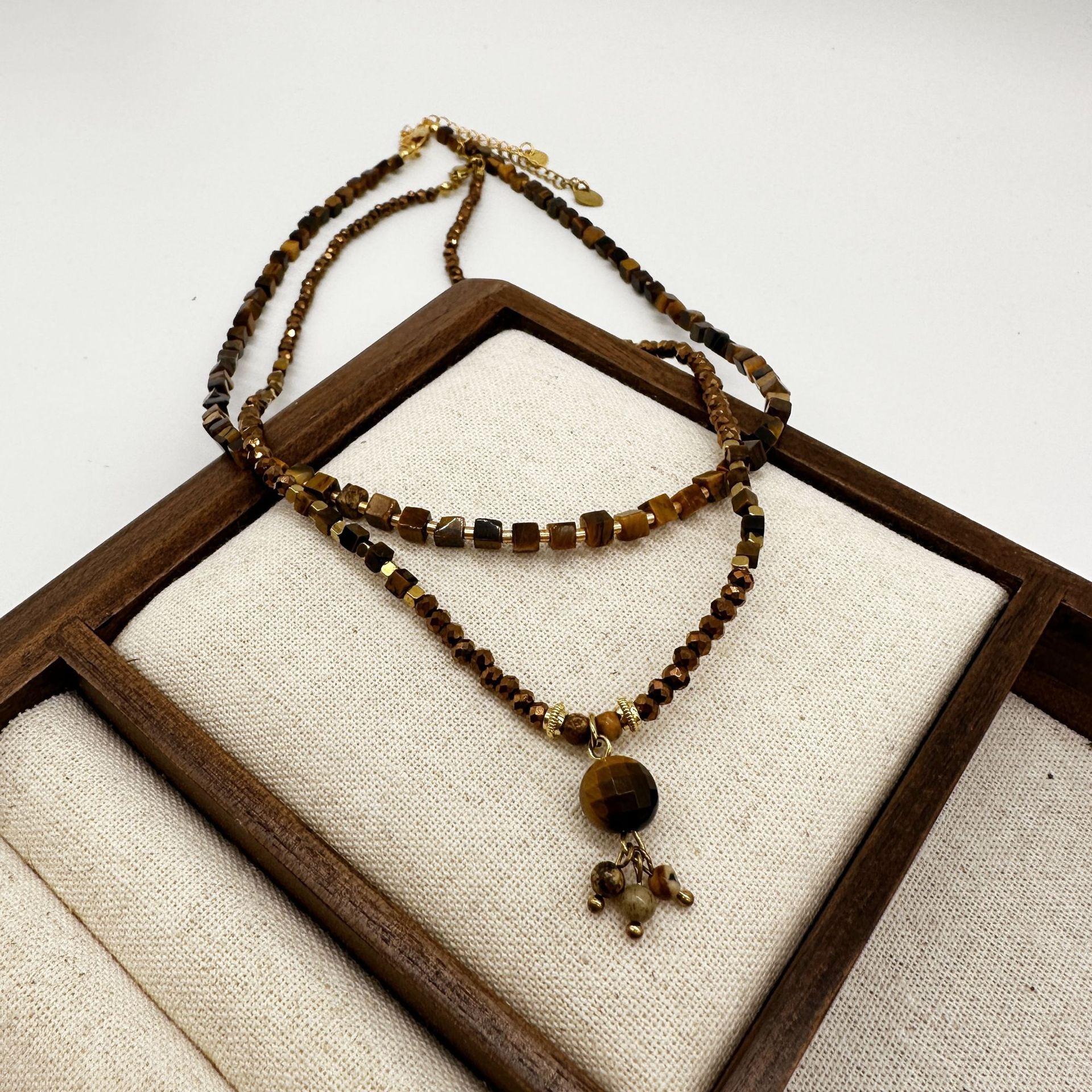 Collar de cuentas de piedra natural con accesorios Maillard de sentido avanzado, cadena de lana combinable retro y elegante para clavícula.