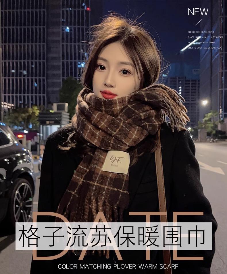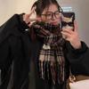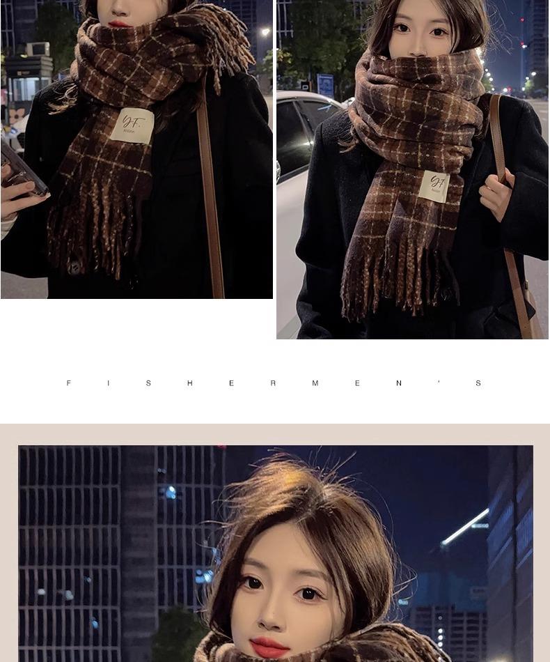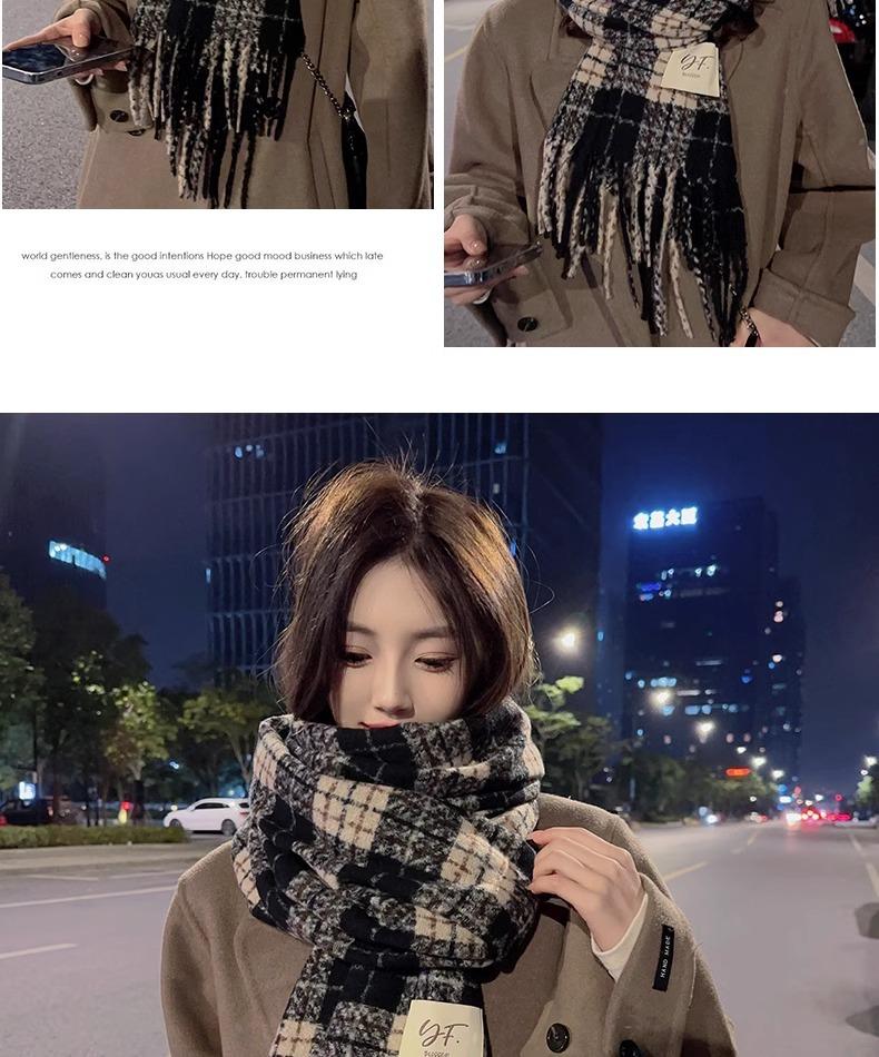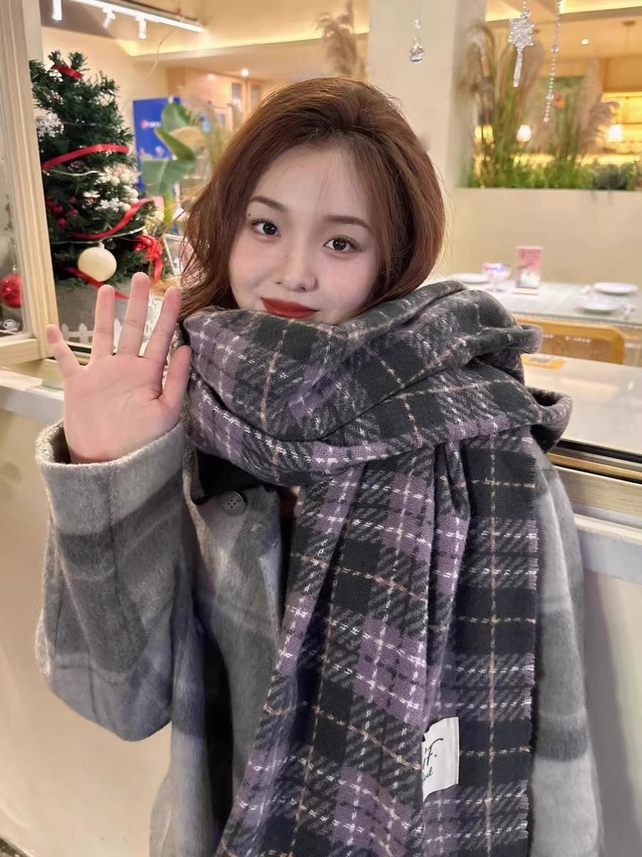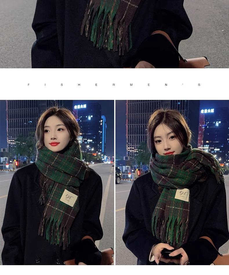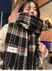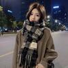 Bufanda de Cuadros Vintage para Mujer, Chal Largo Versátil Cálido de Invierno Estilo Coreano, Calentador de Cuello para Estudiante de Doble Uso