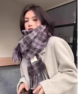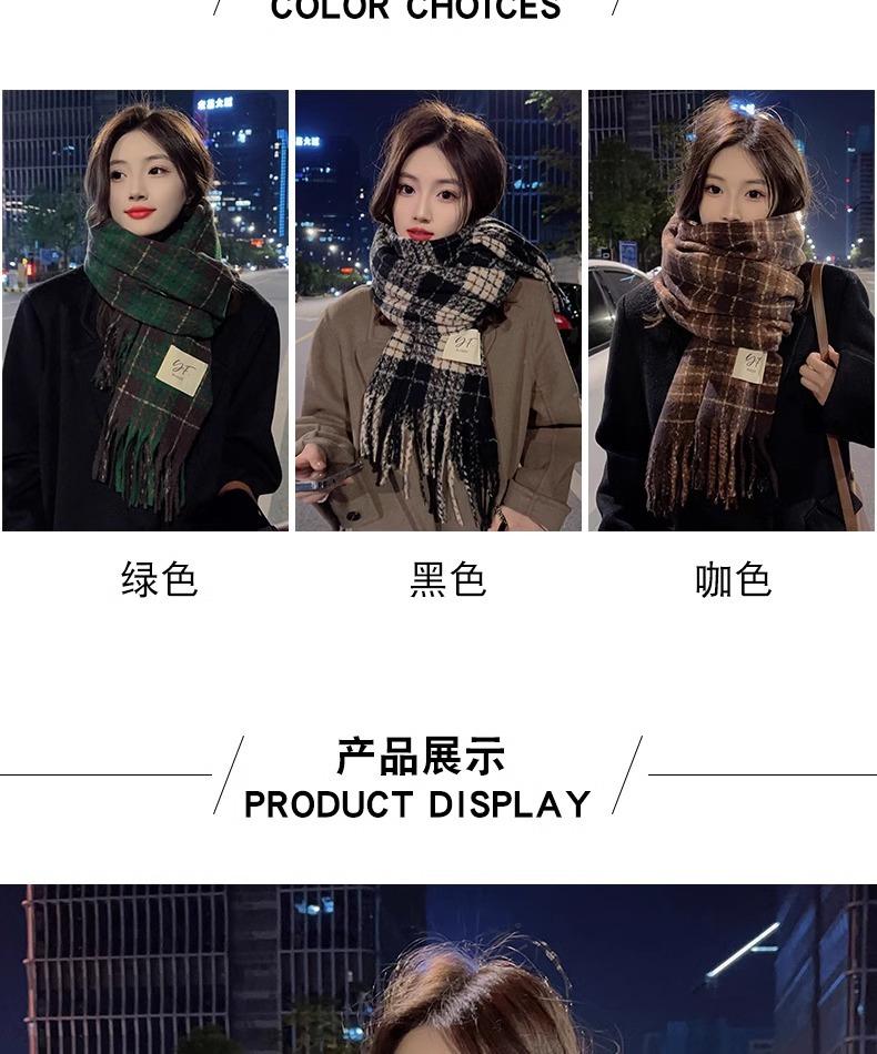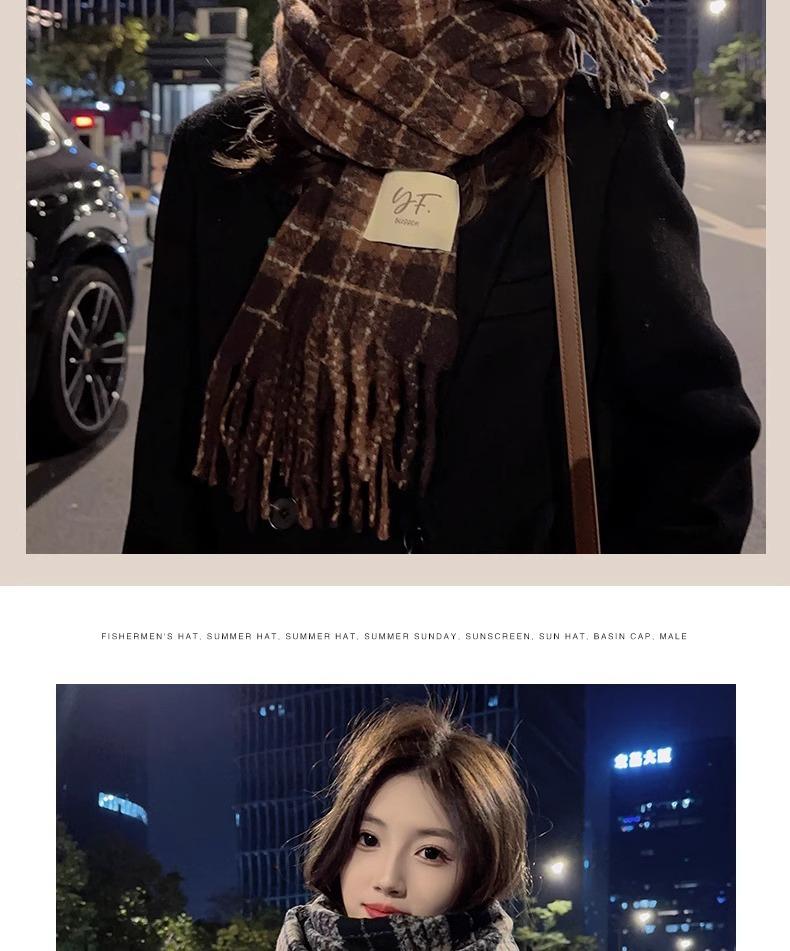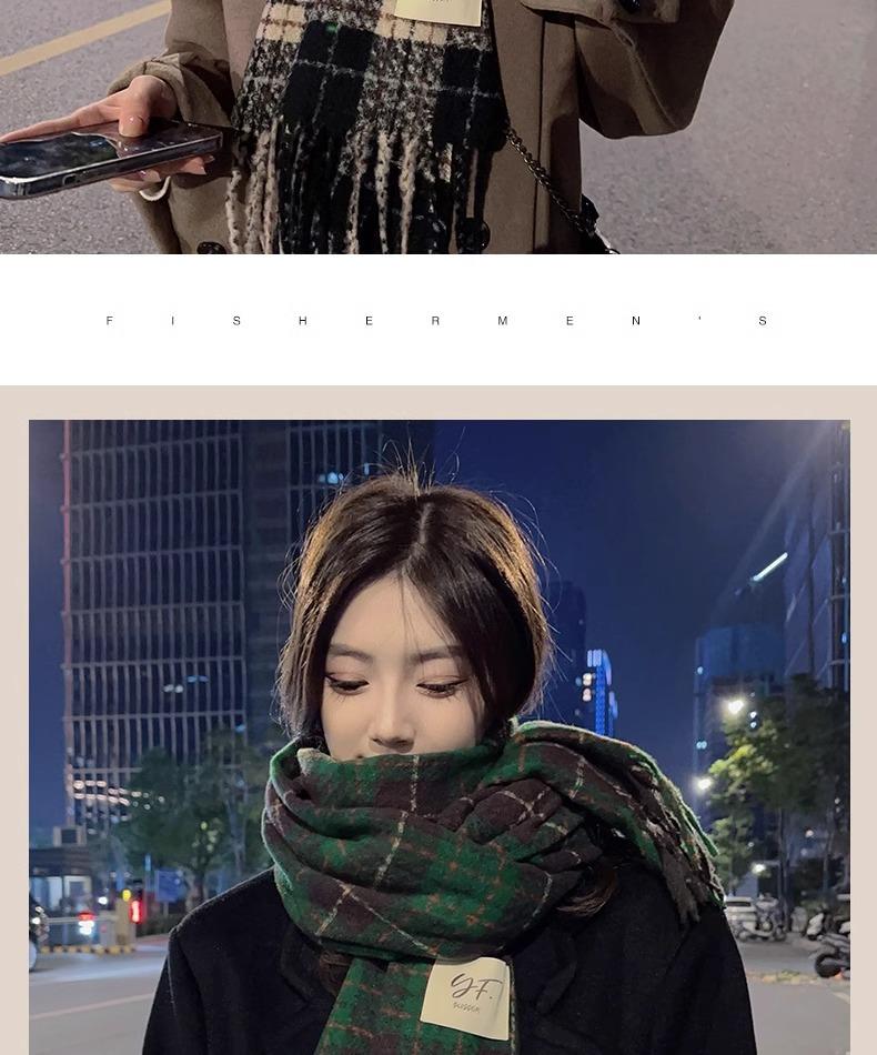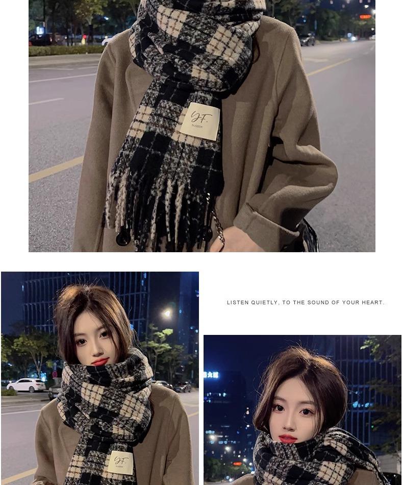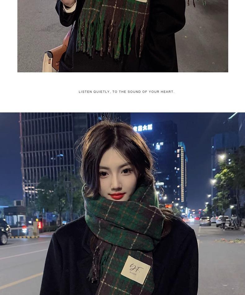 Bufanda de Cuadros Vintage para Mujer, Chal Largo Versátil Cálido de Invierno Estilo Coreano, Calentador de Cuello para Estudiante de Doble Uso