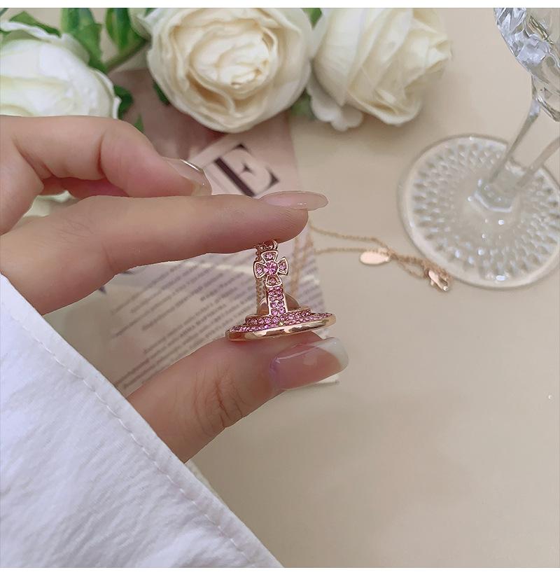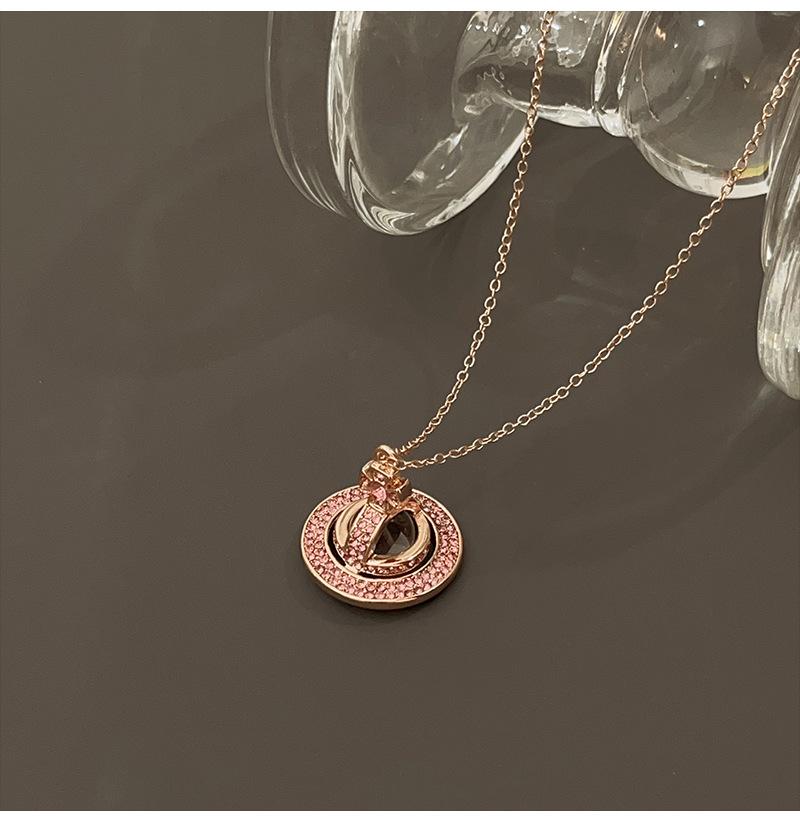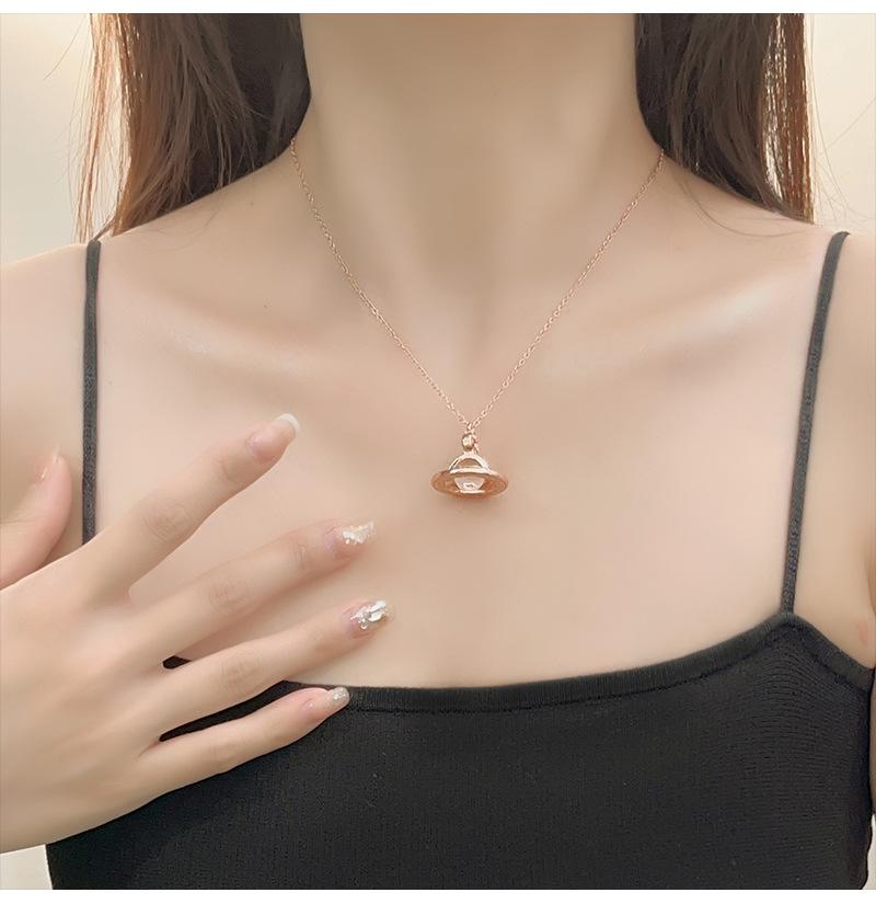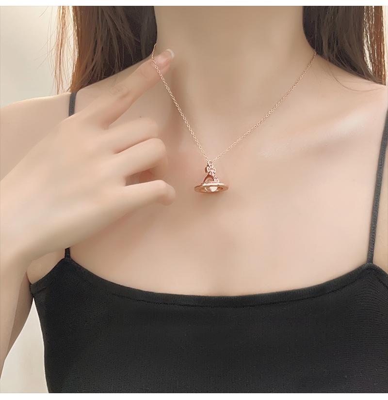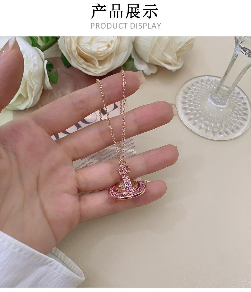 Nuevo collar Seiko de alta edición con diamantes rosas estéreo y planeta, estilo coreano clásico, sencillo, personalizado, ligero, de lujo, con cadena de clavícula decorativa