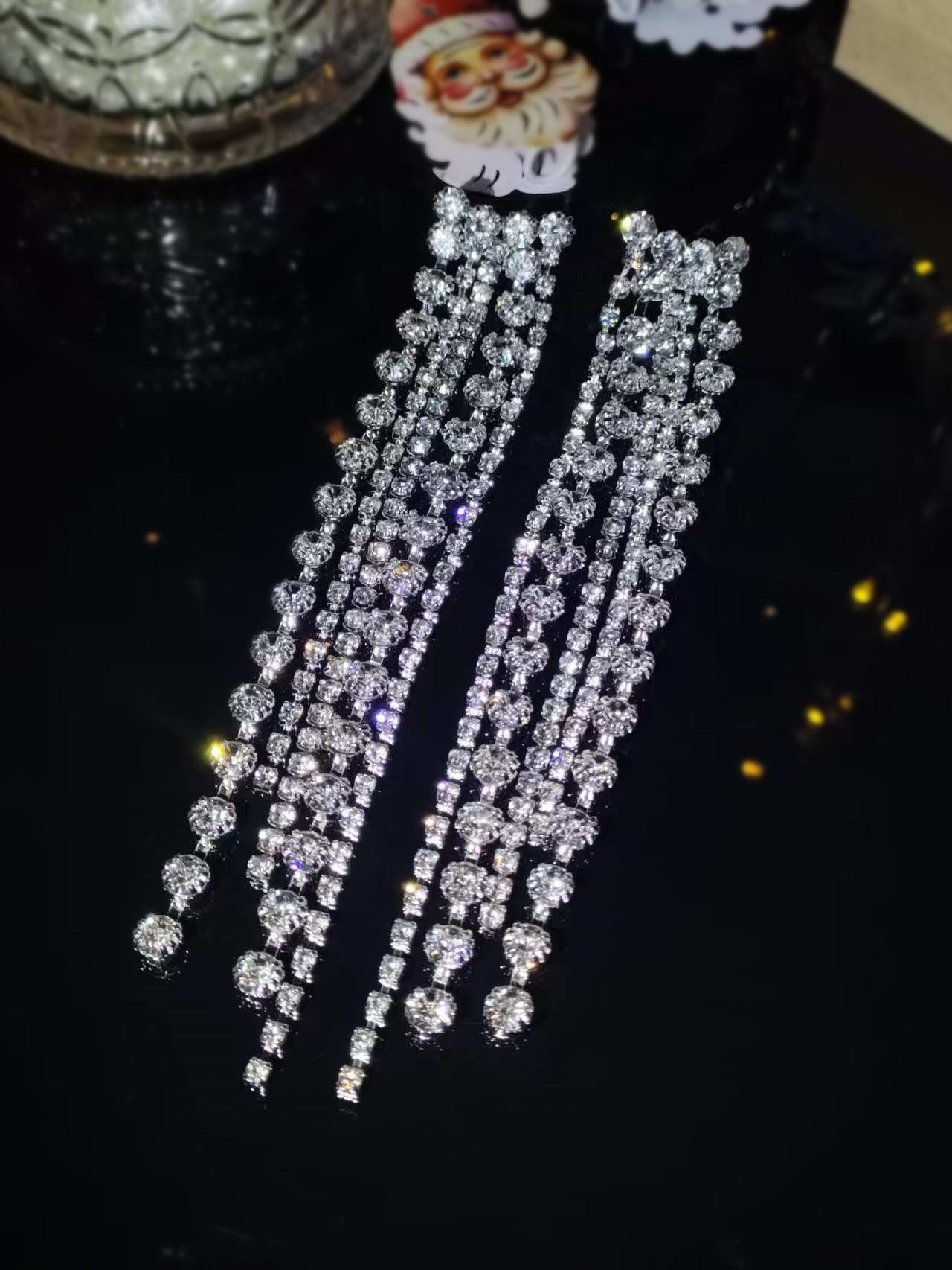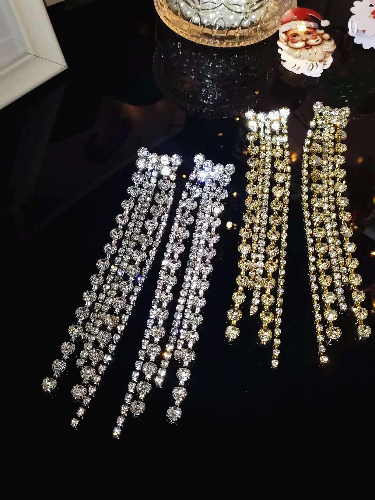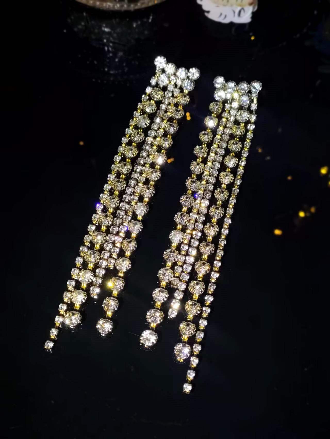 Aretes Populares de Pedrería, Aretes Europeos y Americanos Exagerados de Borlas Largas, Aretes Elegantes y Versátiles