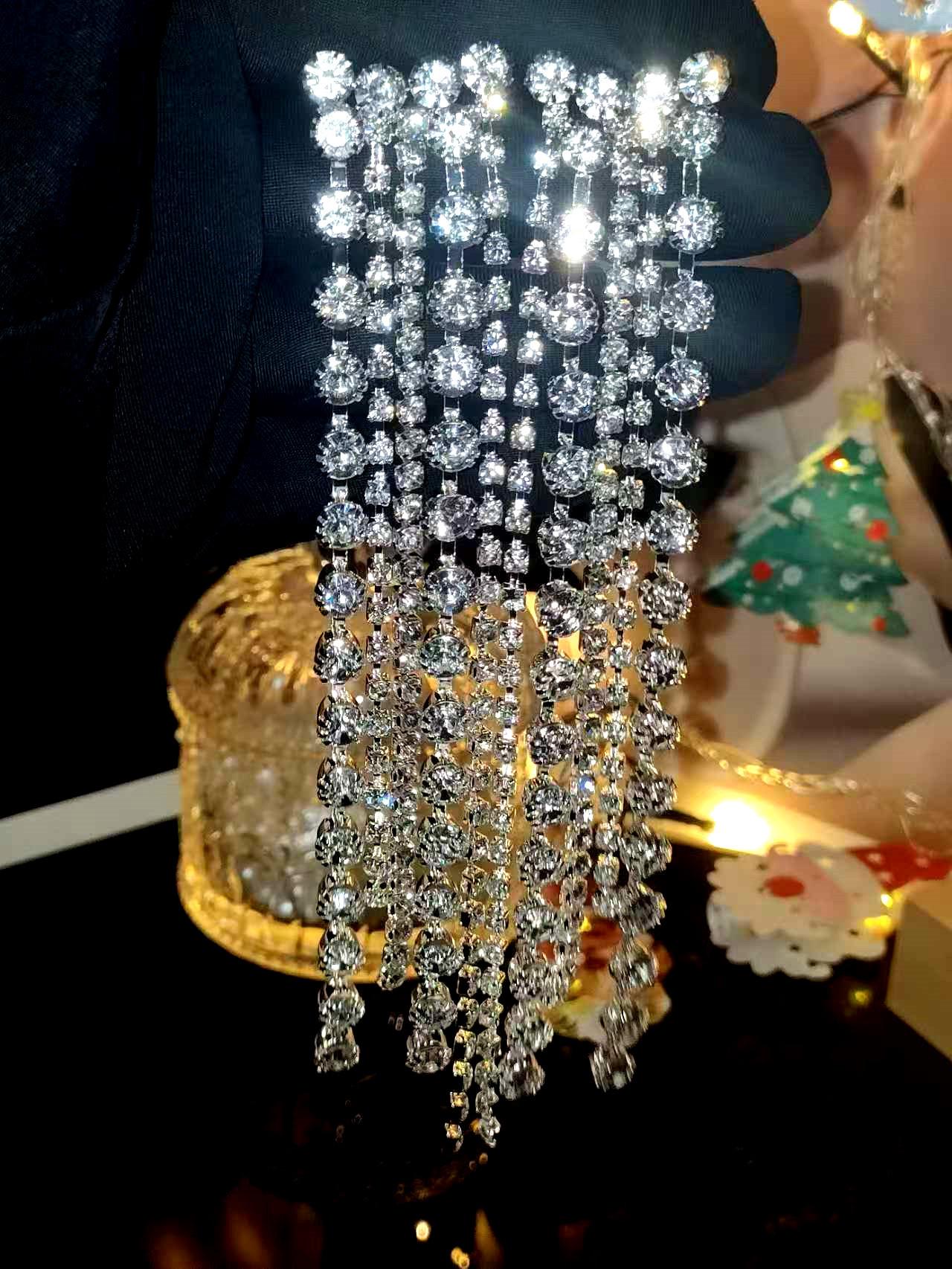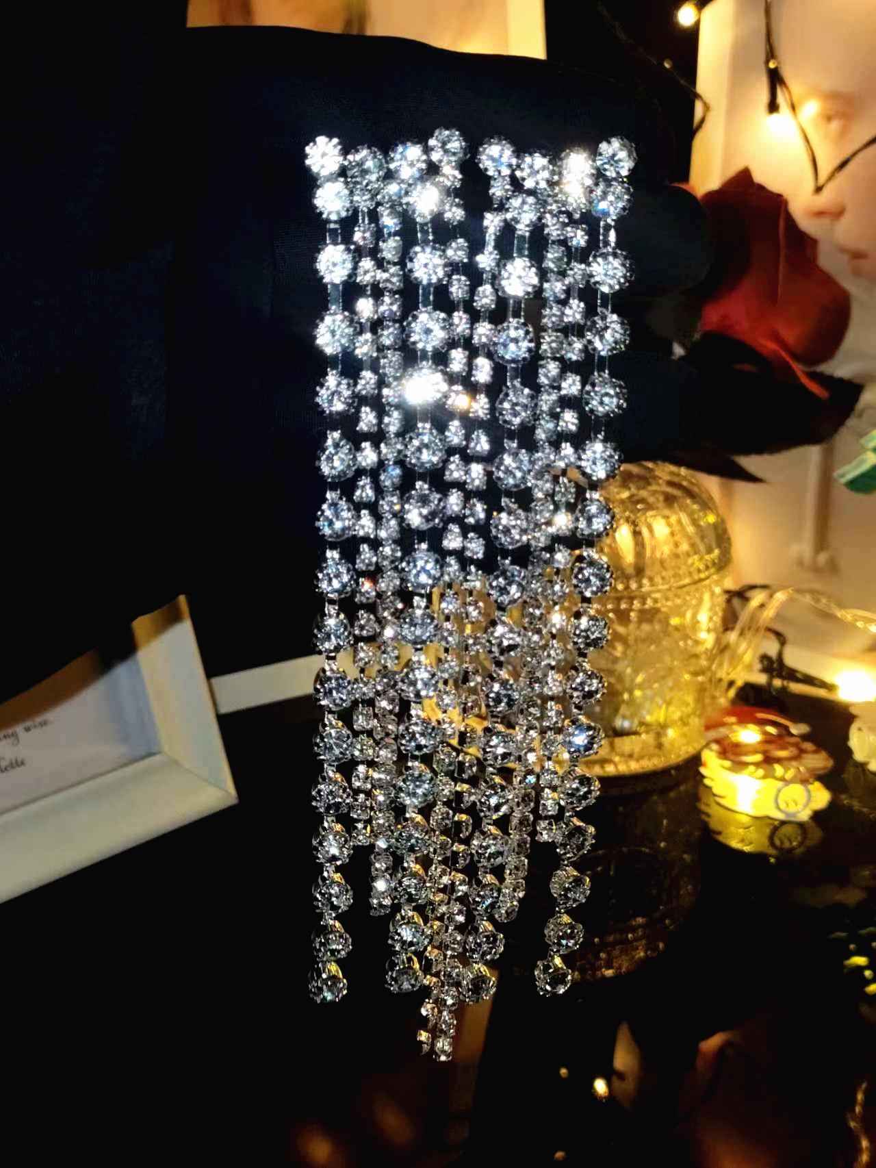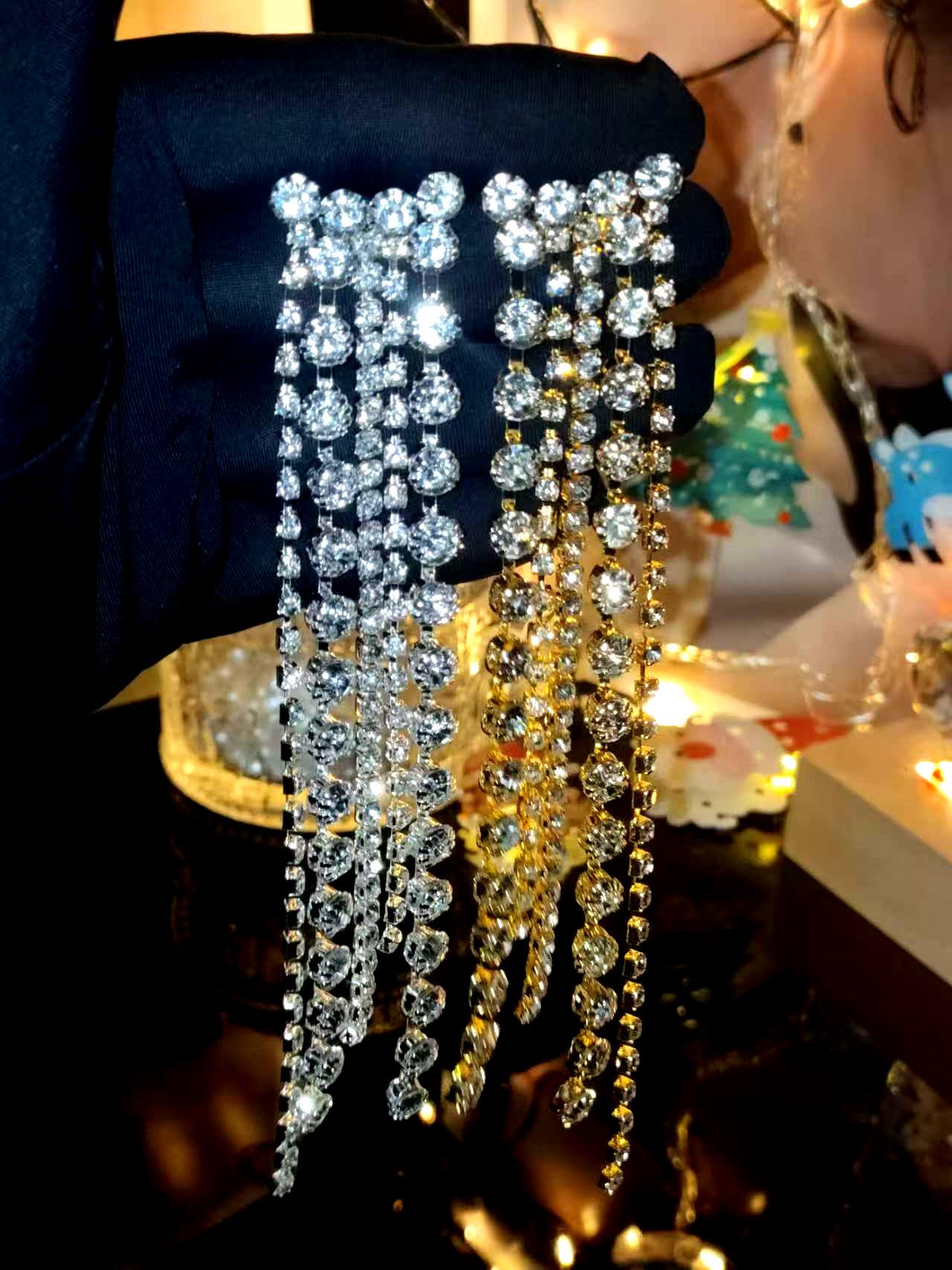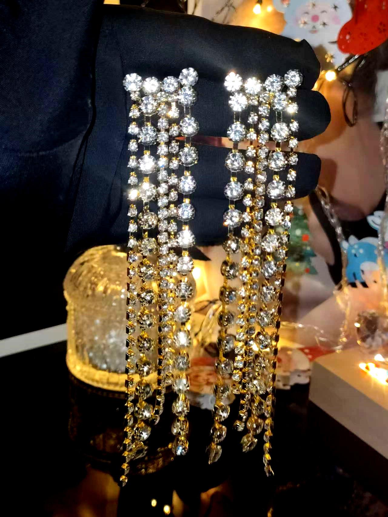 Aretes Populares de Pedrería, Aretes Europeos y Americanos Exagerados de Borlas Largas, Aretes Elegantes y Versátiles