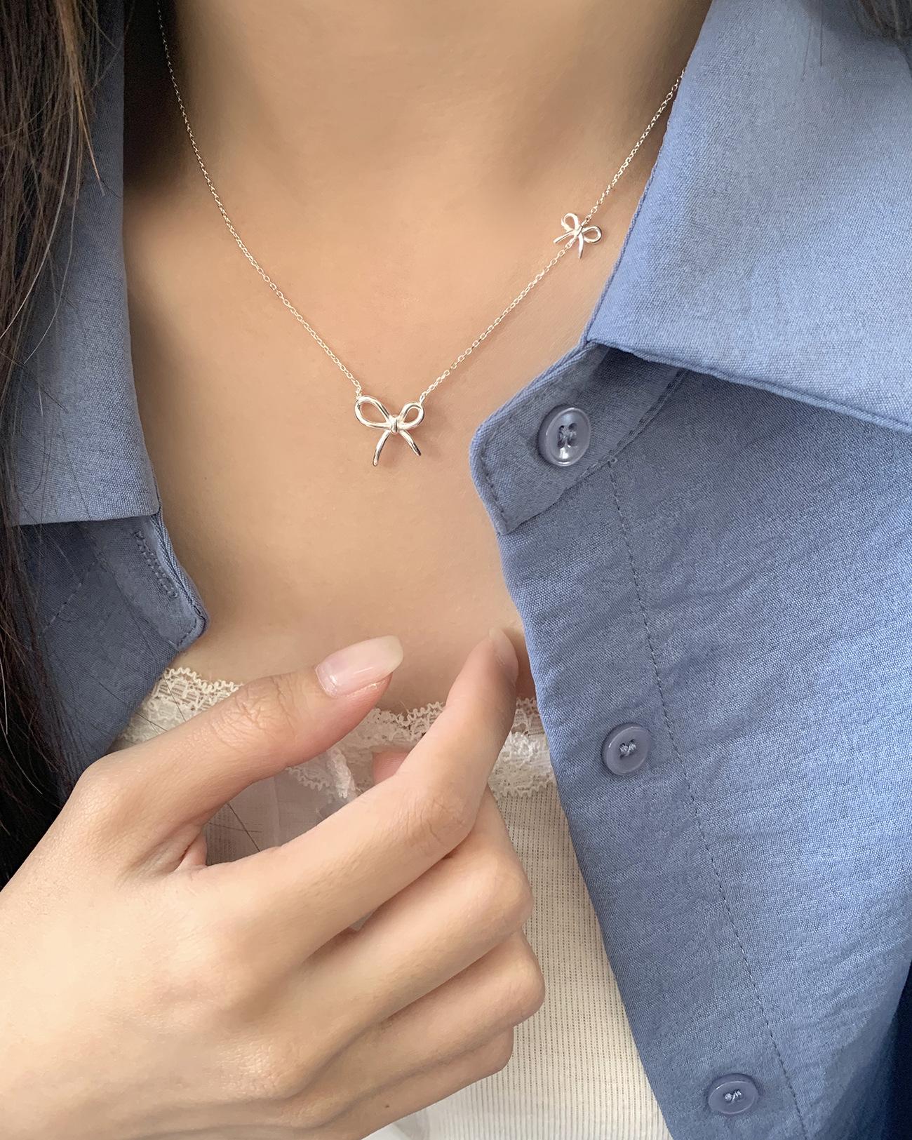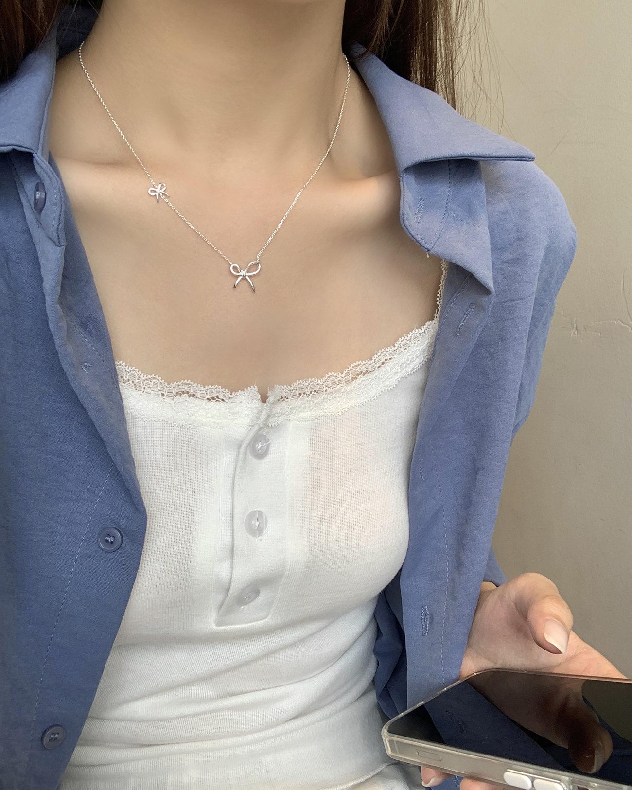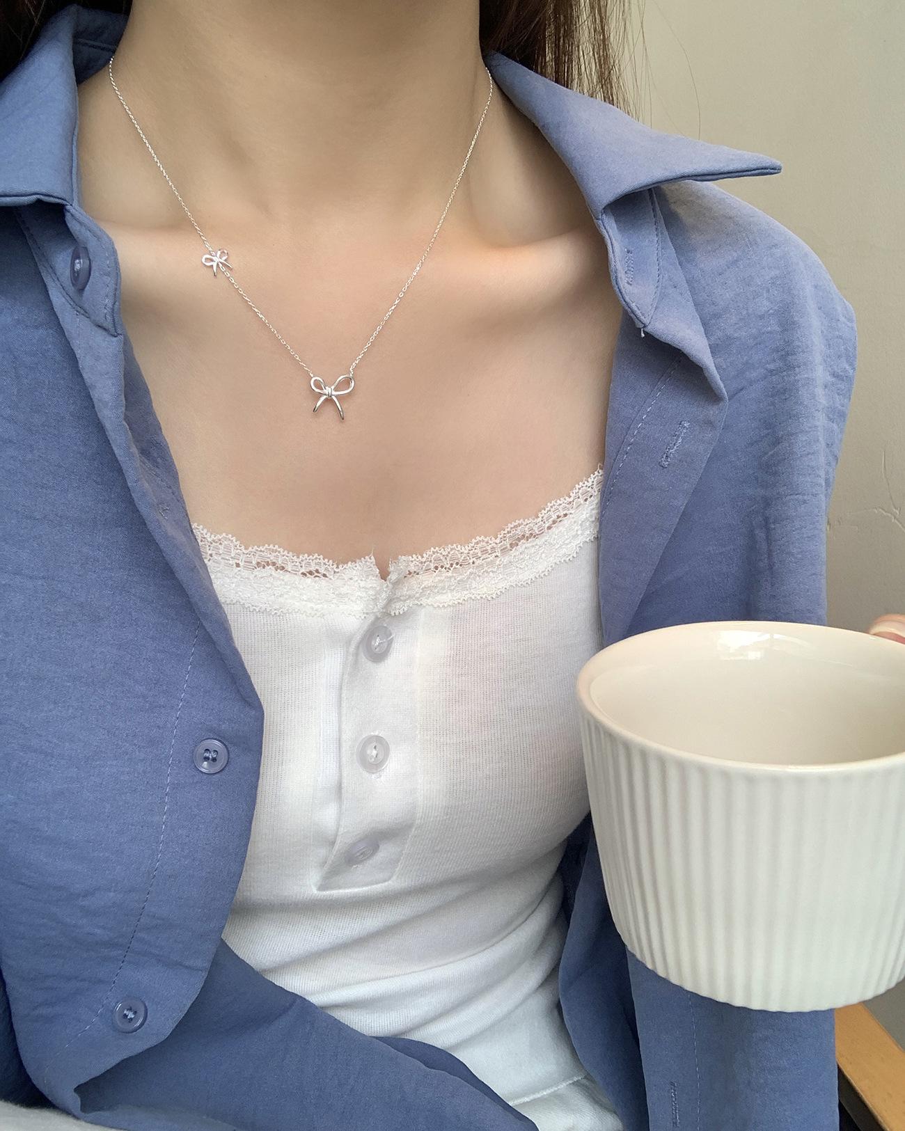 Collar de lazo estilo Ins de plata esterlina S925 para mujer, estilo coreano, sencillo, versátil, dulce, diseño de moda, cadena de clavícula, venta al por mayor