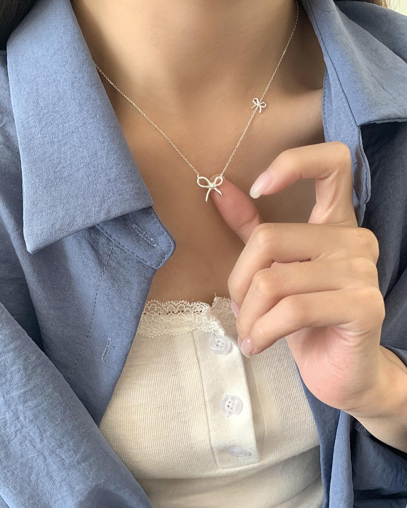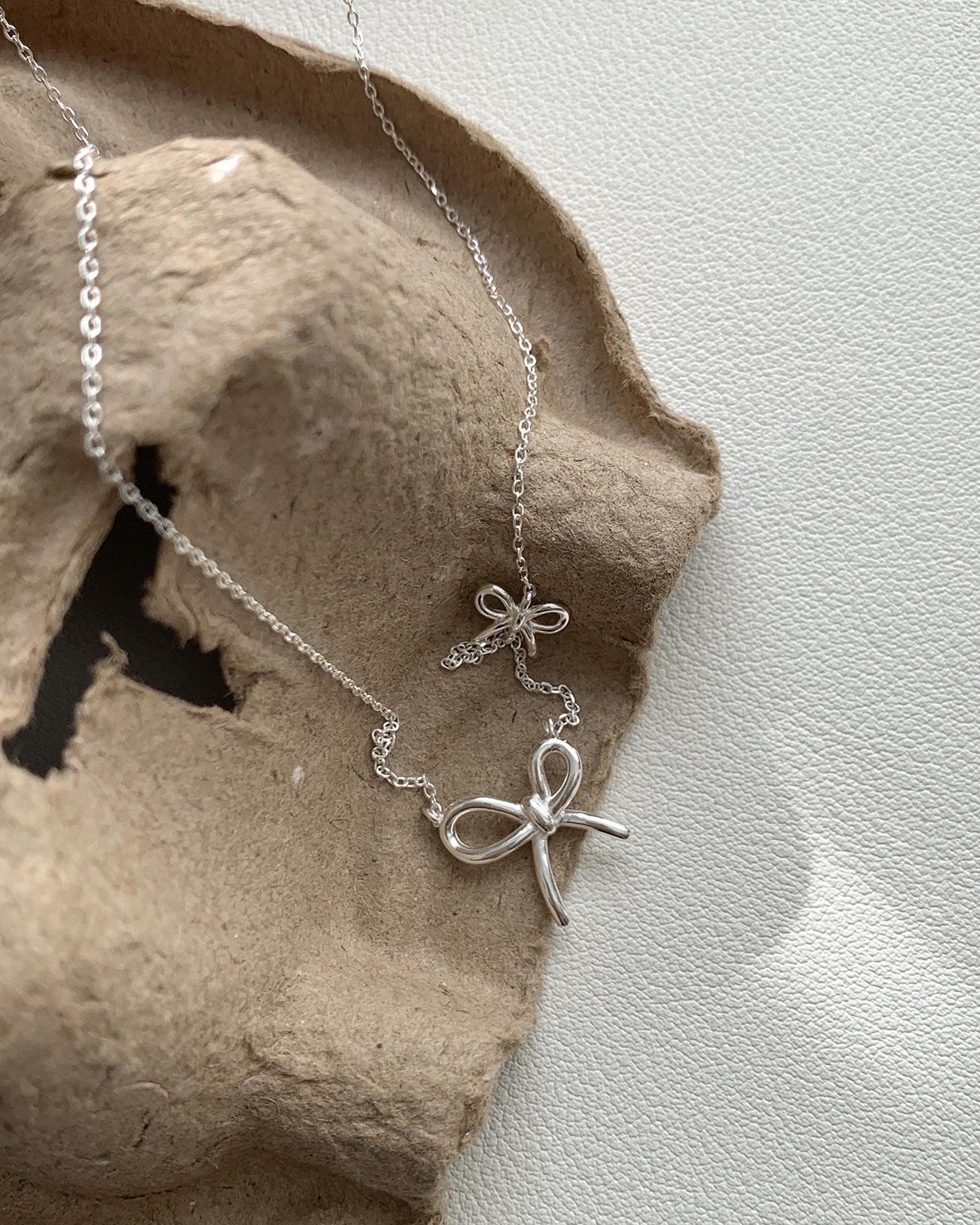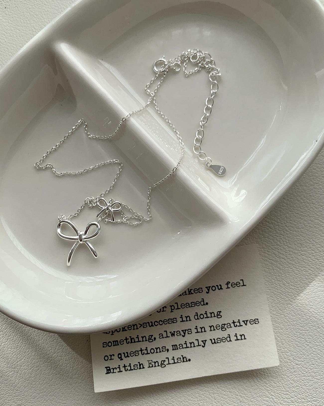 Collar de lazo estilo Ins de plata esterlina S925 para mujer, estilo coreano, sencillo, versátil, dulce, diseño de moda, cadena de clavícula, venta al por mayor