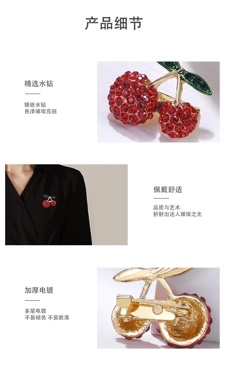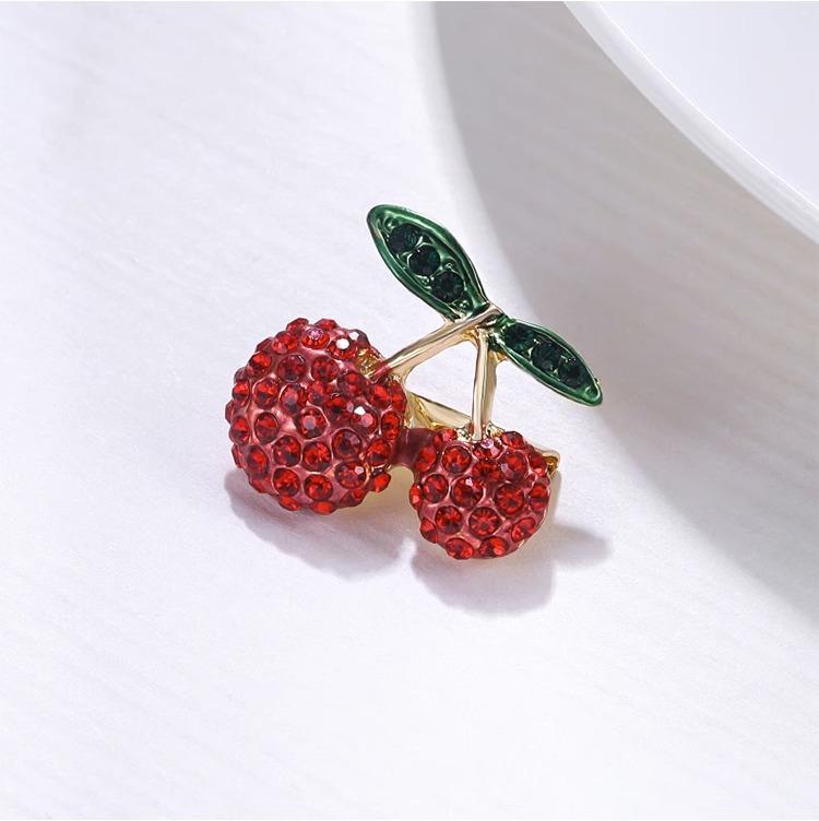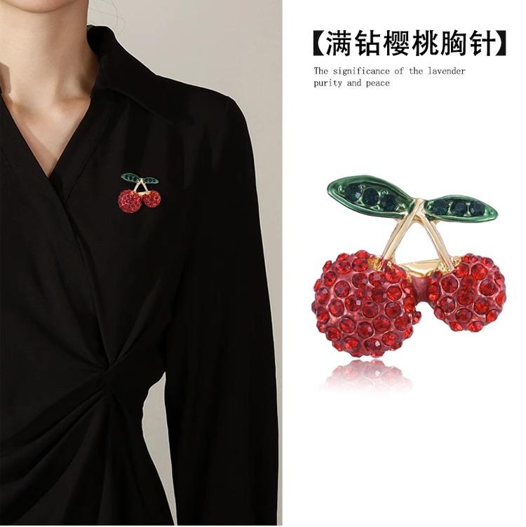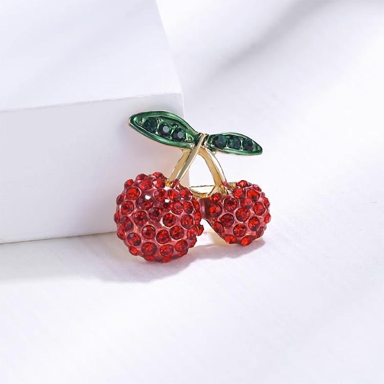 Broche de cereza compacto con diamantes de moda japonesa y coreana, diseño de nicho para mujer, con luz antideslizamiento, accesorio fijo.