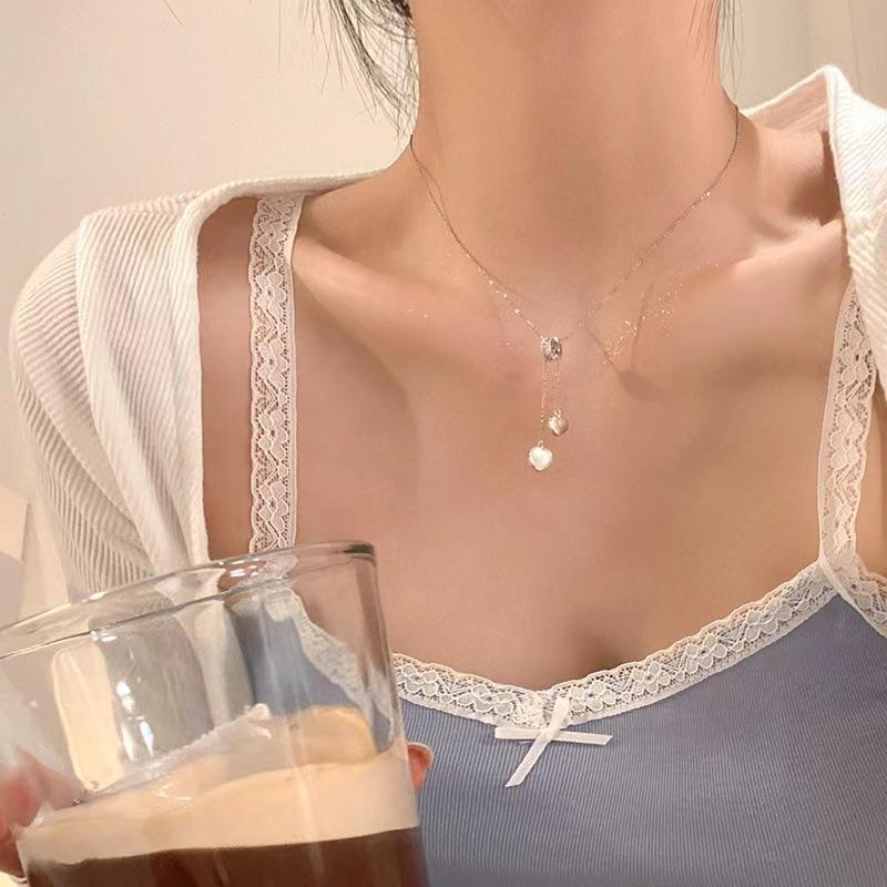 Collar de concha con forma de corazón para niña, cadena de clavícula con borlas, diseño de nicho ligero y lujoso, fácil de combinar, collar de acero de titanio a la moda.