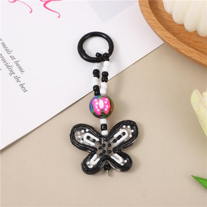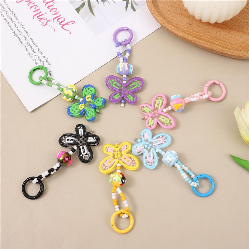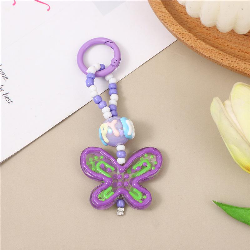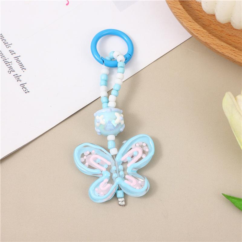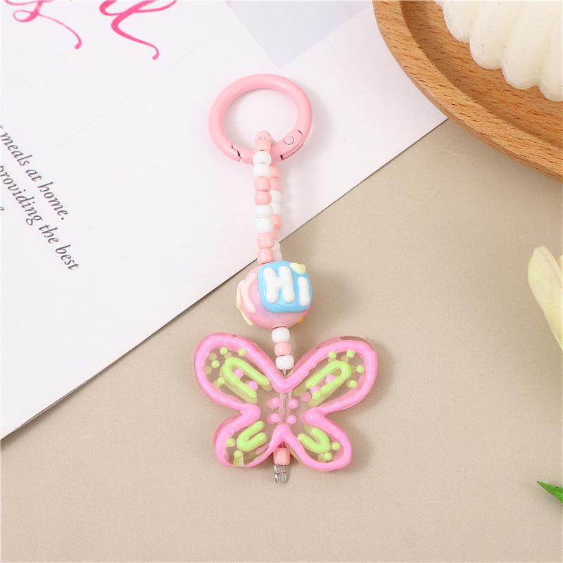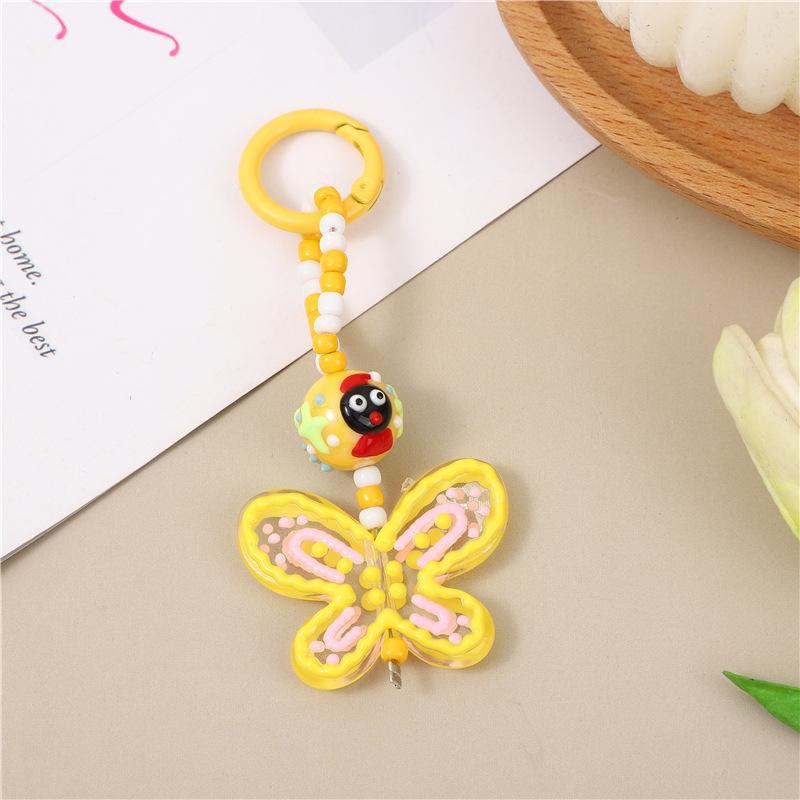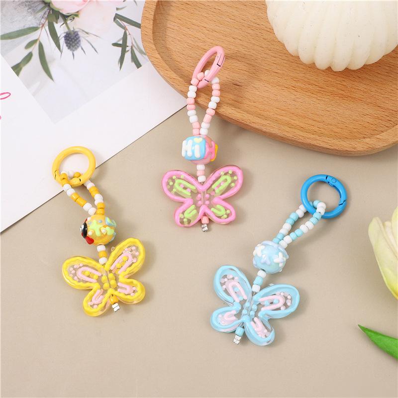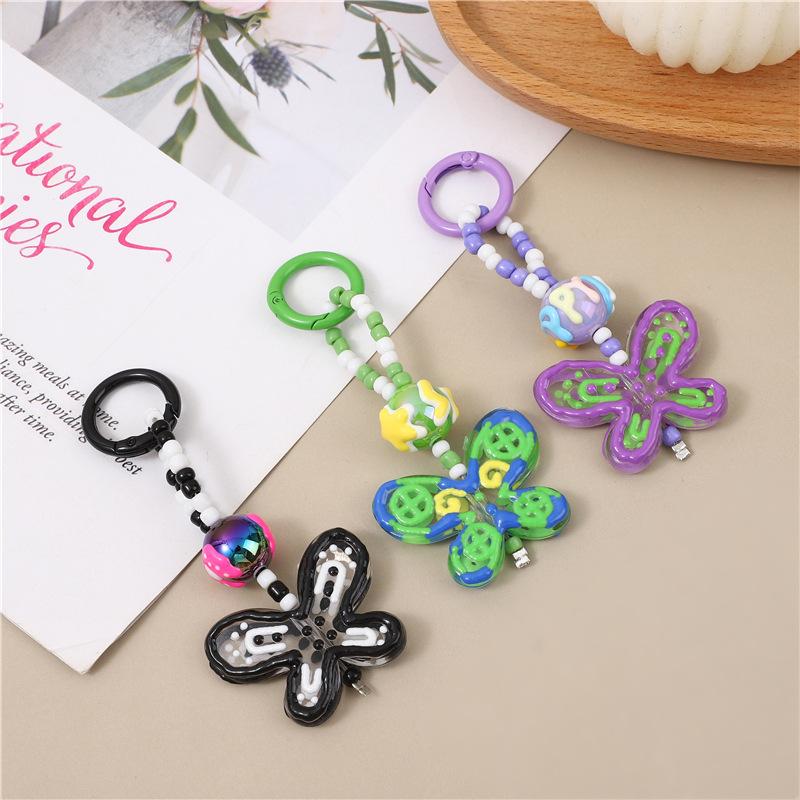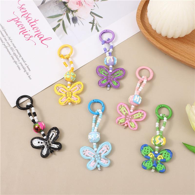 Nuevo llavero con colgante de mariposa de acrílico pintado a mano, accesorio creativo con cuentas, colgante para bolso de hombre y mujer.